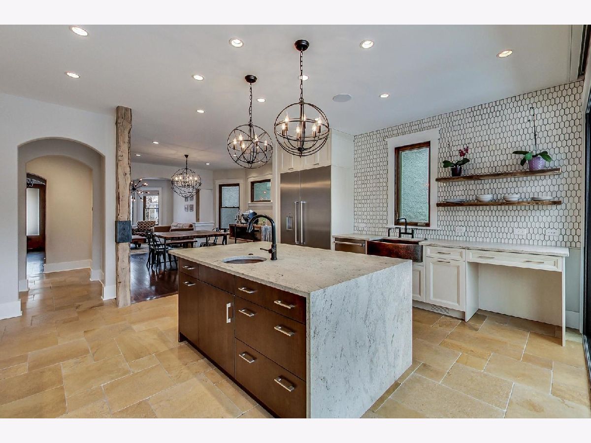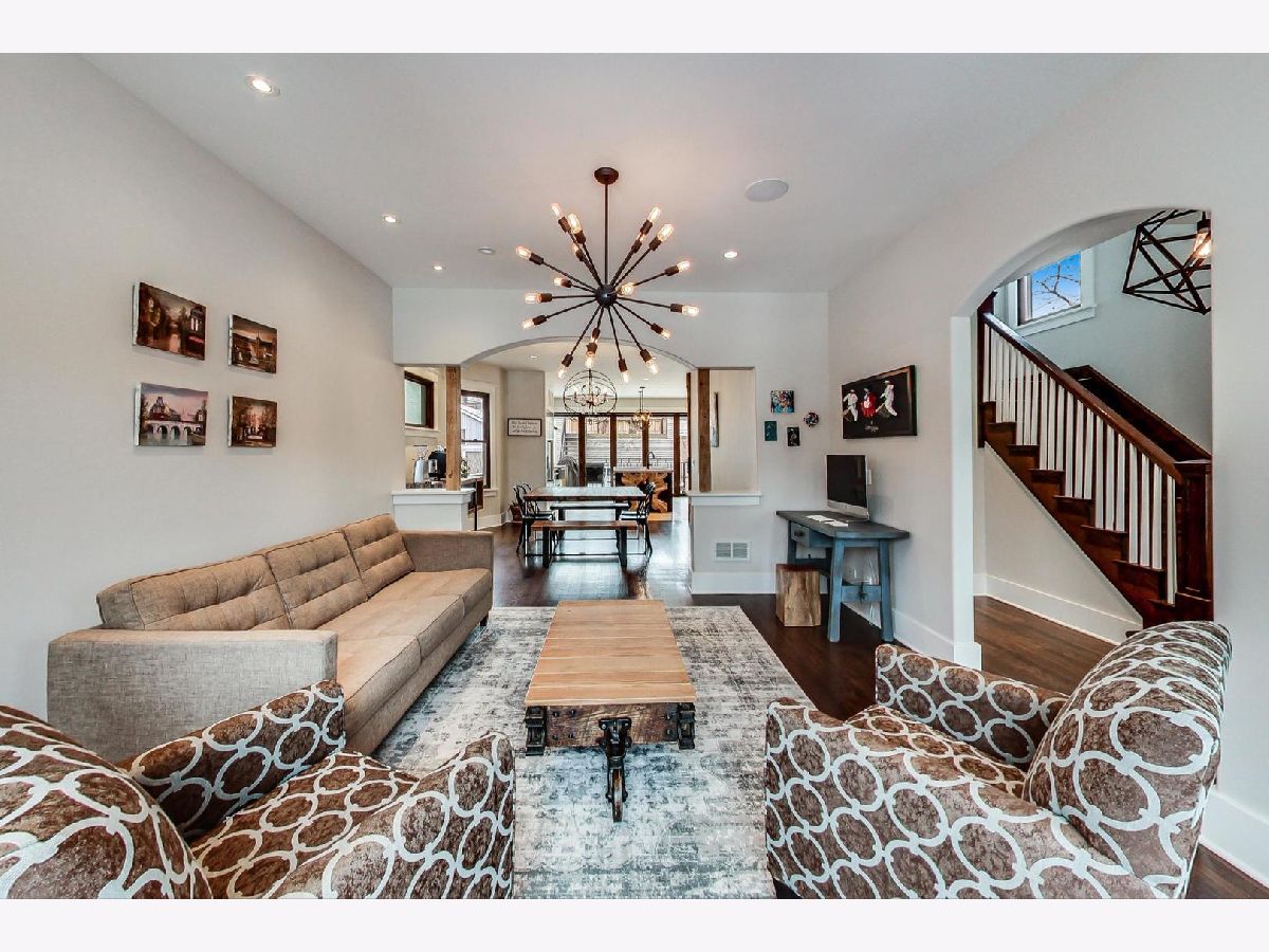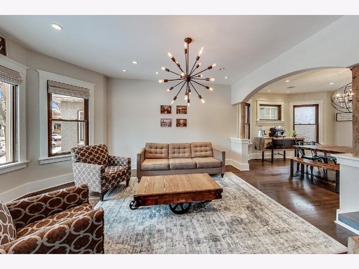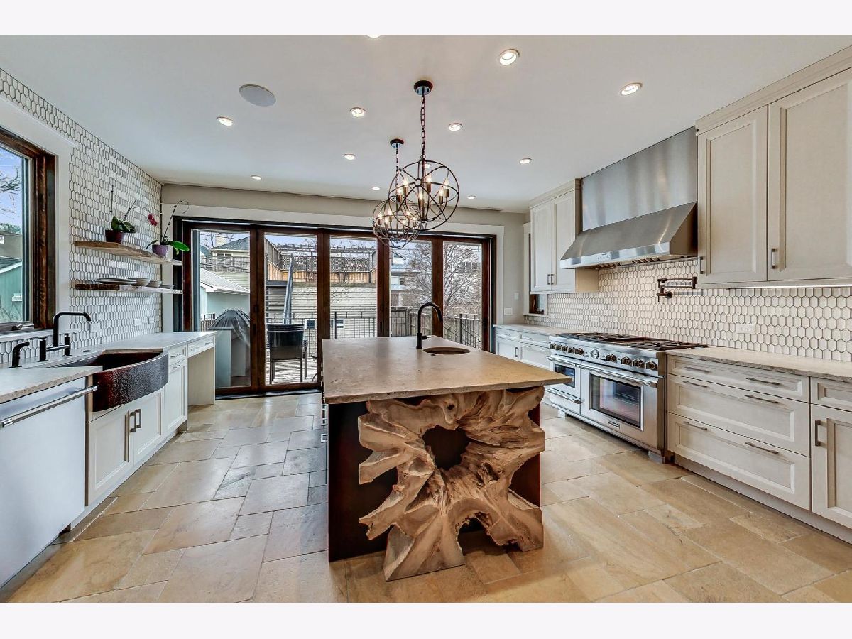 This captivating, gut renovated, American Four Square 3 bed/2.1 bath home with 2-car GARAGE & ROOF DECK is situated on a wide 30'x125' lot, marries quality craftsmanship, vintage details, & modern luxury with addition in 2016, & is blissfully located in the Ravenswood School District. The covered front porch offers ample seating for outdoor neighborly chats. Enter the foyer with a craftsman style stained glass window that flows into the sizeable living room with a BAY WINDOW overlooking the street. Another timeless archway opens into the impeccable dining room with another light-filled bay window, perfect for entertaining. No detail was spared in the extra-large kitchen with one-of-a-kind finishes: a steam convection oven built-in to the stainless-steel double oven range, a custom copper apron sink, garbage disposals at both sinks, custom designed cabinetry and an artful wood feature at one end of the waterfall kitchen island featuring custom textured granite, along with one of a kind shelving, a reclaimed wood beam, imported custom stone flooring and a walk-in pantry. From the kitchen, a wall-to-wall 5-panel bi-fold glass door system with custom built-in Mecho shades connects the indoors with the outdoors, offering an expansive space - perfect for entertaining on the 17' x 8' surround-sound wired deck flowing into the yard. A powder room with mesmerizing floor-to-ceiling tile rounds out the main level. On the second floor three bedrooms feature spacious walk-in closets and a separate bathroom with double sink and tub/shower combination. The generous attic features reclaimed wood beams, a dormer window, with the opportunity to build a master retreat. A fully finished natural light-filled lower level provides office space, recreation room space with a bay window, a separate sitting room, and a pristine bathroom with walk-in shower to make it the perfect guest retreat. The laundry closet with frontloading Whirlpool washer dryer and additional storage room completes this level. The spacious yard boasts mature landscaping, including ivy, with a deck off the kitchen and a catwalk that connects to the garage roof deck. Additional features include all new electrical, plumbing, and mechanicals. Great location. Situated in Graceland West, the sleepy street has easy access to shopping, local breweries and distilleries, and the famed Graceland Cemetery. Close proximity to Warner Garden Park with its natural & green space, mature trees, landscaping and peaceful sitting benches. Proximity to highway 90 / 94 Kennedy Expressway, Montrose Brown and Sheridan Red Line EL trains, & CTA buses. Enjoy neighborhood favorites: Tango Sur, Spacca Napoli, The Long Room, Glenn's Diner, Urban Vegan, Roost Chicken & Biscuits, Bienmesabe, First Slice, & coffee at Dollop. Exceptionally low taxes, a must See.