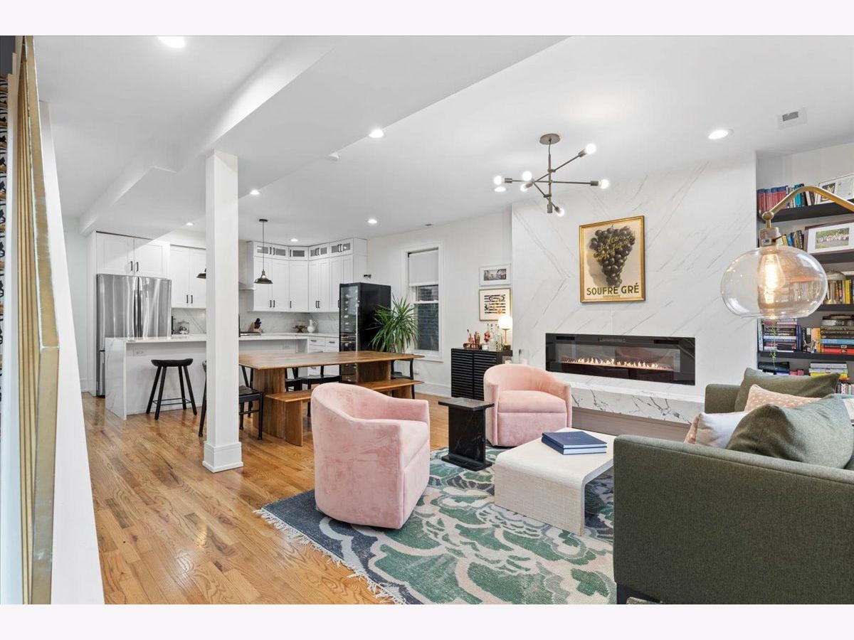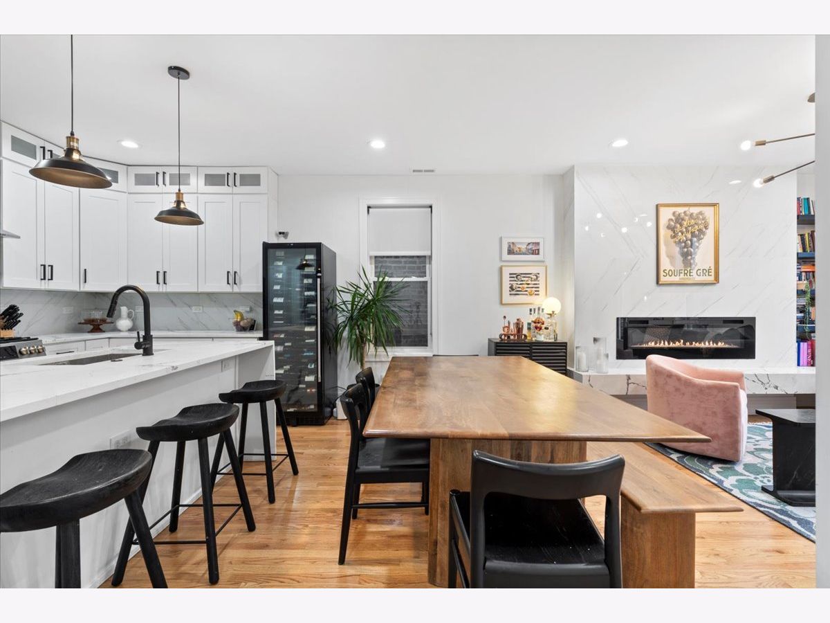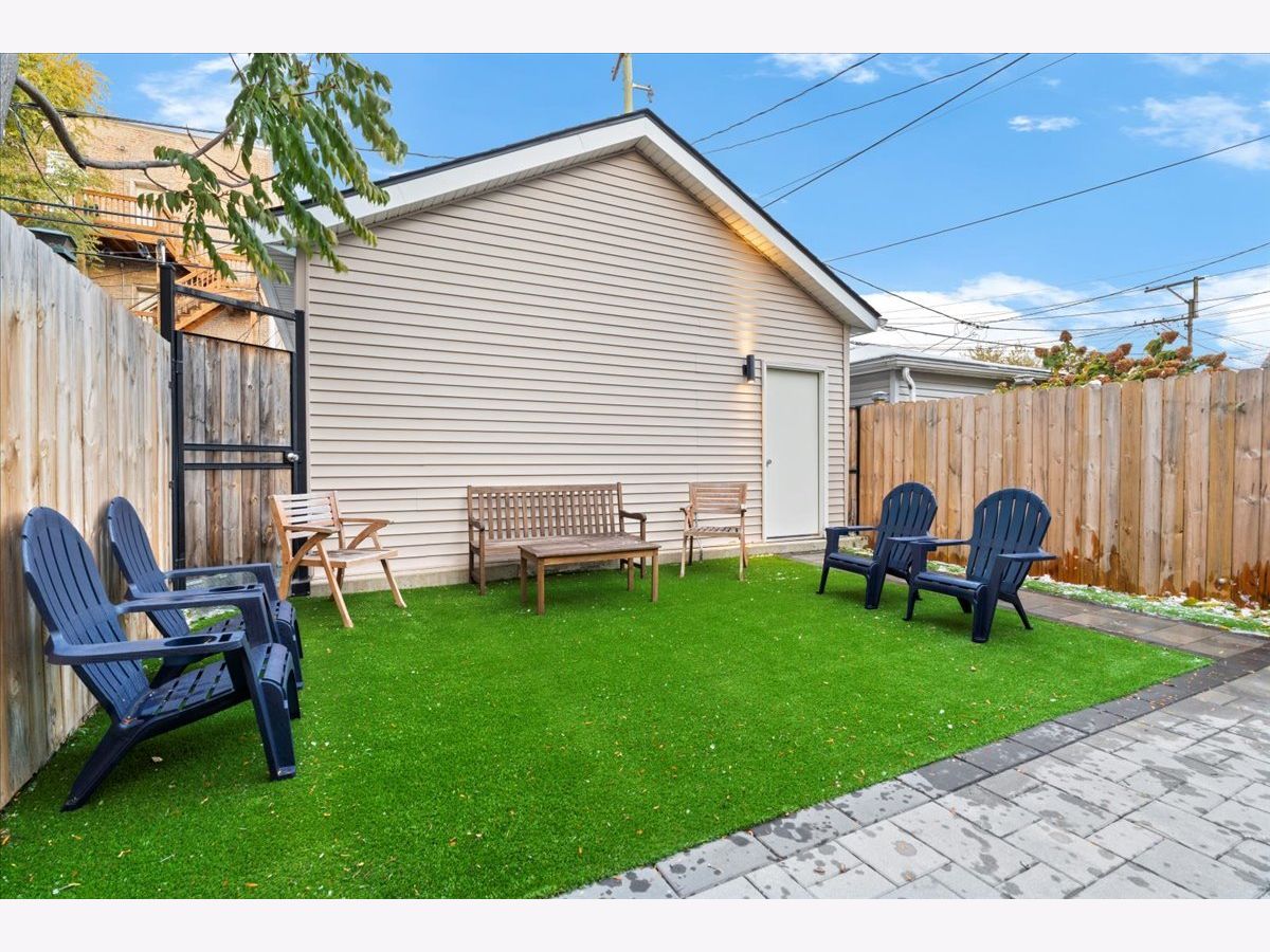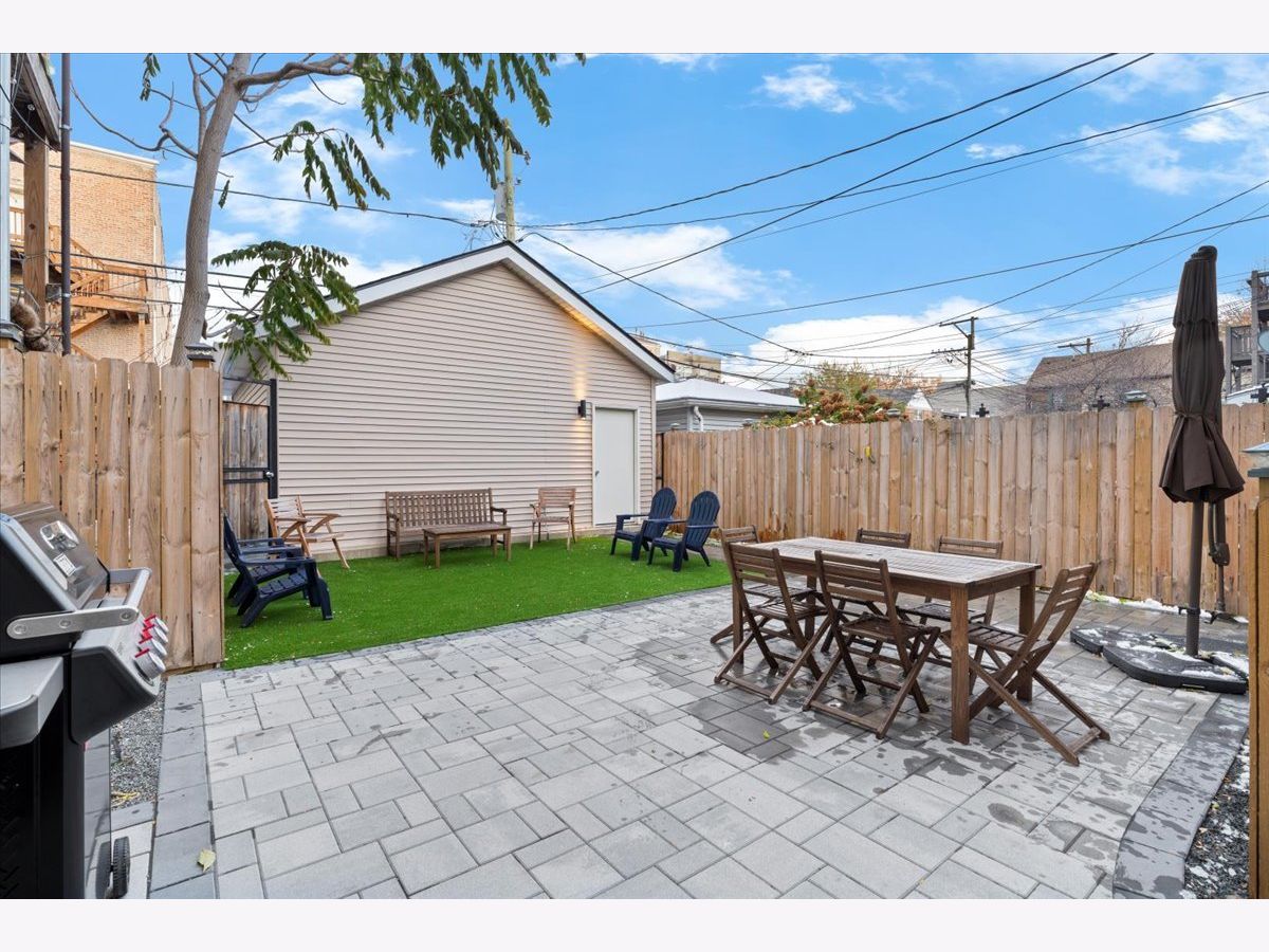Beautiful West Town 4 Bedroom 3 Bath home rehabbed in 2022 with a detached 2 Car Garage, landscaped rear yard with a spacious paved patio ideal for entertaining and grilling. The home features an Open floor plan ideal for in-law living or home office with the 4th bedroom on the main floor. 3 Bedrooms, 2 Bathrooms on the upper level with a Full Bath on the main level. Beautiful white kitchen with an abundance of cabinets, stainless steel appliances, vented range hood and an oversized island with a waterfall edge. Spacious living and dining room with a cozy designer fireplace and bookshelves. The Primary Bedroom has an office nook and beautifully updated bathroom featuring an oversized shower with dual rain shower heads, double sink and standalone Tub. Bedrooms 2 and 3 have a Jack and Jill Bathroom. The second level also has side by side laundry. The home features two separate furnaces and a/c condensers. All mechanicals in home are from the 2022 rehab. Generous backyard and an oversized 2 car garage with additional storage. Additional storage in the rear lower level mechanical room. Approx 2 block walk to either Division St or North Avenue with easy access to neighborhood bars and restaurants.