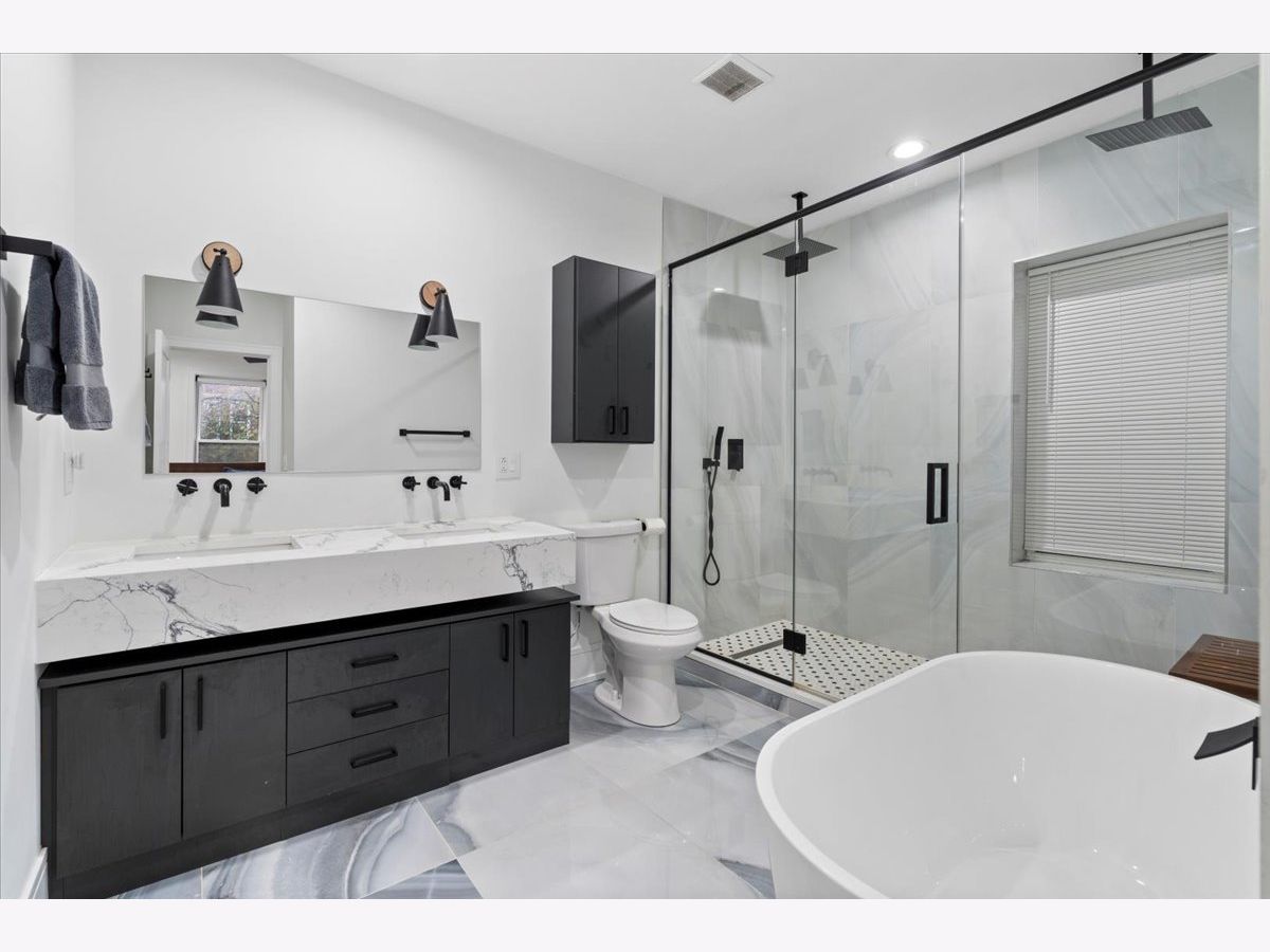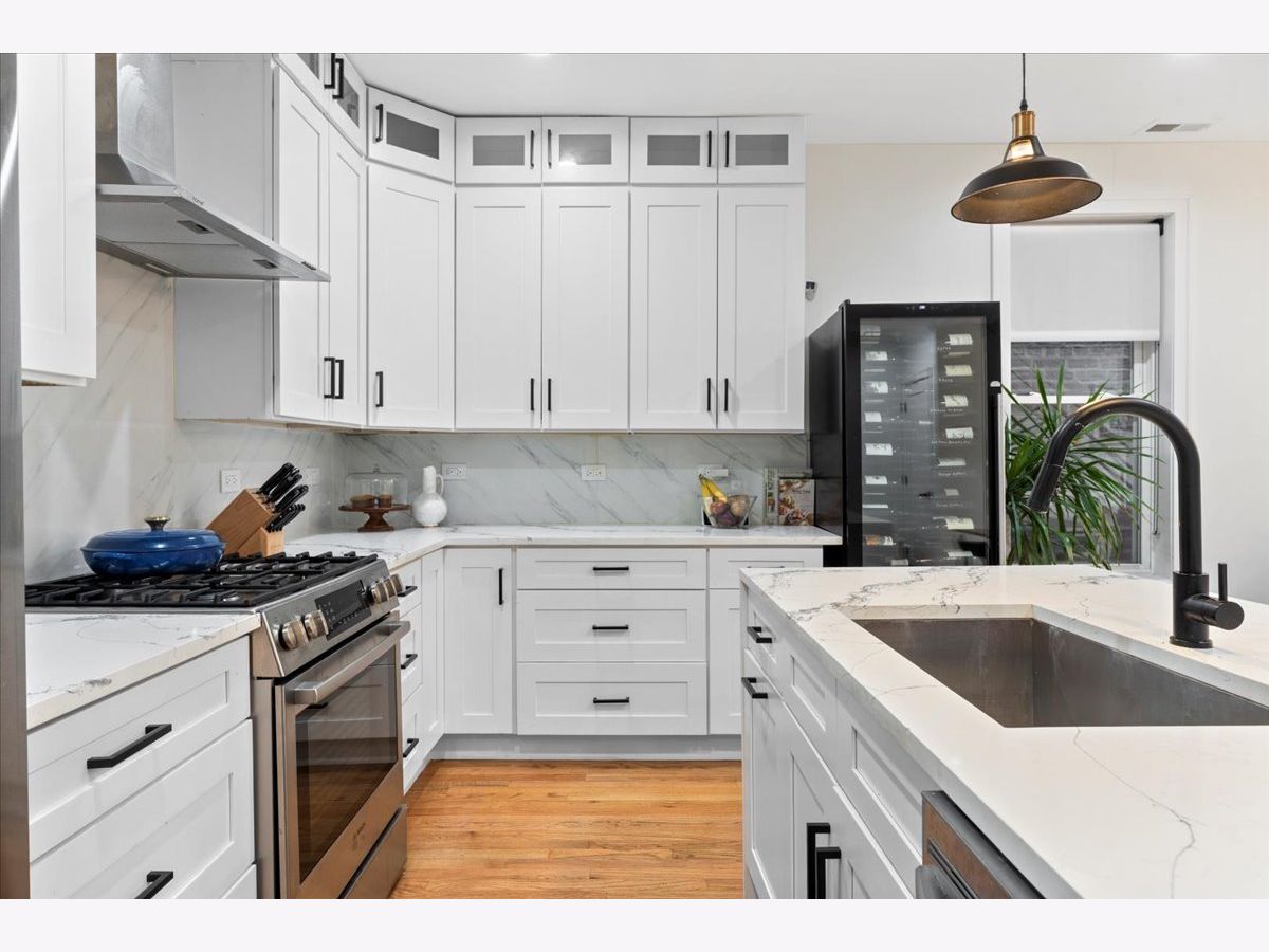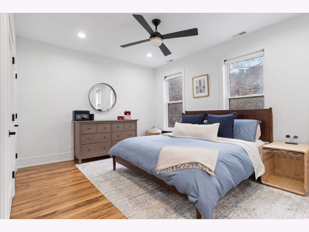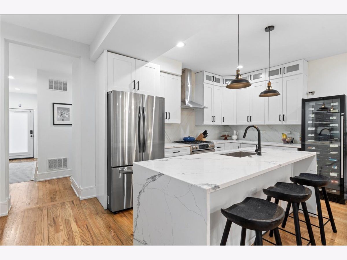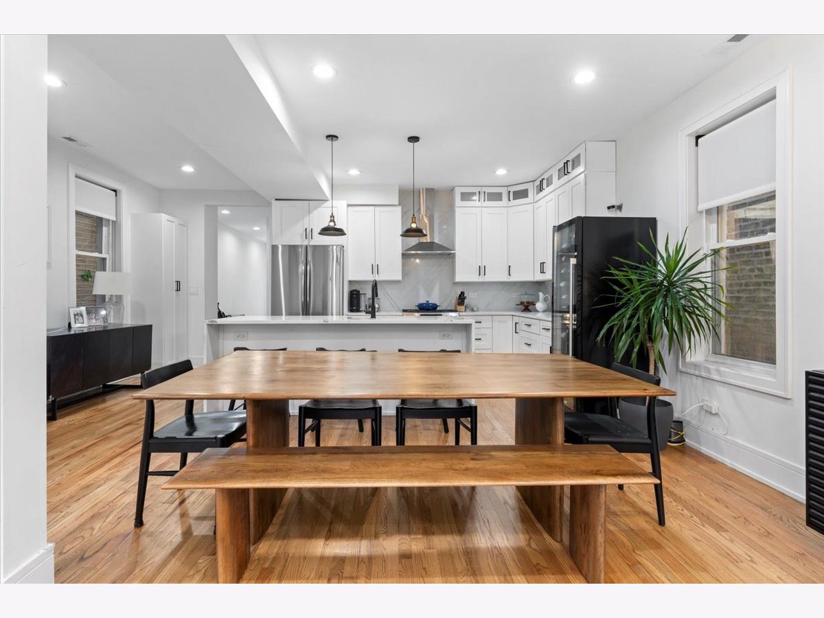 Beautiful West Town 4 Bedroom 3 Bath home rehabbed in 2022 with a detached 2 Car Garage, landscaped rear yard with a spacious paved patio ideal for entertaining and grilling. The home features an Open floor plan ideal for in-law living or home office with the 4th bedroom on the main floor. 3 Bedrooms, 2 Bathrooms on the upper level with a Full Bath on the main level. Beautiful white kitchen with an abundance of cabinets, stainless steel appliances, vented range hood and an oversized island with a waterfall edge. Spacious living and dining room with a cozy designer fireplace and bookshelves. The Primary Bedroom has an office nook and beautifully updated bathroom featuring an oversized shower with dual rain shower heads, double sink and standalone Tub. Bedrooms 2 and 3 have a Jack and Jill Bathroom. The second level also has side by side laundry. The home features two separate furnaces and a/c condensers. All mechanicals in home are from the 2022 rehab. Generous backyard and an oversized 2 car garage with additional storage. Additional storage in the rear lower level mechanical room. Approx 2 block walk to either Division St or North Avenue with easy access to neighborhood bars and restaurants.