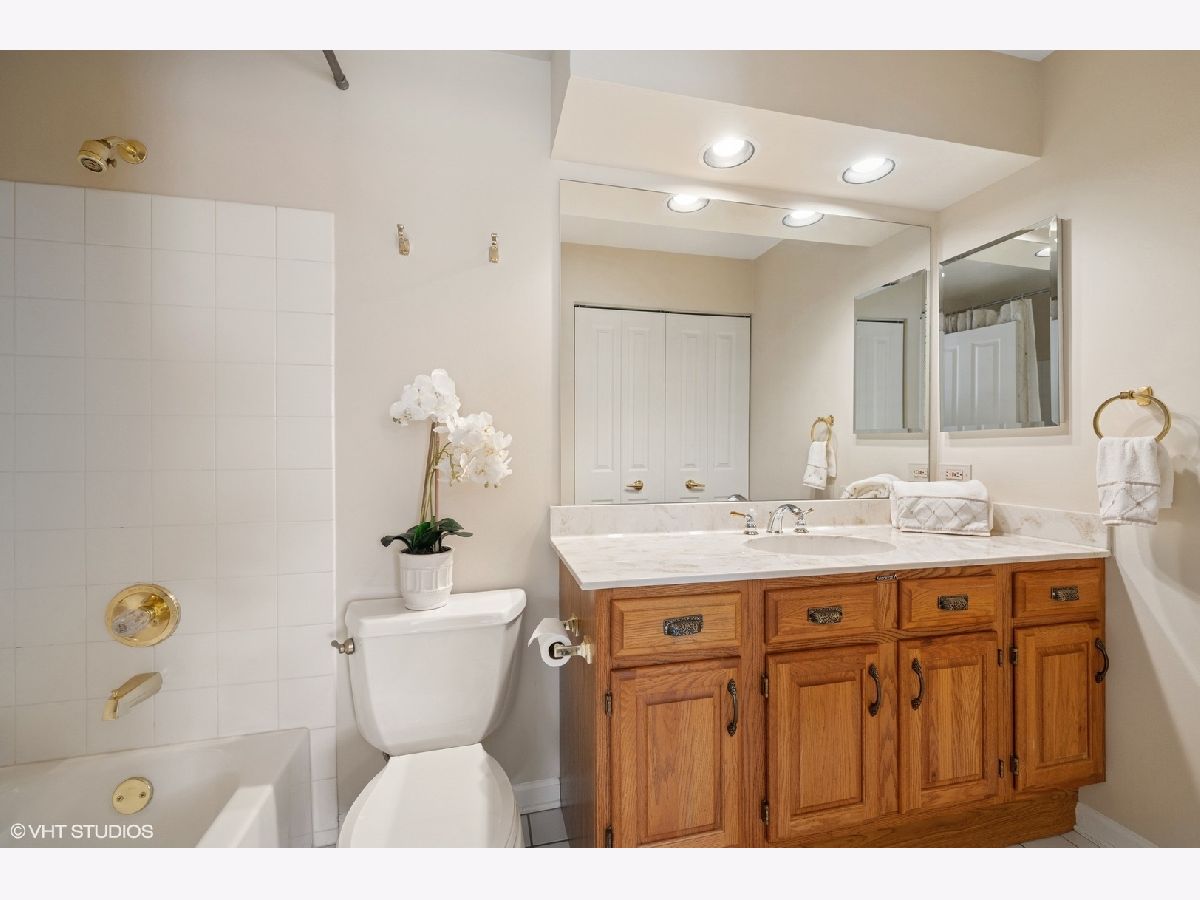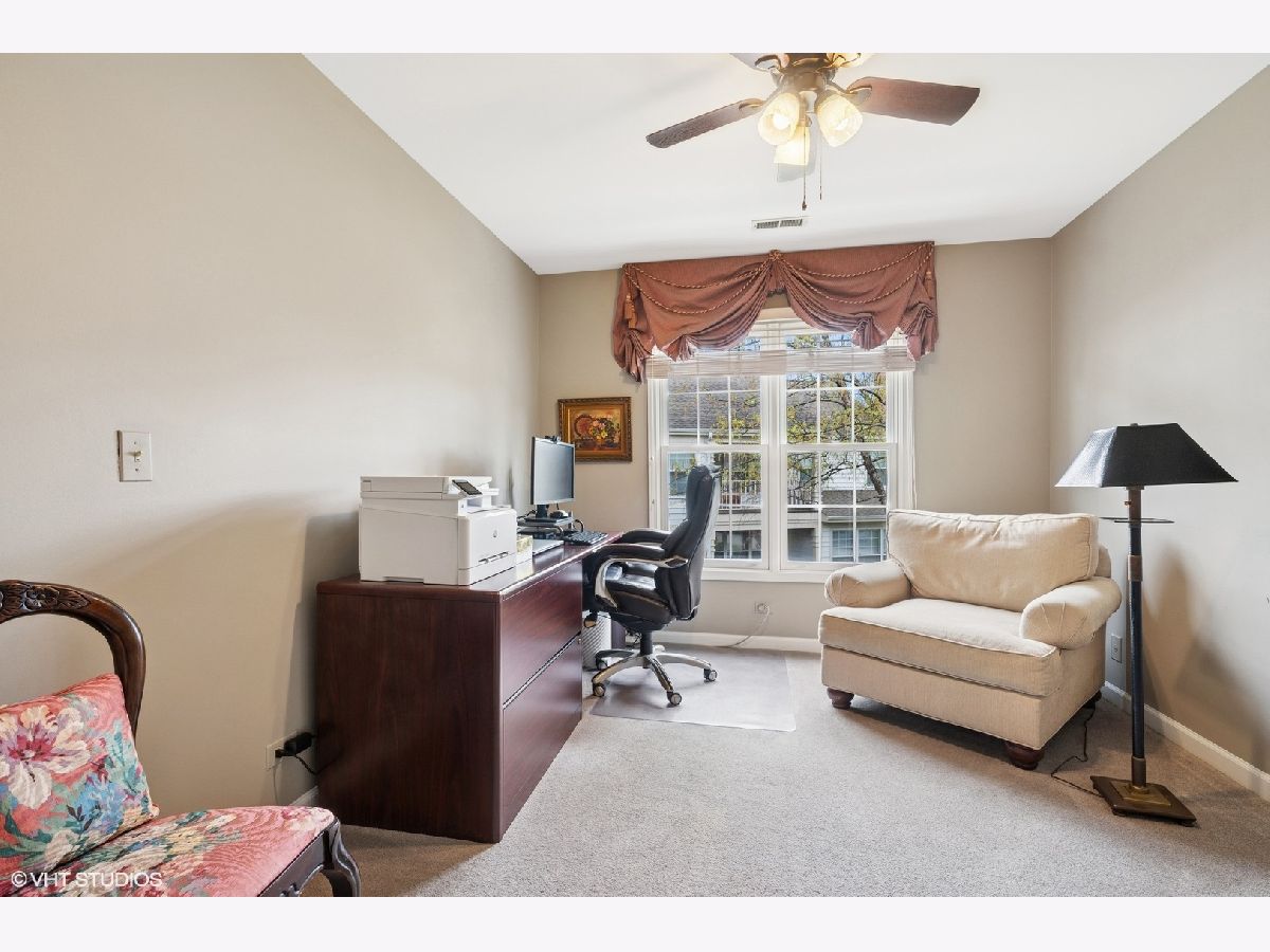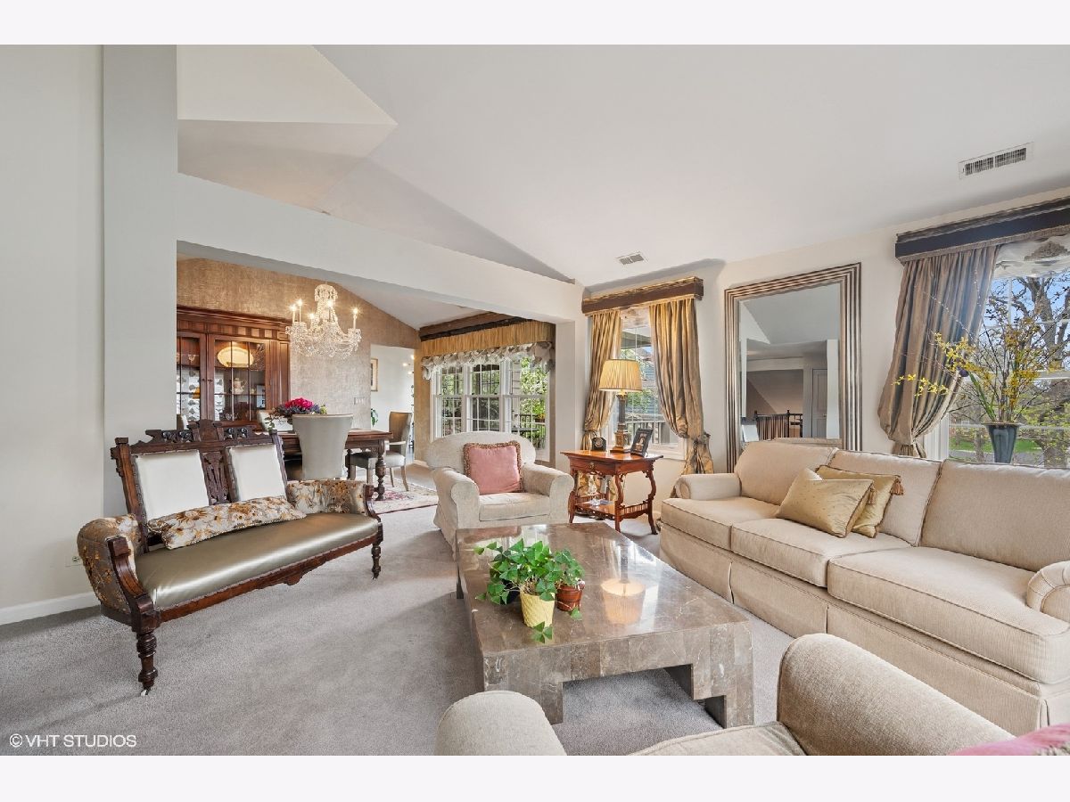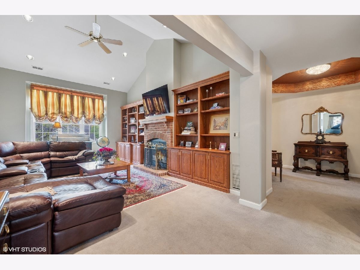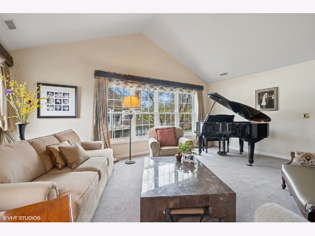 Welcome to Princeton Village in Glenview-a gated community offering both comfort and convenience. This beautifully maintained 2 Bed + Den | 2.1 Bath ranch-style 2nd level townhome lives like a single-family home, with a spacious open-concept layout, soaring cathedral ceilings, and abundant natural light. The elegant living and dining rooms create an ideal setting for effortless entertaining, while the updated kitchen features ample cabinetry, high-end Bosch appliances including a warming drawer, a separate eating area, and a sliding glass door that opens to a private outdoor oasis with picturesque views. The generous family room is anchored by a dramatic floor-to-ceiling stone gas-log fireplace and custom built-ins-perfect for cozy gatherings. A separate den or office provides flexible space for working from home or can easily be converted into a third bedroom. The luxurious primary suite offers a vaulted ceiling, walk-in closet, and a spa-like bath with double-sink vanity, soaking tub, and separate shower. A second en-suite bedroom ensures comfort and privacy for guests. Additional highlights include a side-by-side laundry room with utility sink and an attached two-car garage. Enjoy the exceptional lifestyle Princeton Village has to offer, complete with a clubhouse and outdoor pool.