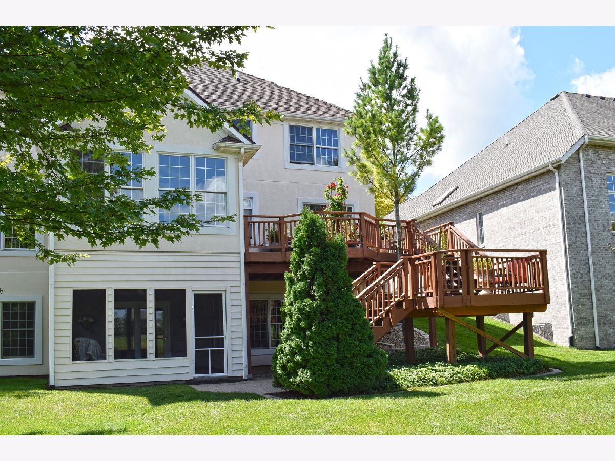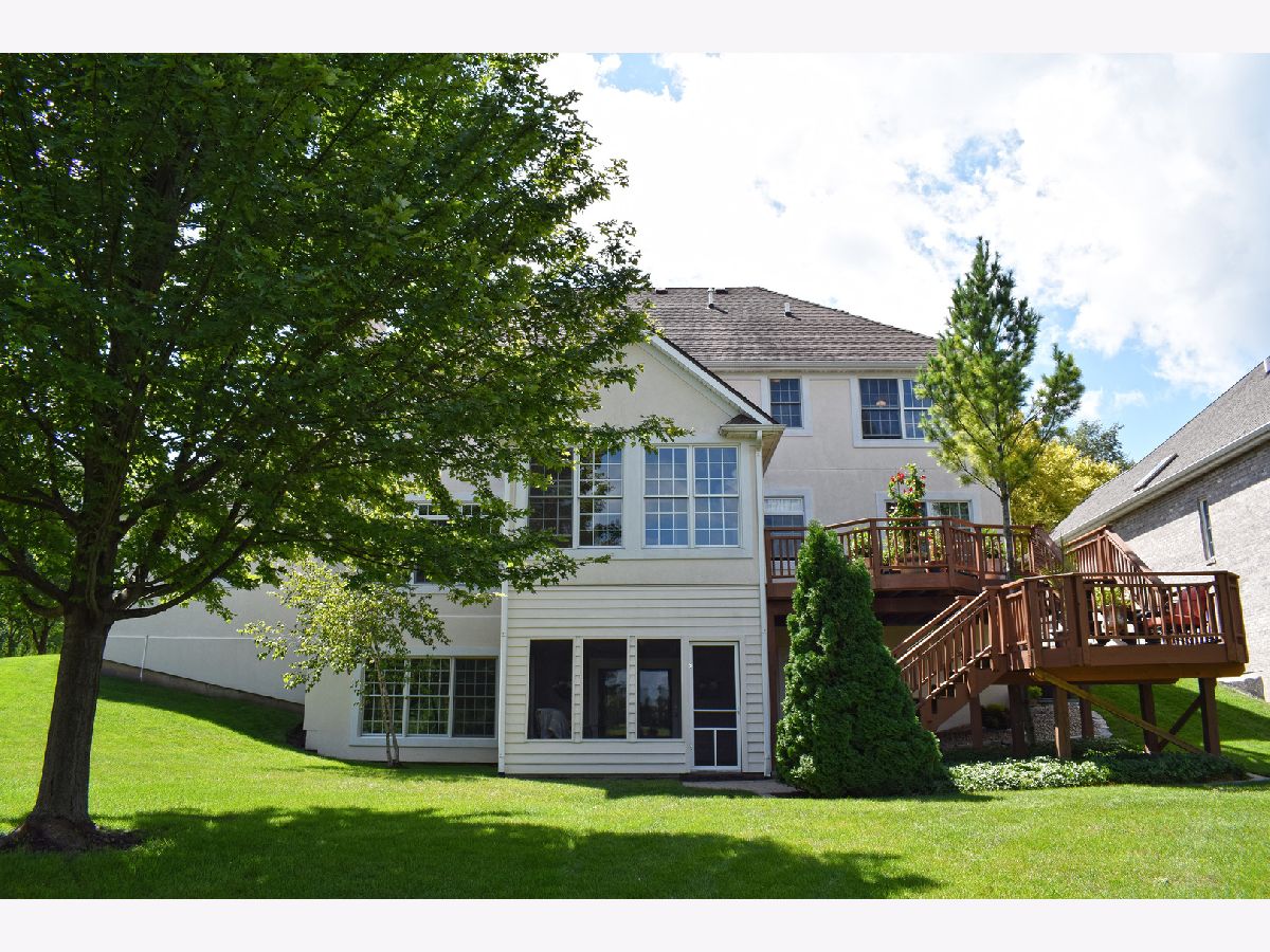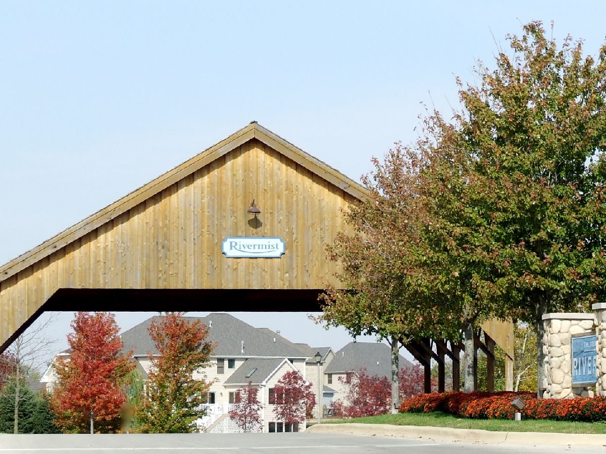 "EXCEPTIONAL VALUE" IN BRIDGES OF RIVERMIST WITH NEW IMPROVED PRICE OFFERING!! EXQUISITE SETTING. EXQUISITE HOME. Breathtaking panoramic pond & waterfall view from 2-tiered deck & screened-in porch... outdoor living at its finest! 2-story grand foyer window display & stunning white spindled staircase welcome you. Living & Dining Room showcase detailed white mill-work, crown molding & elegant chandelier. Family Room features transom windows & gas lit fireplace with quartz surround. Cherry wood floors & rich color schemes add ambiance to this lovely home. Sunroom with vaulted ceiling! Kitchen boasts tiered cherry cabinets, granite tops, double oven, island/bar, pantry & desk w/ cubbies. Master Suite presents tray ceiling, reading nook, whirlpool tub w/ tile accents, shower, dual mounted sinks, granite vanity tops & 12'x11' custom Walk-in Closet w/ dresser island & custom organizers (formerly 4th bedroom)! Rec Room, Office, Screened Porch & 4th Bath complete deep walkout basement. Pella windows, stone accents & epoxied floor & cabinets in 3-car garage!
