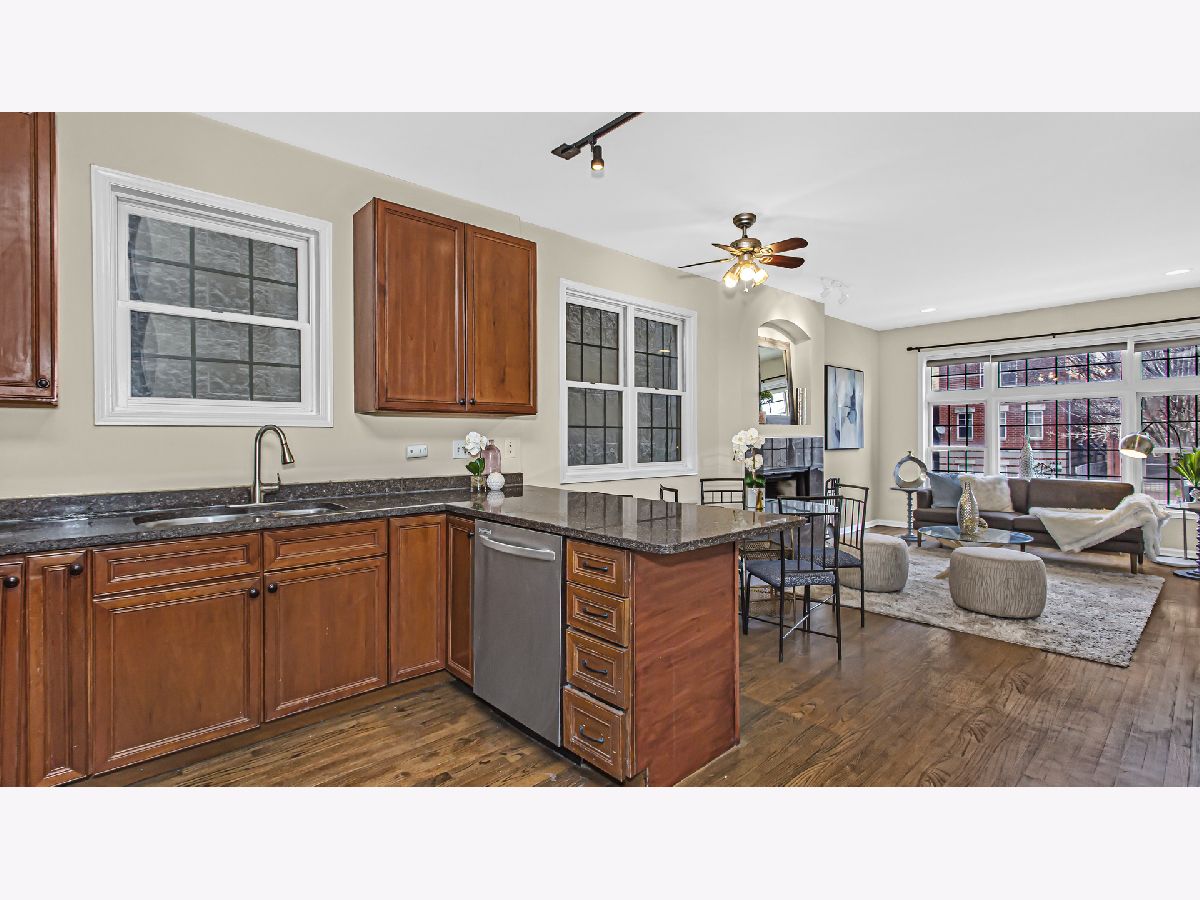 Welcome home to this huge 2,400 sq.ft duplex down 3 bedroom, 3 full bathroom in West Wicker Park. Freshly painted, this unit features two living spaces, wood burning fireplaces, recently replaced kitchen appliances and refinished wood floors on the main level. Open floor concept including granite kitchen, island & stainless steel appliances. In the back of the condo is two good size bedrooms and two full bathrooms. Master suite with plantation closet shutter and private deck access. Master bathroom includes modern flooring, stand-up shower, jacuzzi tub & double sink. Downstairs in the lower level is a large 2nd living room perfect for entertaining. 10ft high ceilings, 2nd wood burning fireplace and walk out patio. A large 3rd bedroom rounds out the lower level. Washer and Dryer closet, tankless water heater and one garage parking spot. Short walking distance to 606 Trail, Damen blue line stop, restaurants and shops.