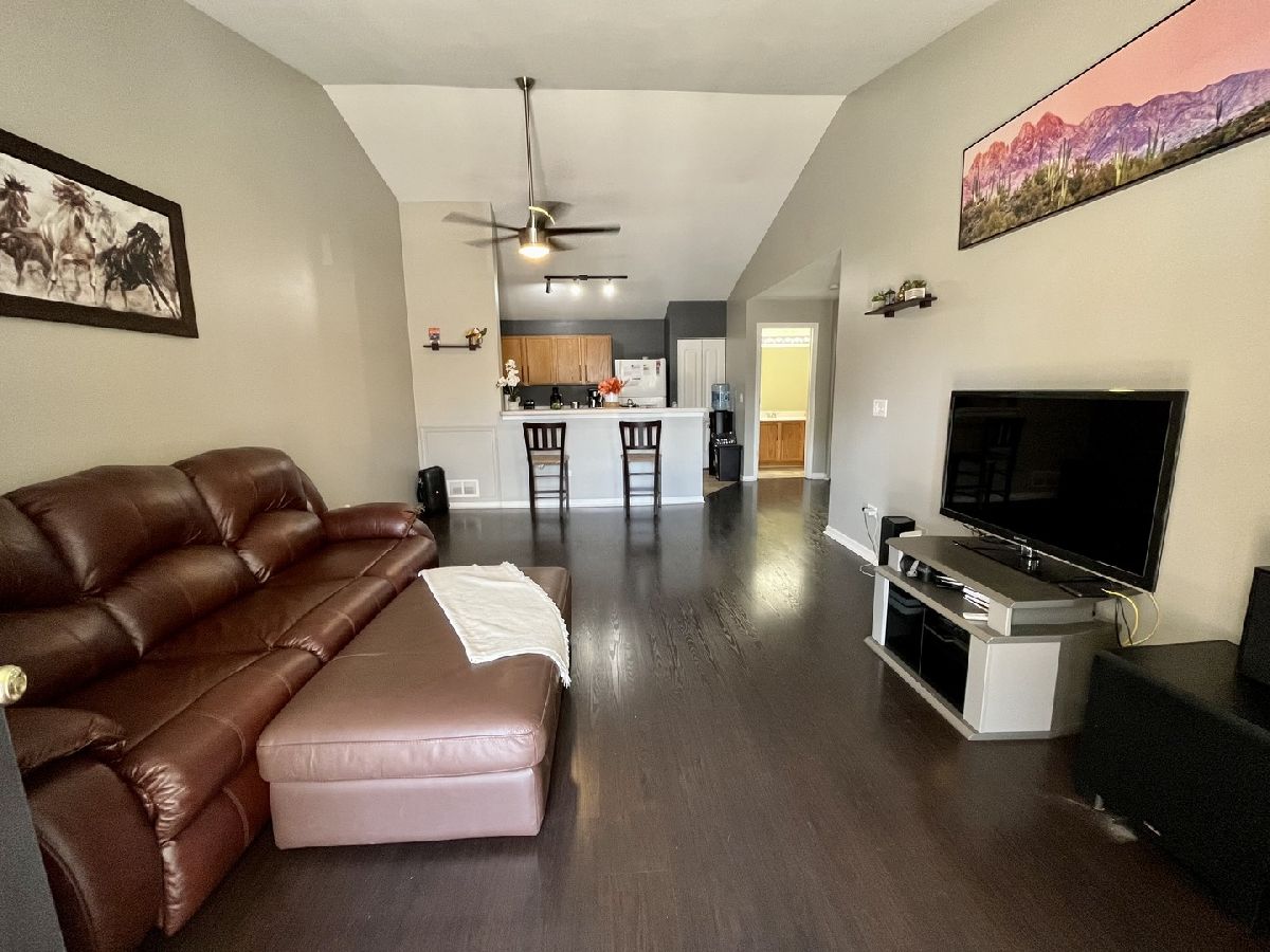 Introducing a charming one-bedroom, one-bath condo in the heart of Aurora, Illinois. This thoughtfully designed home offers modern features, an open floor plan, and a convenient location for those seeking both comfort and accessibility. Step inside to discover an inviting living space, seamlessly connected to an open-concept kitchen. The airy layout creates a sense of spaciousness, making it perfect for entertaining friends and family. The kitchen boasts sleek countertops, ample cabinetry, and a range of stainless steel appliances, making cooking a breeze. The bedroom provides a cozy retreat, complete with generous closet space and large windows that allow for an abundance of natural light. The bathroom is tastefully designed, featuring a well-appointed vanity and a relaxing bathtub. One of the highlights of this condo is the walk-out balcony, where you can enjoy your morning coffee or unwind after a long day, while taking in the picturesque views of the surrounding neighborhood. Convenience is key, as this condo includes an in-unit washer and dryer, eliminating the need for trips to the laundromat. Additionally, the property offers easy access to I-88, ensuring a hassle-free commute to nearby cities and attractions. Located in Aurora, you'll have access to a wealth of amenities including shopping centers, restaurants, parks, and recreational facilities. Whether you're looking for a serene place to call home or an investment property with rental potential, this condo offers endless possibilities. Don't miss out on the opportunity to make this Aurora gem your own. Contact us today to schedule a showing and experience the comfortable and convenient lifestyle this condo has to offer. (2022) Cabinet Hardware; (2021) Kitchen Faucet; (2020) Wood Vinyl Flooring, Foyer and Kitchen Light Fixtures, Ceiling Fans, New carpet. **Please note: Only pets up to 40lbs allowed and 2 pets maximum and one parking space is assigned to this unit***