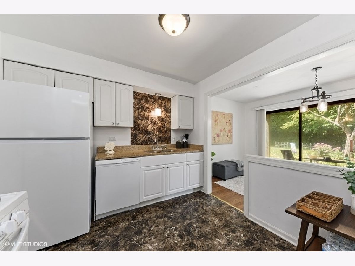 Rarely available, bright and updated first floor coach home in Orchard Vale II! This beautiful 2 bedroom, 1 bath home offers picturesque views and overlooks the 6th hole of the Old Orchard Country Club. Enter into the large and sunny living room, perfect for gatherings! The updated kitchen features new appliances (2021), new lighting, granite countertops, spacious pantry and is open to the dining room, also with new lighting and views of the beautifully landscaped yard. The primary bedroom includes a large walk-in closet! This home is move-in ready and so many big-ticket items have been taken care of for you: NEW AC (2020), water heater (2019), NEW electrical panel (2021), NEW LG washer and dryer (2021)NEW Feldco double patio doors (installation date 9/21), freshly painted, newer windows and updated full bathroom. All this, plus enjoy use of the swimming pool and fitness center! The perfect place to call home!