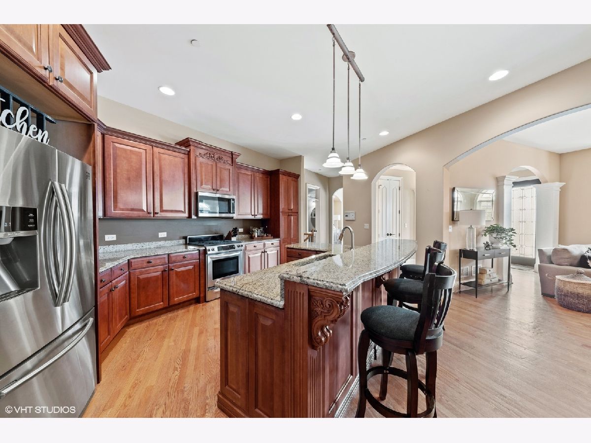Class and elegance abound in this stunning row home with nearly 5,000 square feet of space! With original owners, this luxury end unit features 10' ceilings, two fireplaces, hardwood floors, solid six panel doors & crown molding with architectural accents and attached two-car garage. Main floor highlights include: Gourmet kitchen with eating area, gleaming granite counters, stainless steel appliances and walk-in pantry. Spacious family room showcases a eye popping floor to ceiling brick fireplace. Large primary suite boasts a 2nd fireplace, walk-in closet, balcony and luxurious en-suite bath with separate tub and custom walk-in shower. Two additional good size bedrooms, Jack & Jill bathroom and large laundry room complete the 2nd level. Ample storage in the English basement offers plenty of natural light, high ceilings and roughed in plumbing and awaits your custom finishing design. Coveted location with award winning school districts and conveniently situated just steps away from Mariano's, Melas Park and downtown Arlington Heights popular shopping, restaurants and Metra train. Priced below market! Investor friendly! Note: Taxes do not reflect home owner exemption.