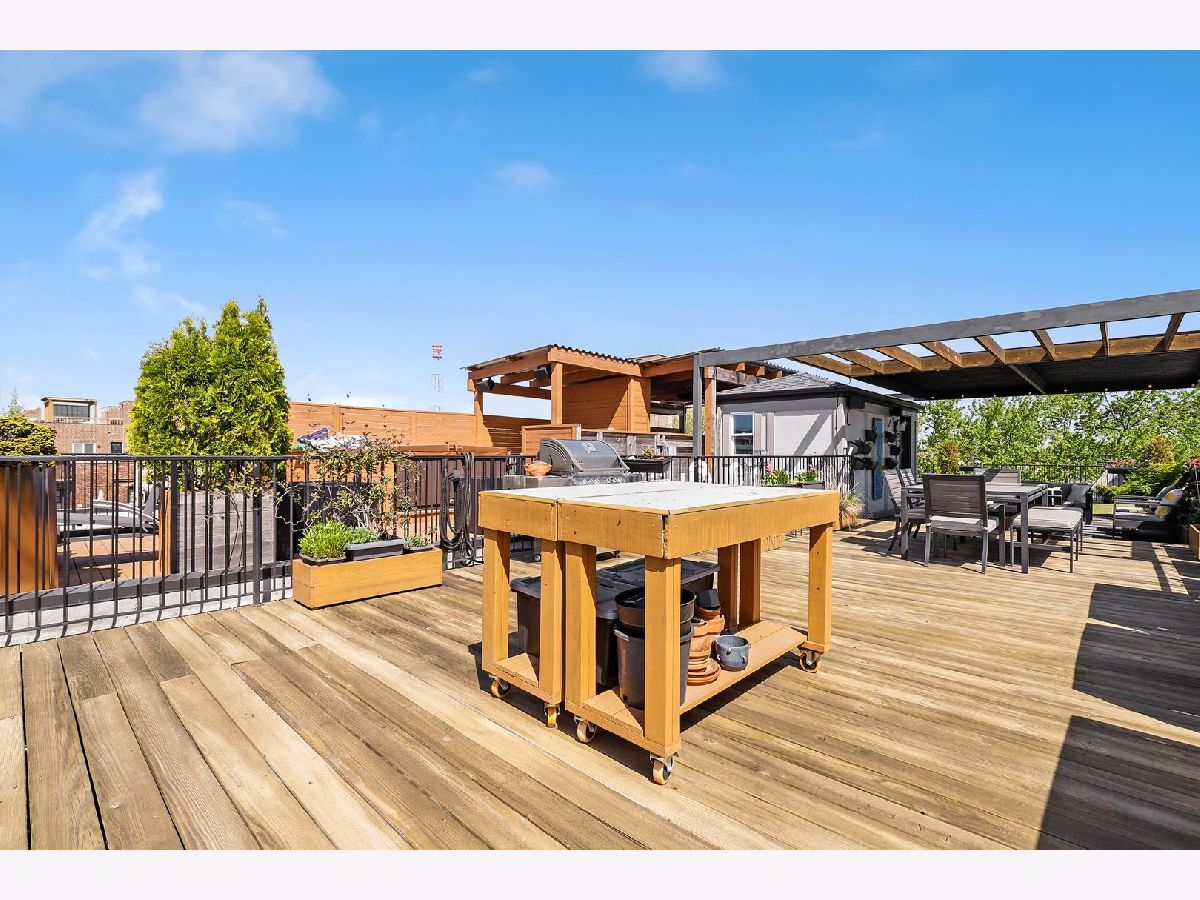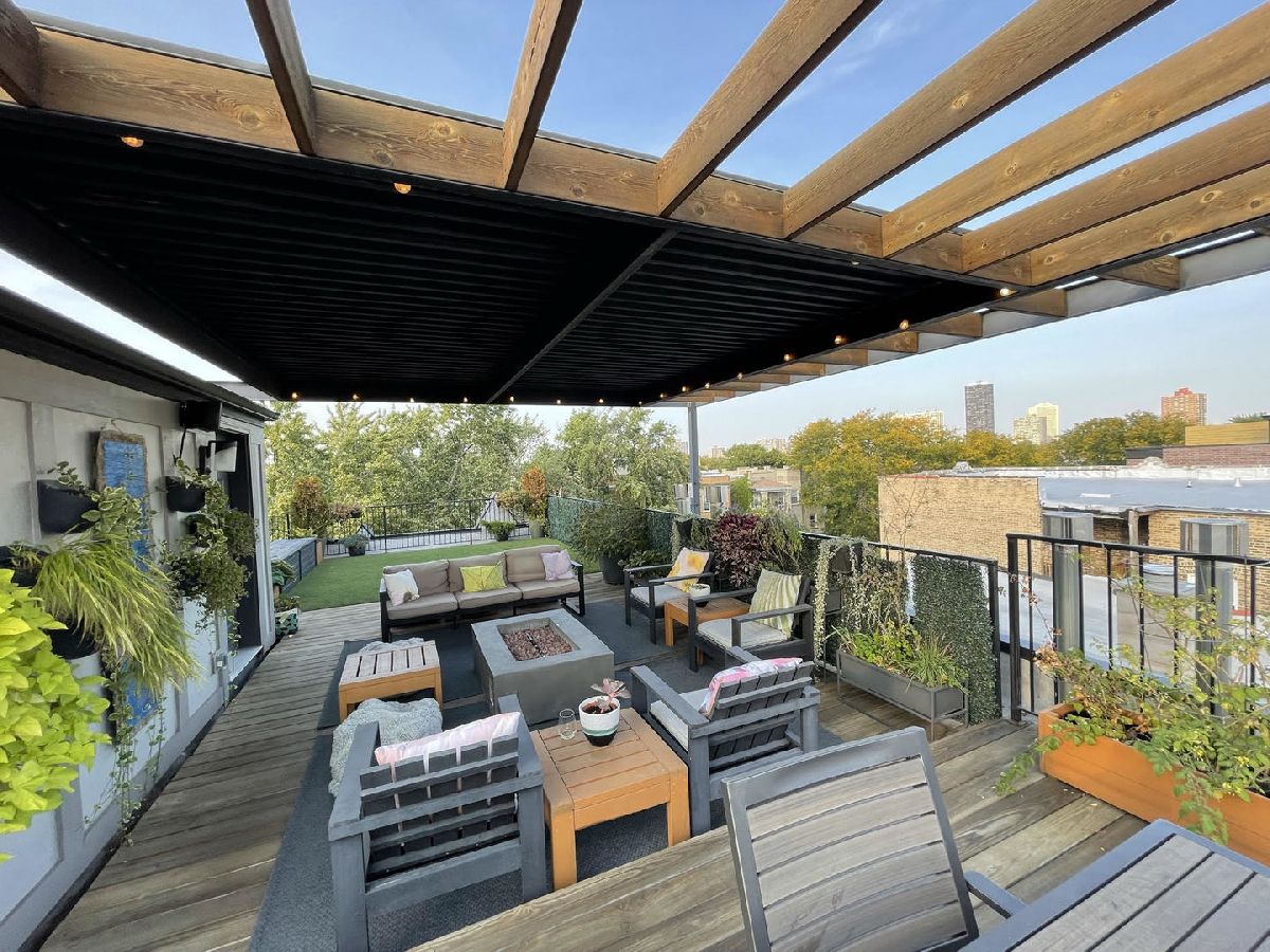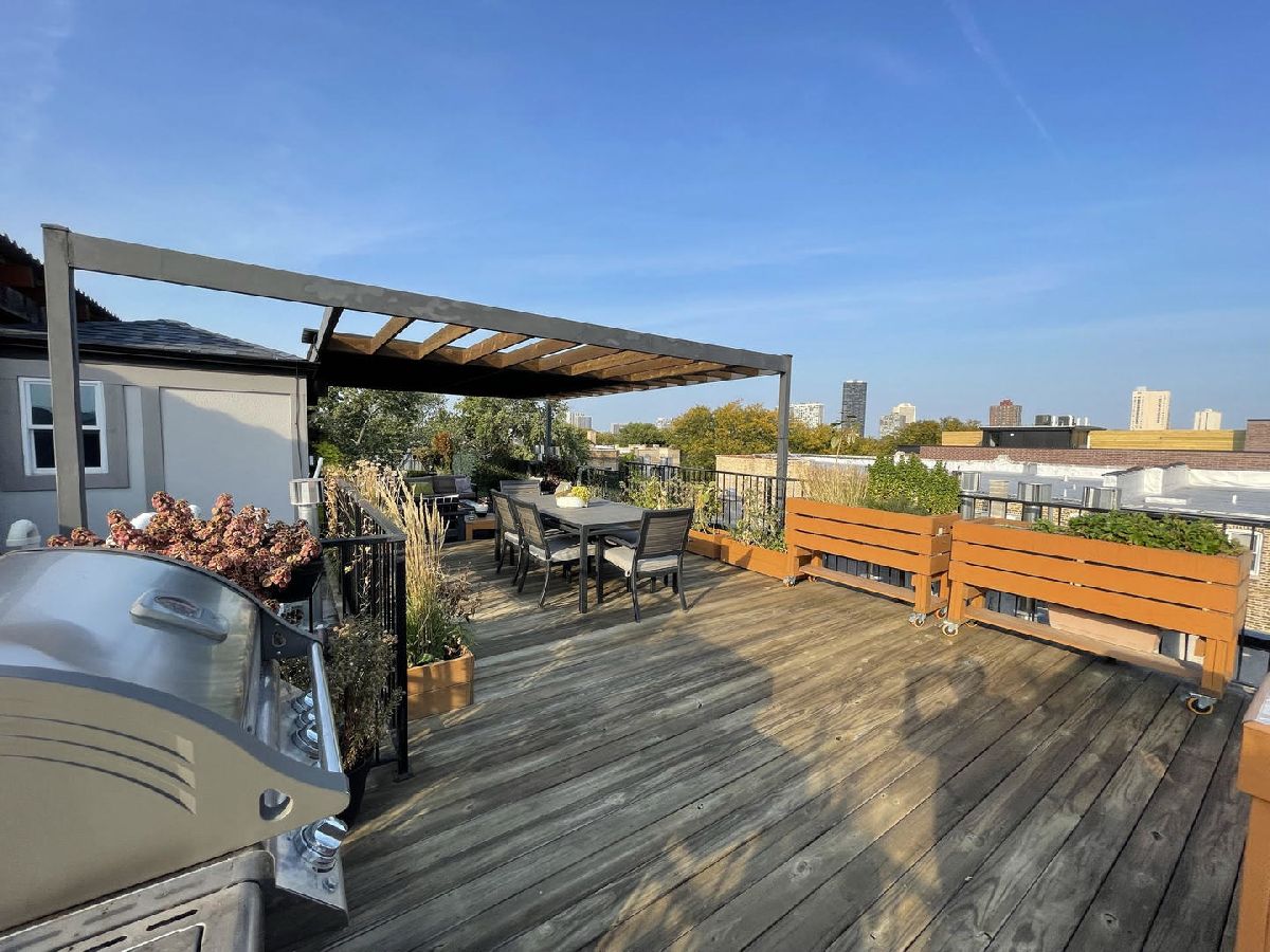 Beautiful Andersonville classic Greystone penthouse on a gorgeous tree lined street. Featuring unbelievable outdoor space with private, giant built out rooftop deck with pergola plus front and rear decks. This 3 Bdrm 2 Bath home has 9.5' ceilings, dark stained hardwood floors & crown moldings. The Chef's kitchen includes top of the line finishes, granite countertops and an XL island with 30" beverage cooler. Commercial grade appliances, abundant white cabinetry, tile backsplash, & farmhouse sink. Super sunny with no building blocking to the east. Gorgeous king sized master suite with stone bath, double vanity and large walk in Steam Shower with full body sprays and heated floors. Two additional spacious bedrooms & gorgeous 2nd bath with air jetted tub. Laundry in unit. Lots of closets and additional storage. Tandem parking included with one garage and one exterior space! Too Much to List. Perfect location! Just steps away from bustling Andersonville shops, dining and nightlife! Don't miss out! Make your private showing appointment today.