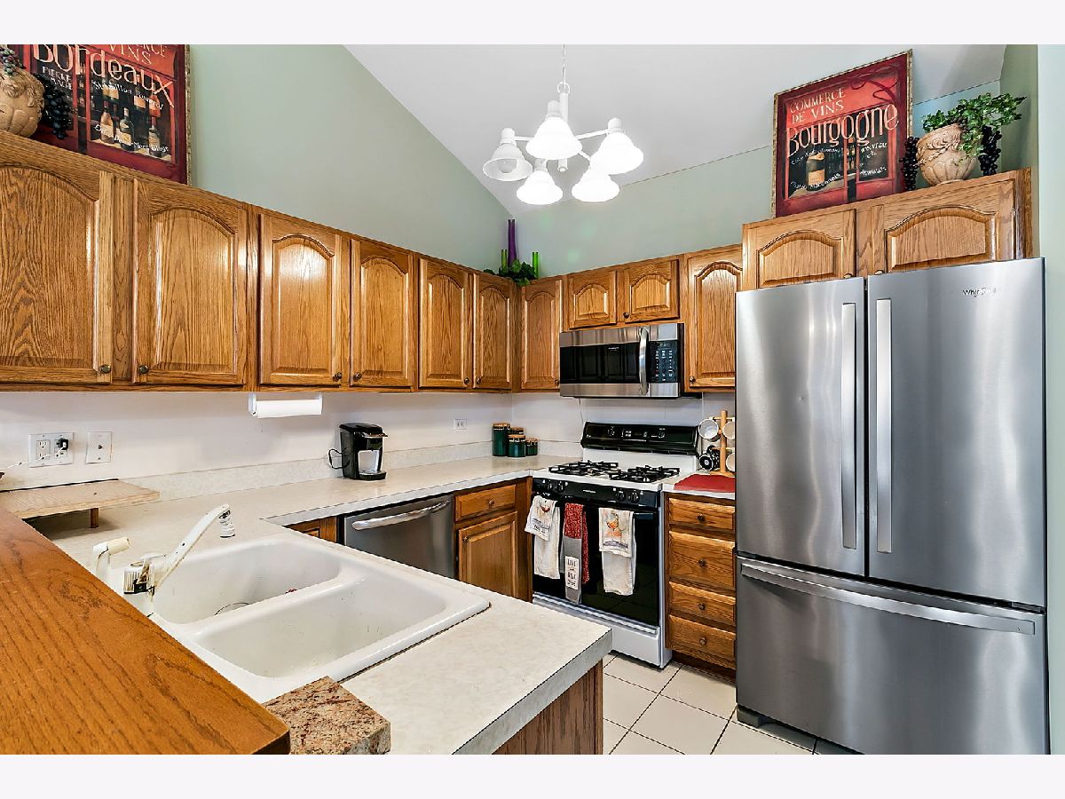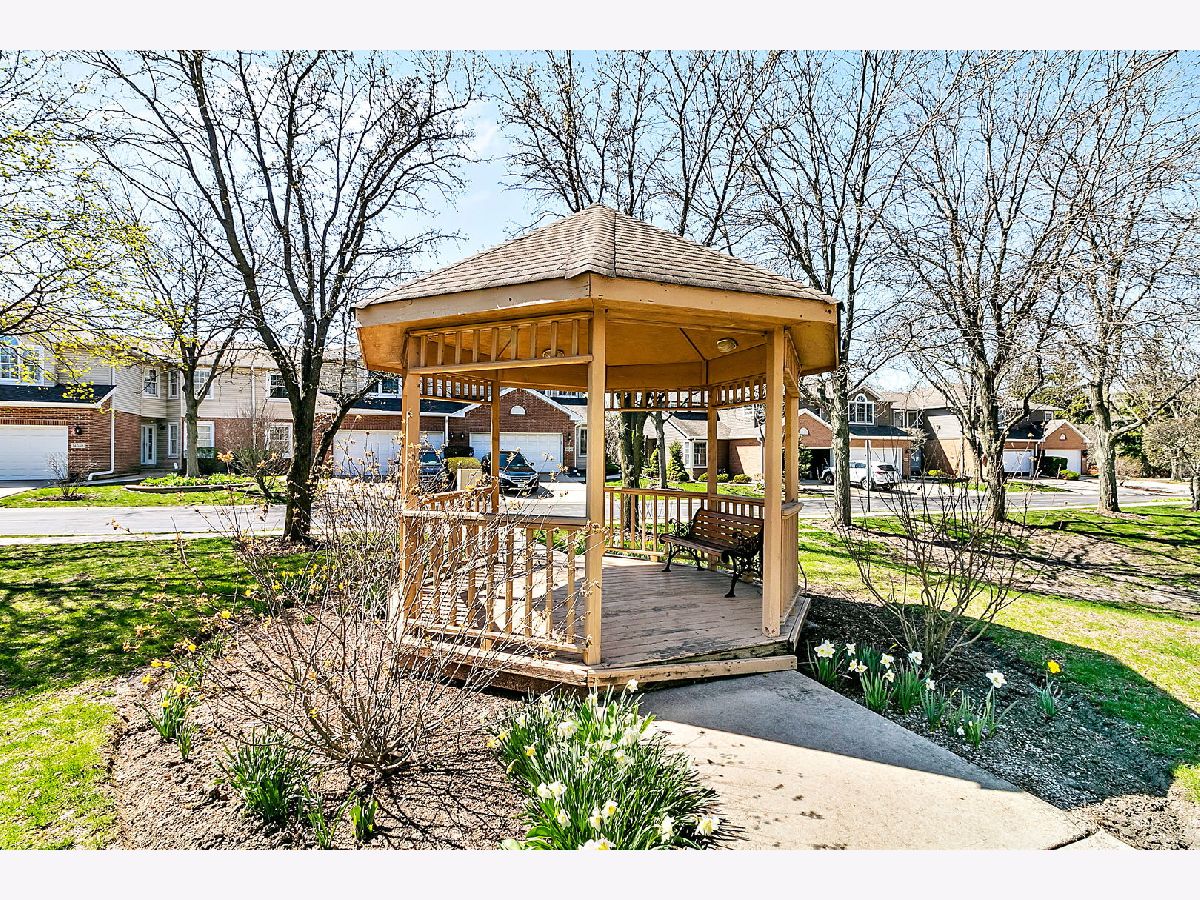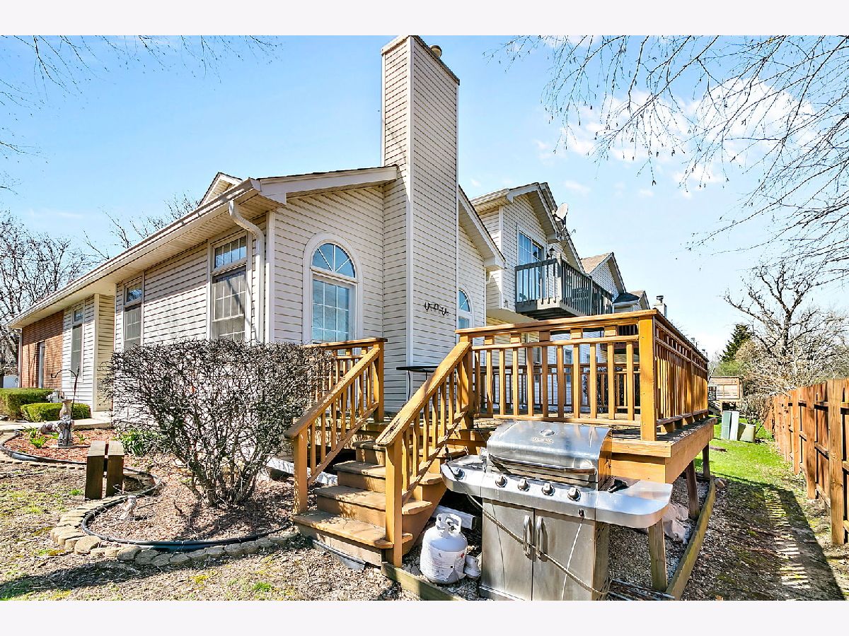 Spacious ranch townhouse with full basement and 2 car garage. This end unit home has plenty of room! The living room features a vaulted ceiling and leads out the back to a large deck. There are plenty of counters in the eat-in kitchen, which also has vaulted ceilings. The master bedroom has a walk-in closet and private full bath with whirlpool tub. The second bath has been updated and the laundry room has plenty of space! There is a third room that is currently being used as a den, could be a bedroom or a formal dining room. The full basement has 9' ceilings. Just a half mile to the forest preserve for picnics or hiking/walking/biking. Just about 4 miles to train station and shopping and schools are close by! Roof is under 5 years old and gutters have also been replaced. Two gazebos for resident's use.