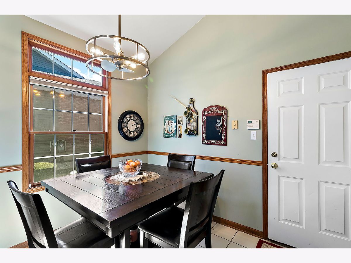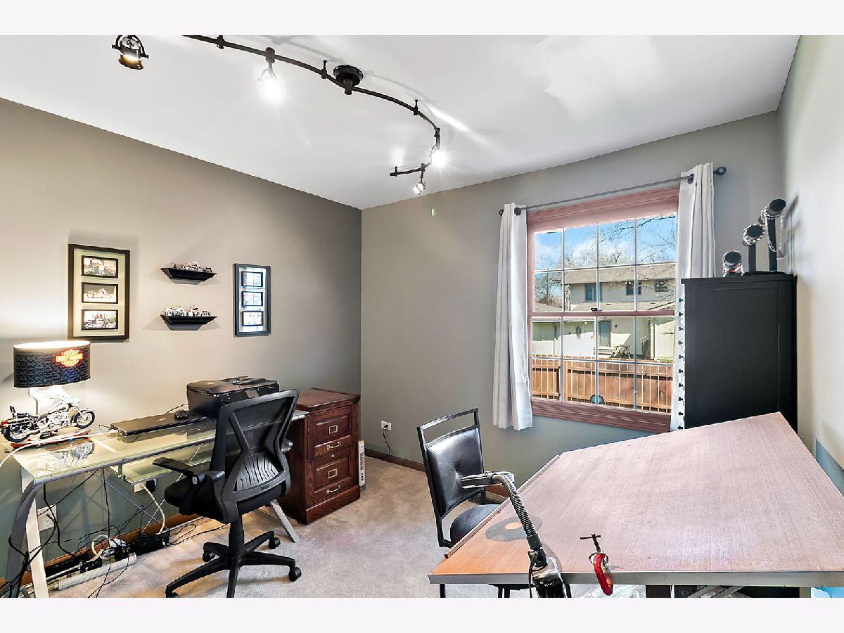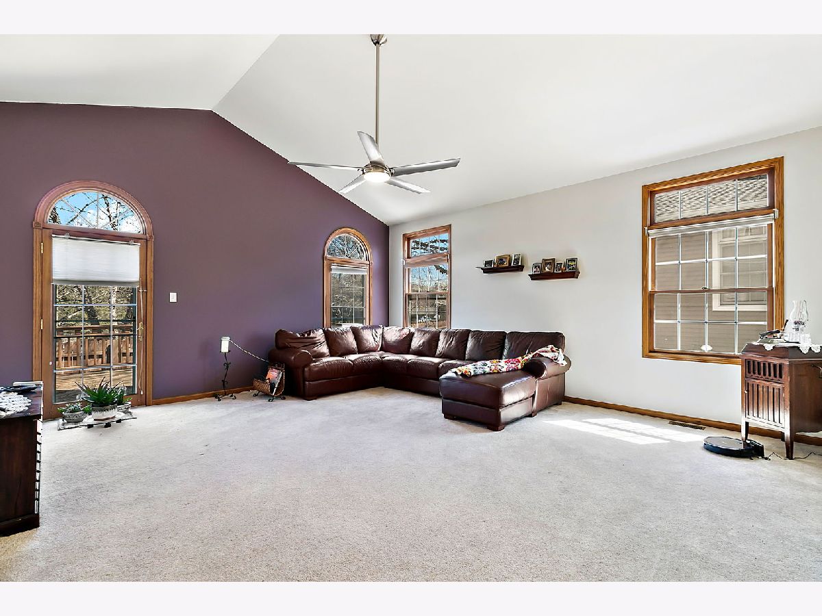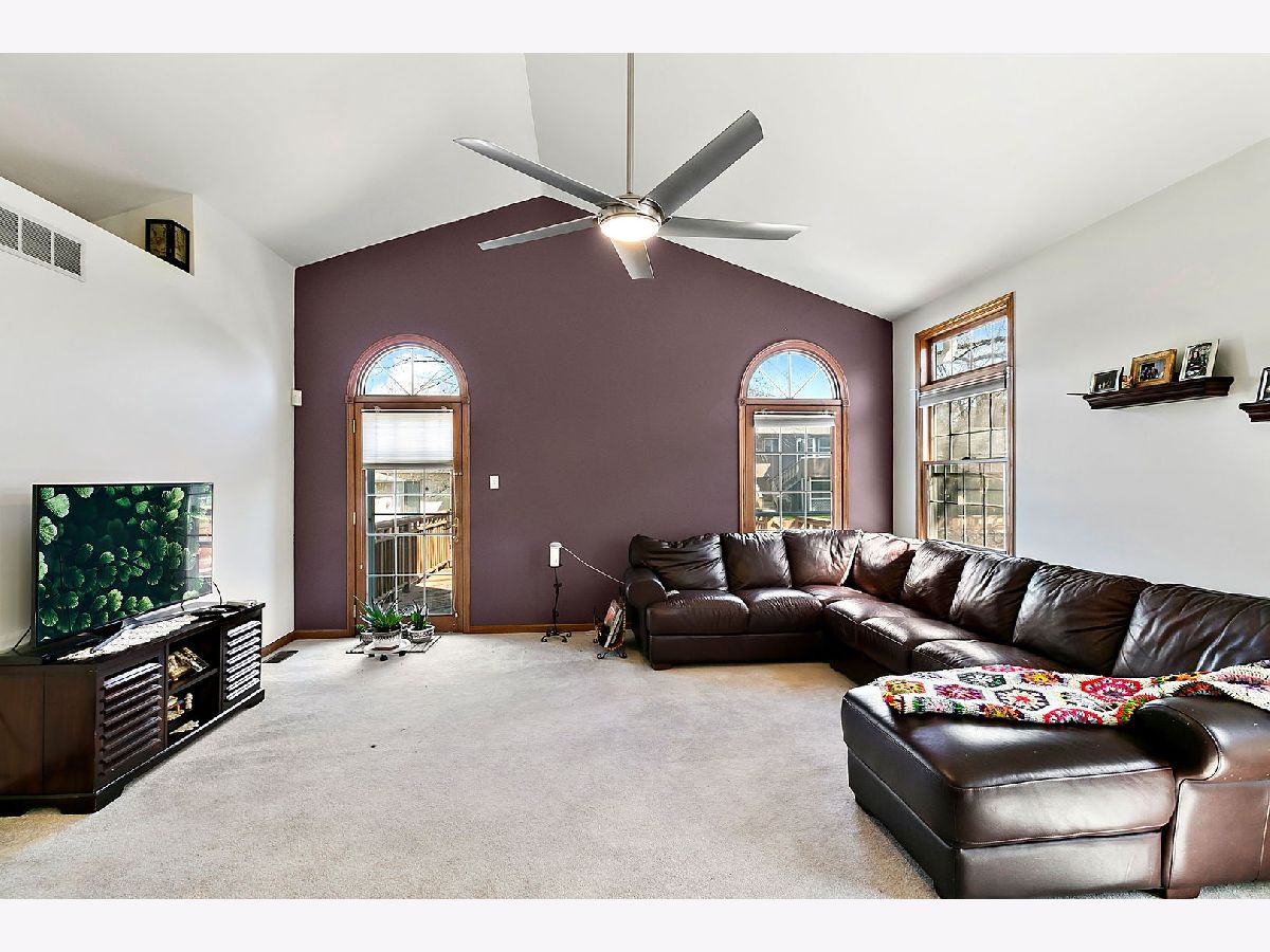 Spacious ranch townhouse with full basement and 2 car garage. This end unit home has plenty of room! The living room features a vaulted ceiling and leads out the back to a large deck. There are plenty of counters in the eat-in kitchen, which also has vaulted ceilings. The master bedroom has a walk-in closet and private full bath with whirlpool tub. The second bath has been updated and the laundry room has plenty of space! There is a third room that is currently being used as a den, could be a bedroom or a formal dining room. The full basement has 9' ceilings. Just a half mile to the forest preserve for picnics or hiking/walking/biking. Just about 4 miles to train station and shopping and schools are close by! Roof is under 5 years old and gutters have also been replaced. Two gazebos for resident's use.
