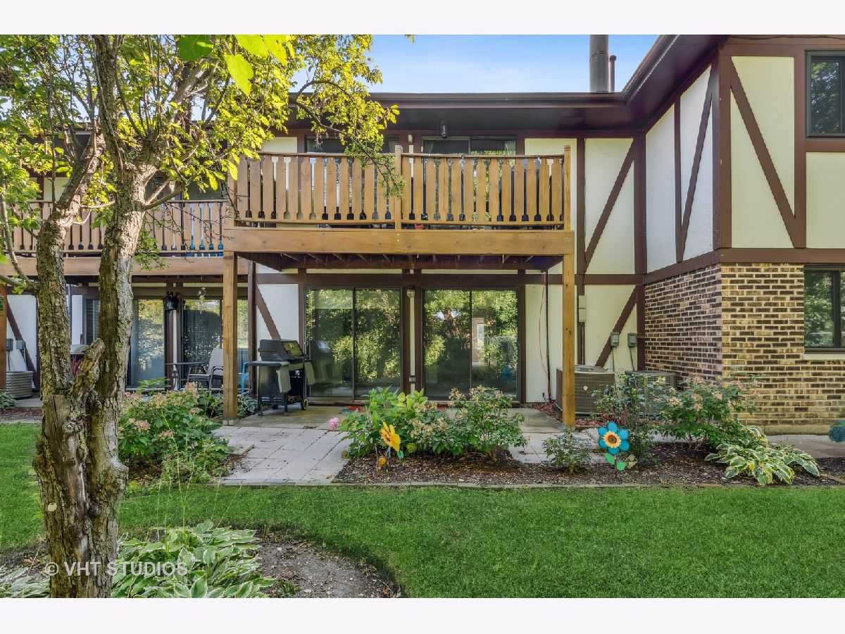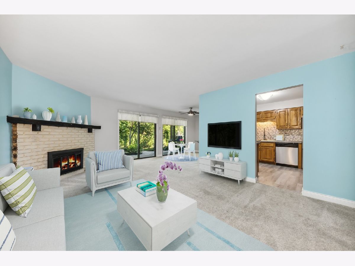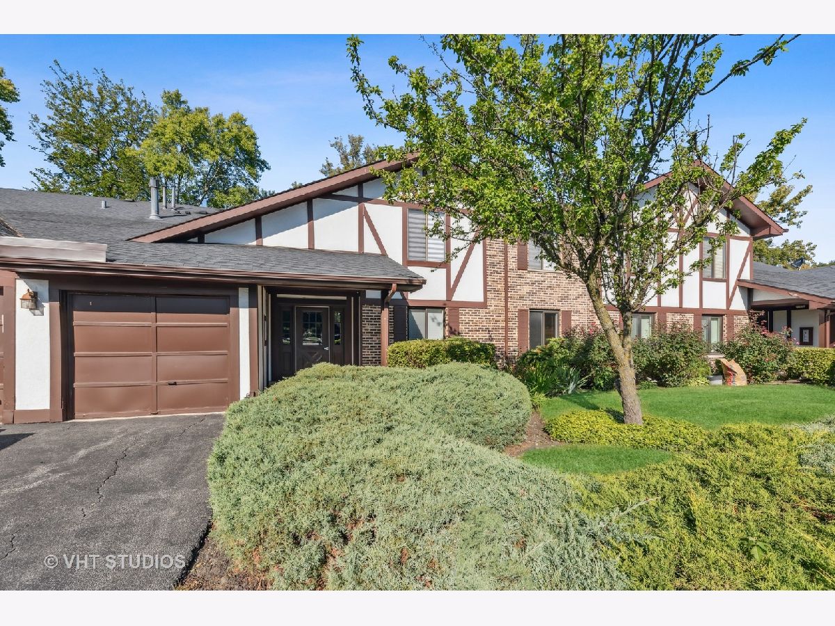 First Floor condo in great location and backing to Park District golf course for scenic views. Unit is on the first floor 2 bed/2 full bath. Attached garage with storage space at the back. Condo enters into spacious Living room, with a fireplace and double sliders out to a private patio for entertaining and grilling. The Kitchen was updated and additional cabinets and breakfast bar area added. Huge walk-in pantry for tons of storage. All stainless-steel appliances and new sink/disposal. Very well cared for unit with new flooring and new carpet in 2022, Private in-unit laundry. Bedrooms have newer Pella windows so very quiet. Primary bedroom has a large walk-in closet and private bath with walk-in shower. The furnace & humidifier 2020, AC 2018, washer 2020, New garage door this summer. Move in ready, good location just blocks from Randhurst Mall, Golf course, and pools.