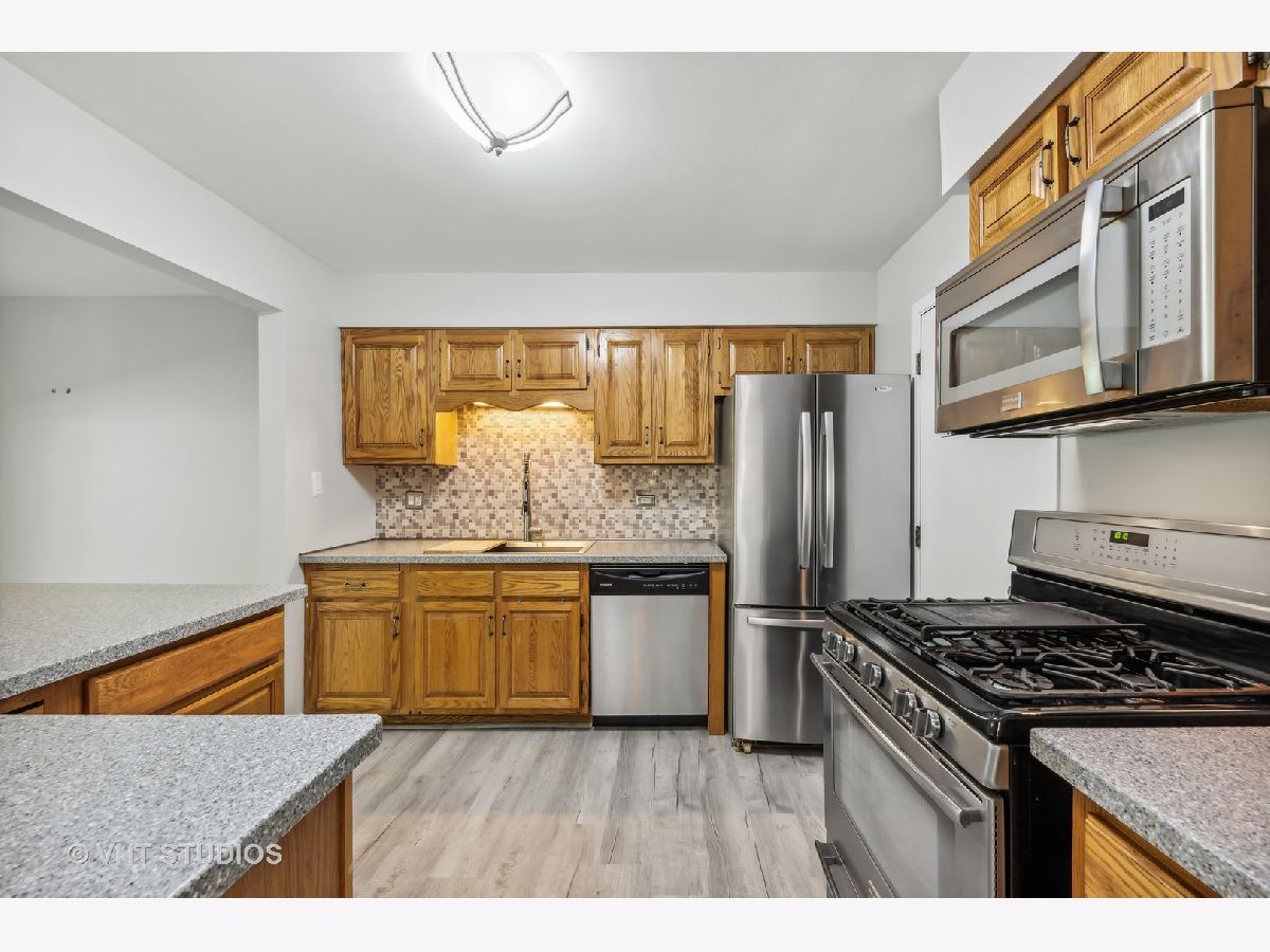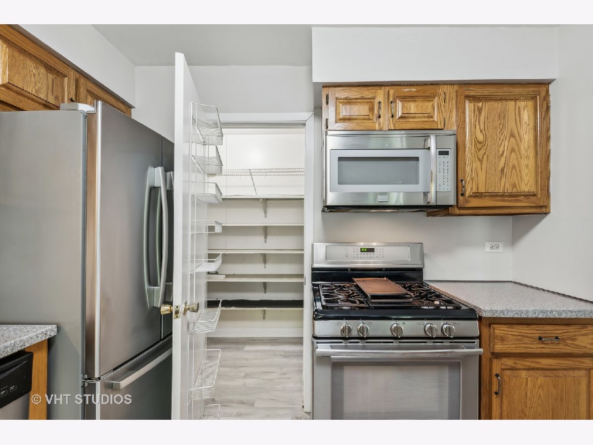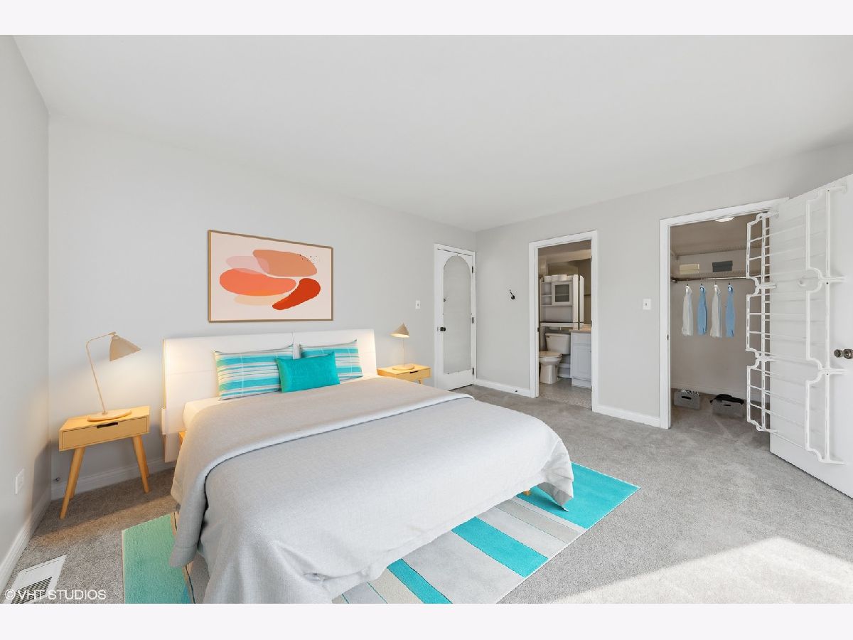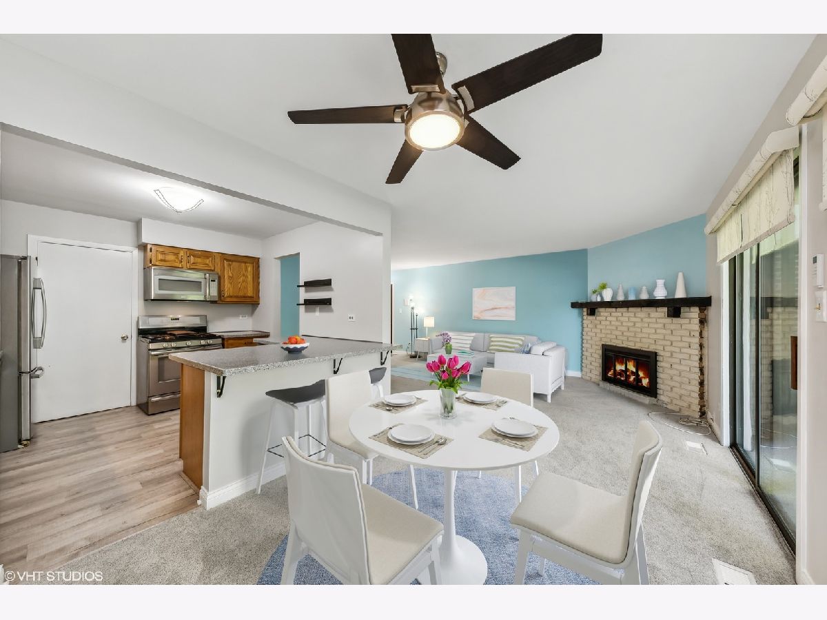First Floor condo in great location and backing to Park District golf course for scenic views. Unit is on the first floor 2 bed/2 full bath. Attached garage with storage space at the back. Condo enters into spacious Living room, with a fireplace and double sliders out to a private patio for entertaining and grilling. The Kitchen was updated and additional cabinets and breakfast bar area added. Huge walk-in pantry for tons of storage. All stainless-steel appliances and new sink/disposal. Very well cared for unit with new flooring and new carpet in 2022, Private in-unit laundry. Bedrooms have newer Pella windows so very quiet. Primary bedroom has a large walk-in closet and private bath with walk-in shower. The furnace & humidifier 2020, AC 2018, washer 2020, New garage door this summer. Move in ready, good location just blocks from Randhurst Mall, Golf course, and pools.