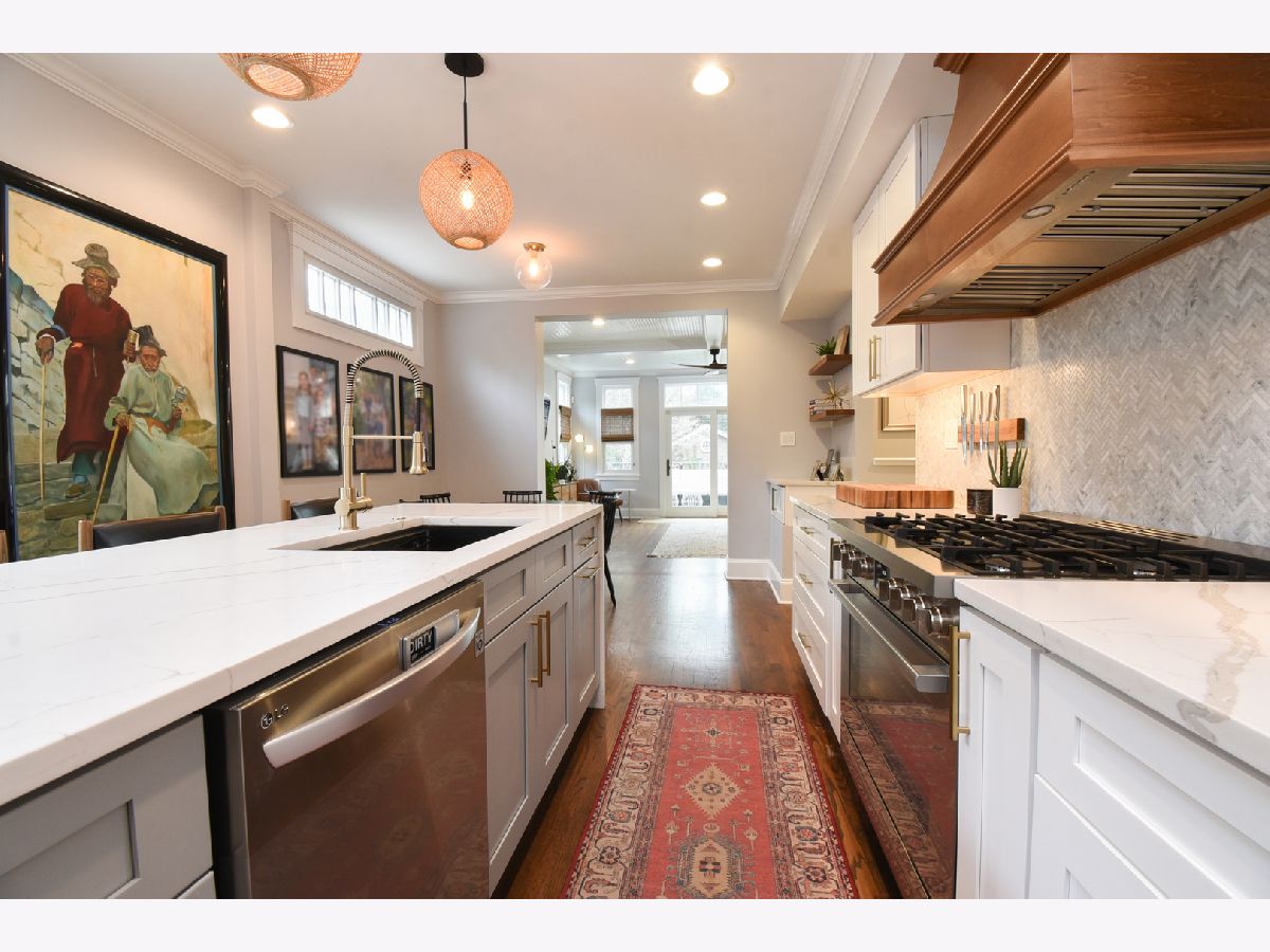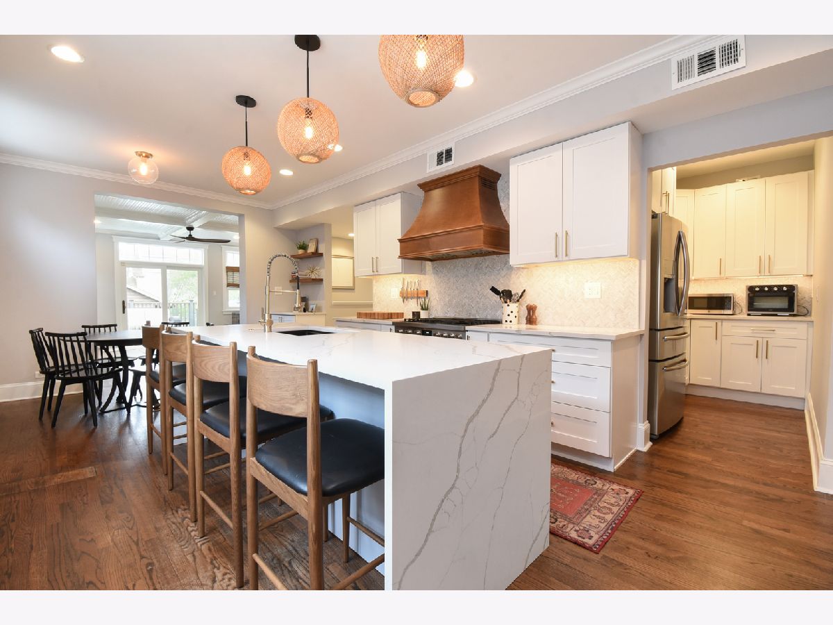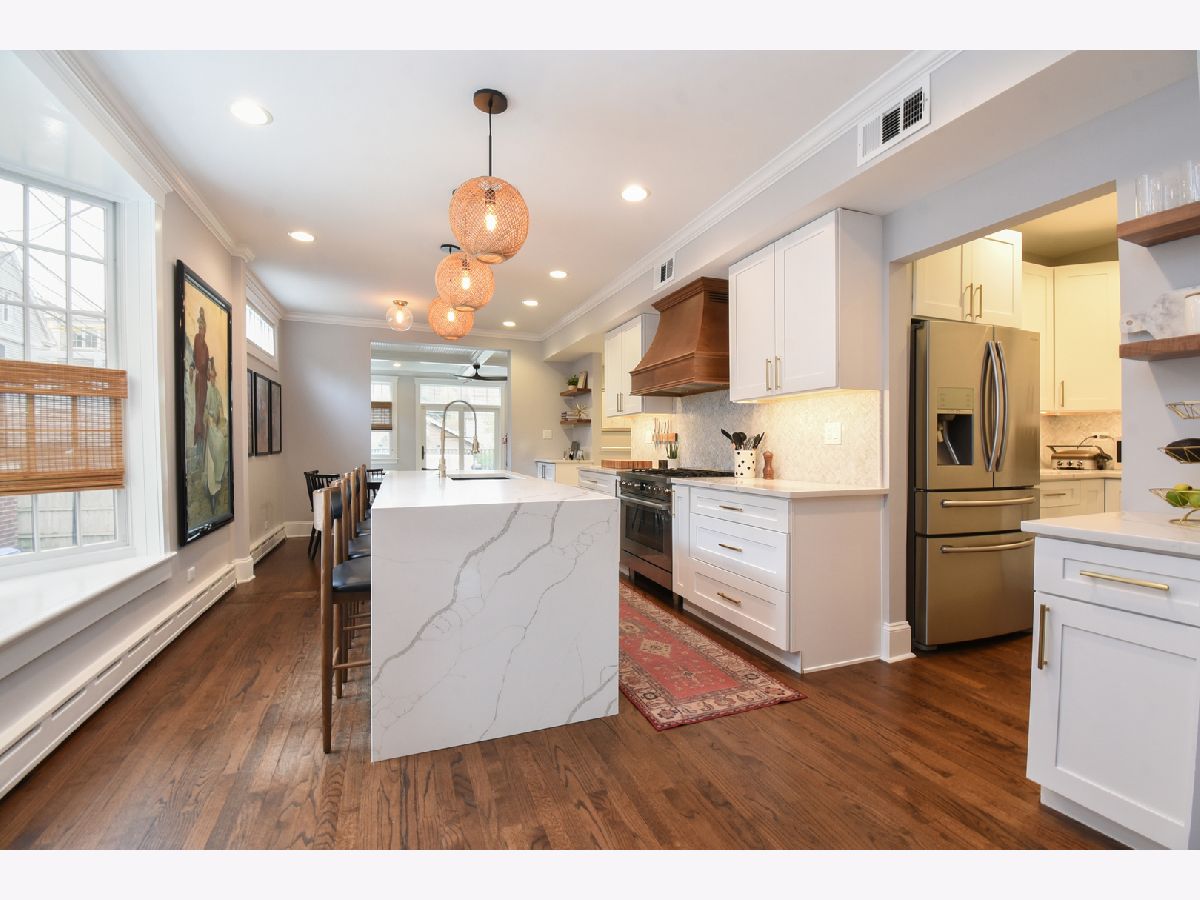 Discover a hidden treasure in the heart of Southport Corridor. Beyond its unassuming exterior lies a spacious sanctuary, thanks to an expansive lot and meticulous interior redesign. Step inside to find a seamless flow from the foyer to the formal living room, graced by a picturesque window framing the front garden and a reimagined gas fireplace. The focal point of the main level is the dazzling new chef's kitchen, boasting a custom herringbone tile backsplash, a sprawling quartz island with a waterfall edge, top-of-the-line appliances, and ample storage discreetly tucked away. Adjacent, the dining area bathes in natural light, leading to a cozy family room with elegant coffered ceilings. During warmer months, open the family room doors to extend your living space onto the wrap-around deck enveloped by lush landscaping. Upstairs, the primary bedroom retreat impresses with dual walk-in closets and a luxurious ensuite bath featuring a jetted tub and separate shower. Two additional bedrooms, an open office, and another full bath complete the second floor, fulfilling every homeowner's desire for convenience and comfort. Descend to the finished basement, boasting tall ceilings, two extra bedrooms, a brand-new bathroom, and a sprawling recreation room with a separate play area, perfect for entertaining or relaxation. Outside, a rare two-car garage and a deep, fully fenced yard provide both convenience and privacy. Centrally located steps from Blaine School, Brown Line transportation, and the vibrant Southport Corridor, this home epitomizes the best of Chicago living. Come and experience why the Southport Corridor is one of the city's most coveted neighborhoods.
