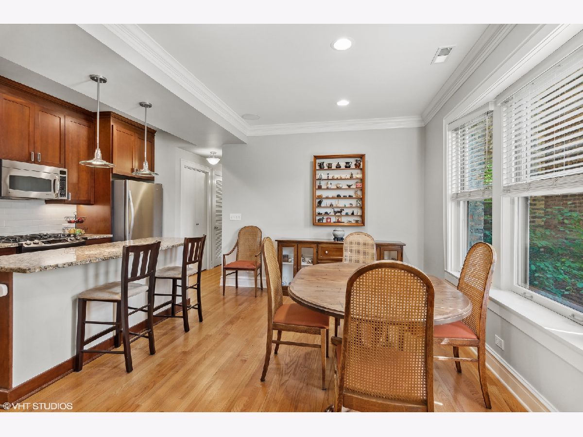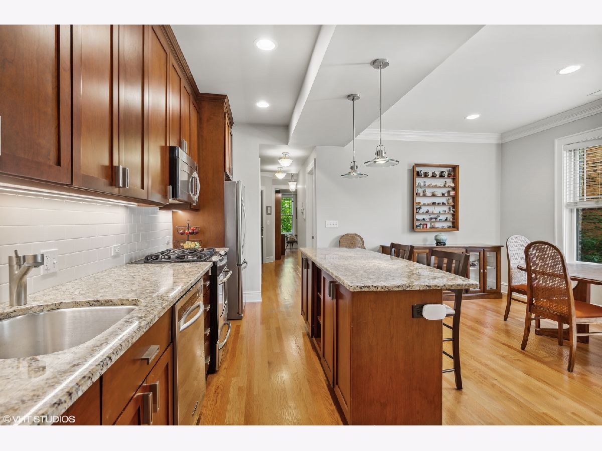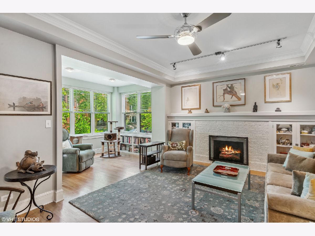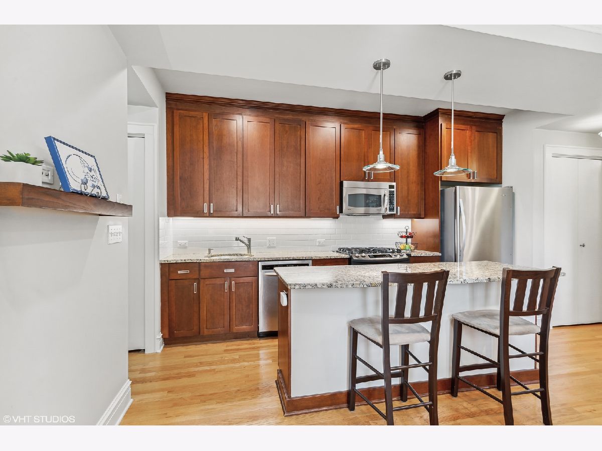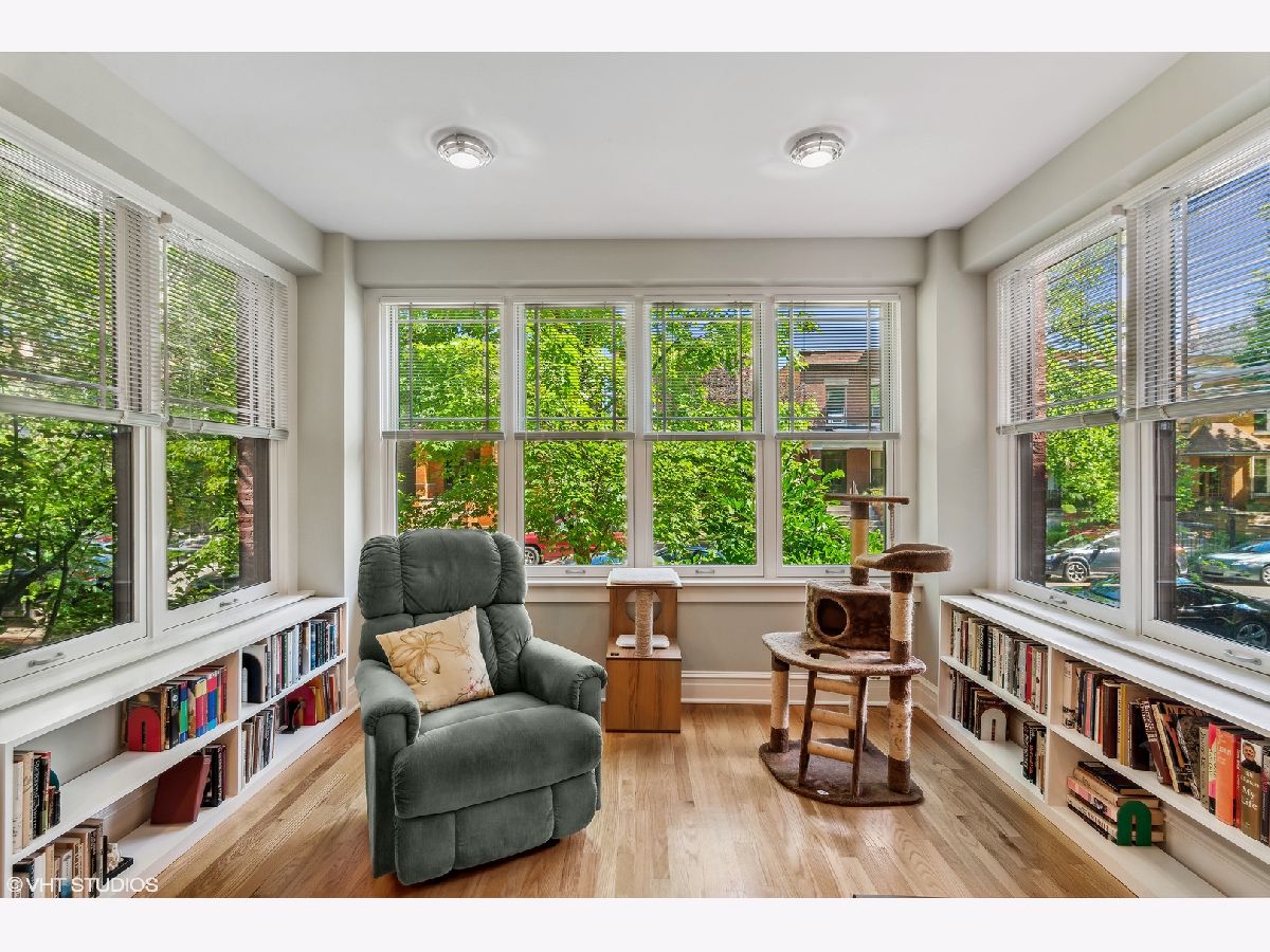 Welcome to Andersonville's most luxurious vintage! This 3 bed / 2 bath first floor condo is PERFECT for someone looking for a sunny and spacious new home with east, west, AND south exposures. Enter into the spacious living room full of natural lighting from the windows that line the walls, these come with Graber faux wood blinds added in 2018. Make yourself at home or have a space to entertain with the brick fireplace and built in shelving. Find even more built in wall to wall bookshelves in the sunroom, the perfect place to enjoy a new beach read all year round. The kitchen is complete with shiny stainless steel appliances, LED lights under cabinets, a combined dining area, and a granite topped island. There's no shortage of counter or cabinet space for the at home chef! Each bedroom is generously sized and are move in ready. You can even turn the 3rd bedroom into the perfect home office or studio space. Beautiful hardwood floors throughout and a vast private deck. IN UNIT laundry with an adjoining sink. Perfect for a first time buyer or someone looking to expand! One parking space included. Just steps away from the BEST of the best in Andersonville: amazing antique shops, grocery stores, a gluten free bakery, incredible restaurants and eateries, and the 22 Clark CTA bus!