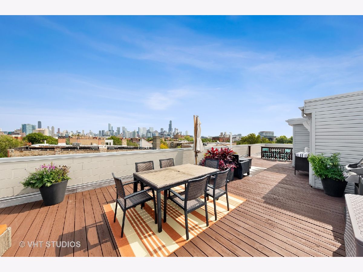 Stunning Penthouse 2 bed/2 bath in the heart of the red-hot West Town/Noble Square Neighborhood. Floor to ceiling windows flood the living area with natural light that extends into the sleek kitchen outfitted with Copat Italian cabinetry, white quartz countertops, sub zero fridge, and custom light fixtures over the extended peninsula. charming guest suite, full bath, and extra storage closets line the hallway enroute to the spacious primary bedroom with skyline views and a beautiful custom chandelier. The ensuite bathroom comes equipped with a dual-sink floating vanity, enormous standup shower, and a walk-in closet. Finally, take the interior staircase up to your private 1000 sqft roof deck outfitted with speakers, a mounted TV, and the most incredible views of the Chicago skyline! Garage parking included, A++ location within walking distance to all restaurants on Chicago Ave & Fulton Market. Close proximity to Chicago "El" train and easy access to 90/94!