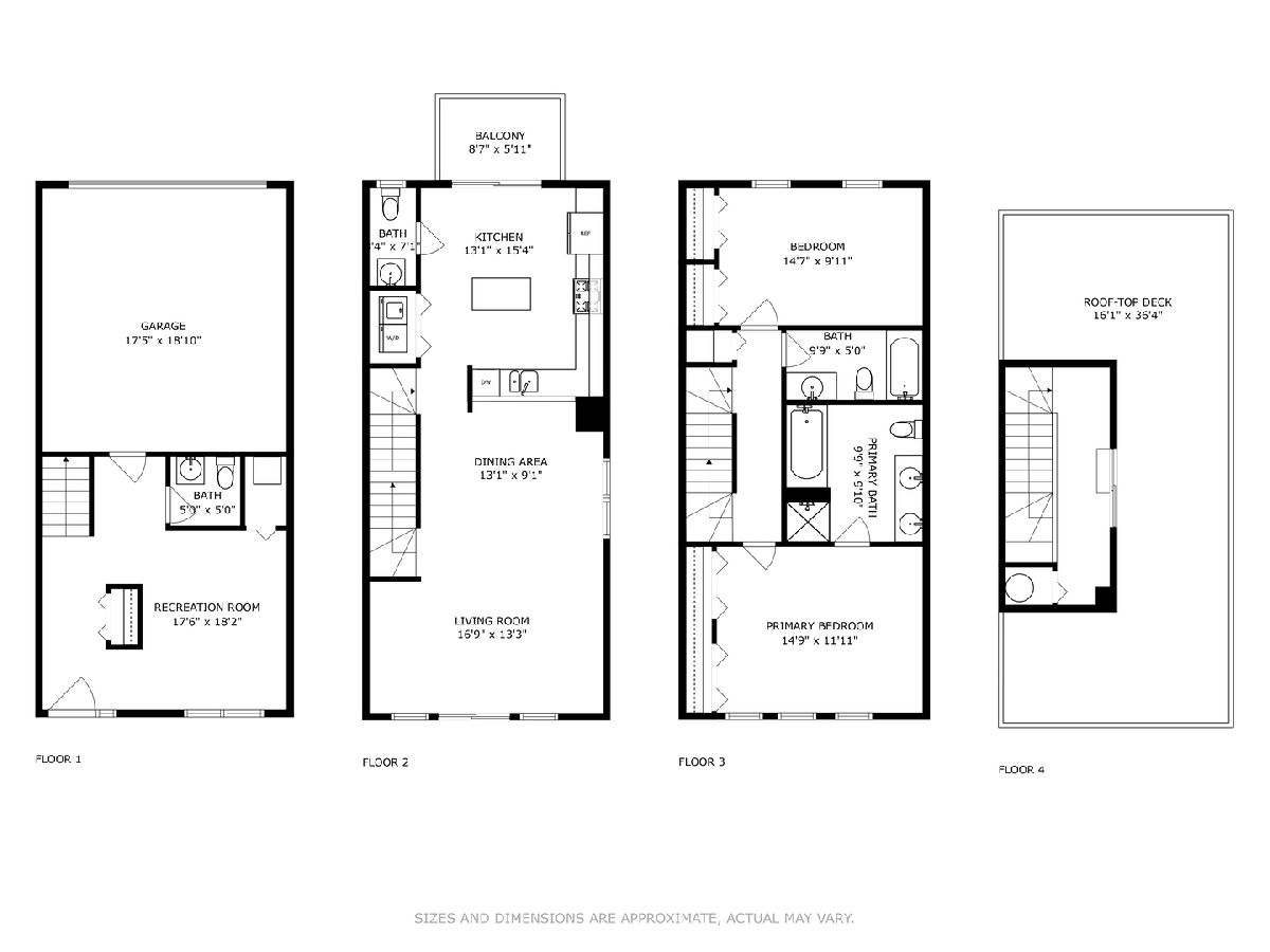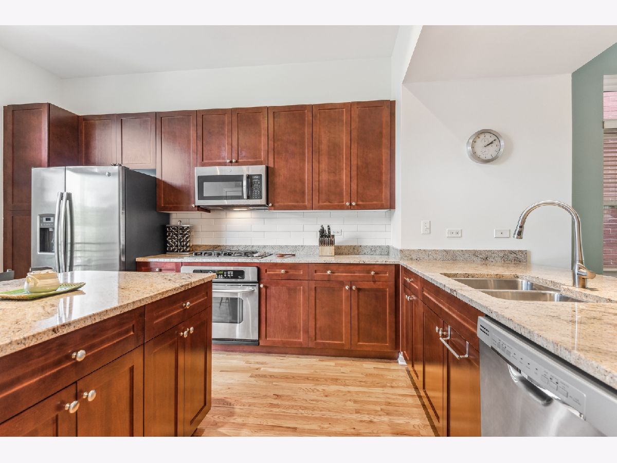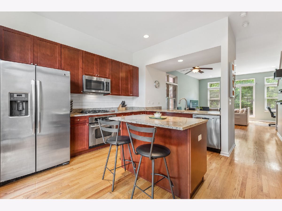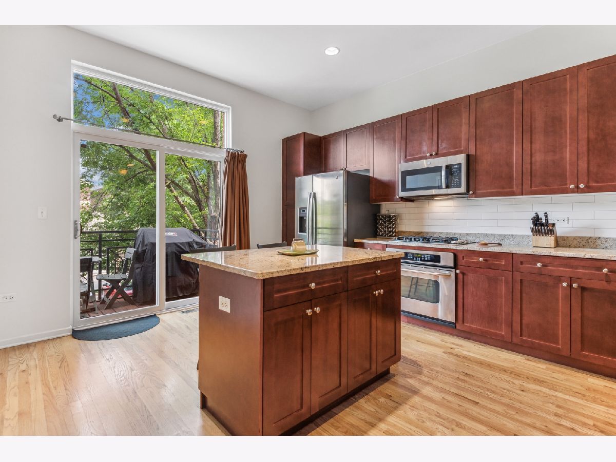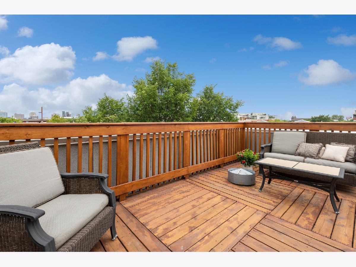 Fabulous, super sunny, 4-story townhome, with amazing skyline and tree views in the middle of everything that University Village has to offer!! This wonderful, bright, all brick and masonry townhome is in move-in ready! This home boasts a fantastic open floor plan but with a nice separation of space. The ground floor has a large 2-car garage with 2 extra spaces behind for a total of 4 car parking and the 3rd bedroom/media room with its own 1/2 bath. The main floor is an open concept with hardwood floors and a huge kitchen which opens to private balcony for grilling and contains tons of storage with beautiful 42" wood cabinets, custom backsplash, upgraded stainless appliances including a built-in oven and cooktop, a large island and enormous granite counters. The extra tall ceilings make the living/Dining area feel extra spacious and bright. The 3rd floor includes two large bedrooms and 2 baths including a very large primary suite with an extra-large ensuite bath that includes marble counters, a double-bowl vanity, a soaking tub and a separate shower. The top floor has room for an additional office and direct access to the large, refinished rooftop deck with the most spectacular views of the city! Other wonderful features include side by side washer/dryer, tons of storage in the extra-large garage, central air, new carpet and paint, refinished hardwood floors, and at least one bathroom on every level. Easy access to the expressway and easy walk to dog park, Metra, tons of restaurants and cafes, parks and recreation fields and Pilsen!!