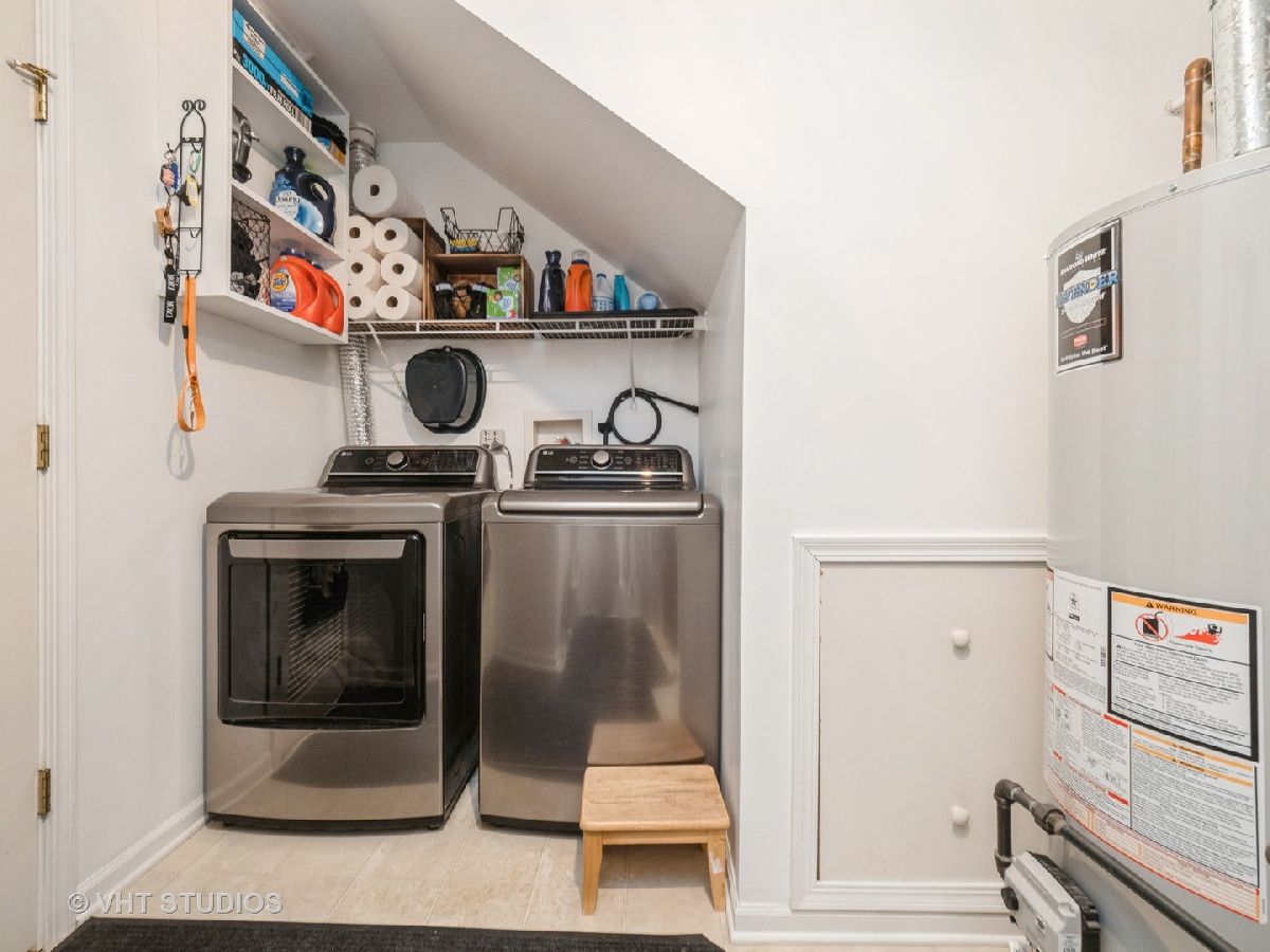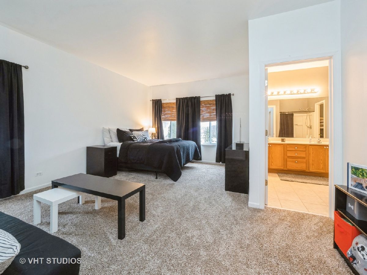 This home shows like a model. Newly painted, flooring and carpeting.Beautiful end unit two story townhome.Features two bedrooms plus an expansive loft that can be converted to bedroom three.Nine foot ceilings throughout. 2.5 car garage. Large kitchen, newer stainless steel appliances, corian countertops, 42" cabinets and a huge island. Patio doors lead to an expansive, professionally landscaped for lots of fun. Master suite features a generous walk in closet, private bathroom with soaking tub, stand alone shower, double sinks.Ceramic tile floor in foyer and laundry room.Conveniently located near metra station, restaurants, shopping and major roadways.