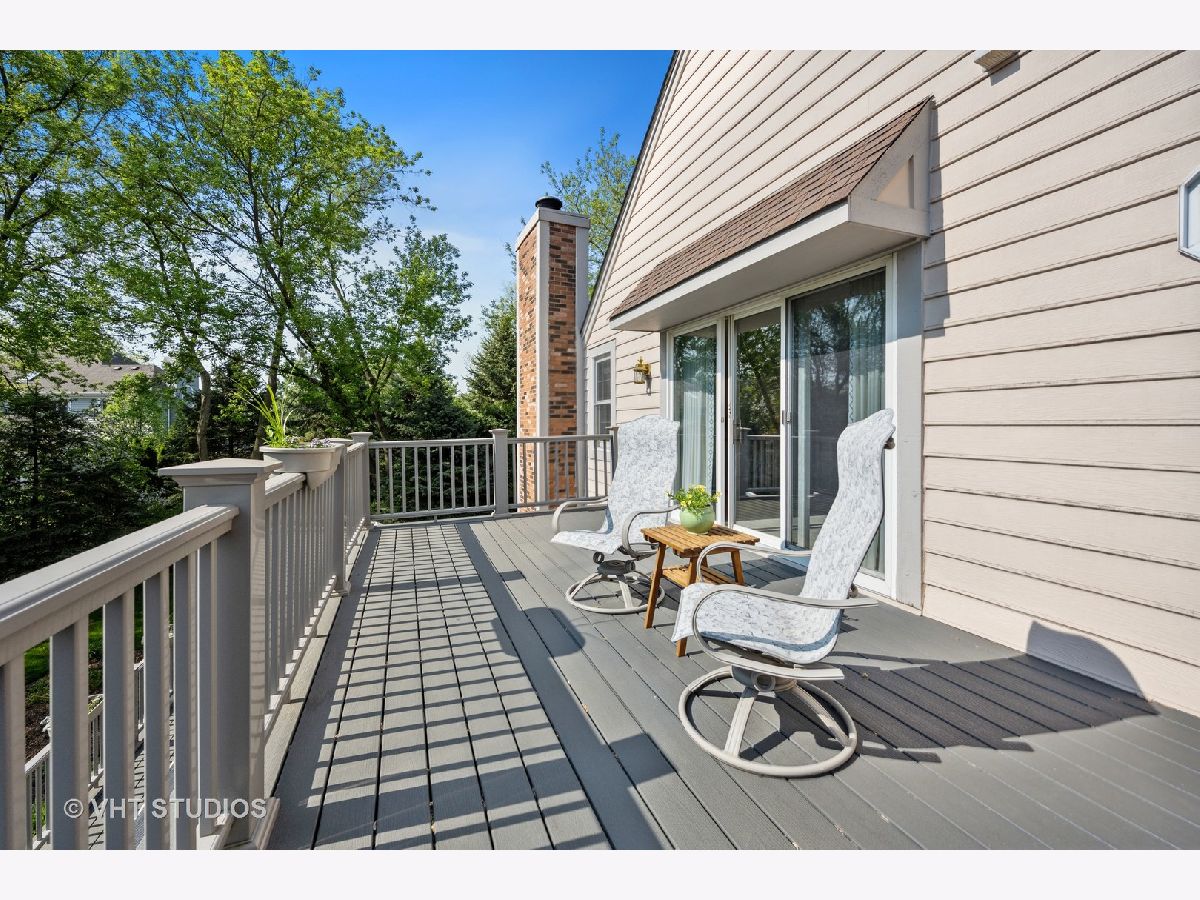 ONE OF THE PRETTIEST PROPERTIES IN THE NEIGHBORHOOD! Enjoy complete privacy in this secluded Whittington Course townhome, situated at the end of road on a corner lot with mature trees. Gleaming hardwood floors throughout the main floor. Living room with vaulted ceiling, fireplace, skylight and window seat to enjoy looking out at your beautiful yard. Cozy den off the living room creates a private sanctuary for reading or watching television. Updated kitchen with newer appliances (2017), granite countertops and a center island for additional counterspace and storage. And take a look at this absolutely AMAZING over-sized sun room with two walls of windows, wood floors and fabulous views! Sun room leads out to the extended Trex Deck (2019) perfectly sized for grilling or entertaining your friends on a summer's evening. Master bedroom offers a large walk-in closet, newly remodeled ensuite bathroom with two sinks and walk-in shower. Enjoy your morning coffee on the private balcony off the master bedroom. Bedroom 2 presents with 2 large walk-in closets, window seat and built-in shelves. The finished basement (updated in 2020) has new engineered hardwood flooring with separate family room and playroom areas, a half bath, and plenty of storage space! Two 40 gal. hot water heaters (2017 & 2022), roof 2012, 2.5 car garage. This one's a PERFECT 10!