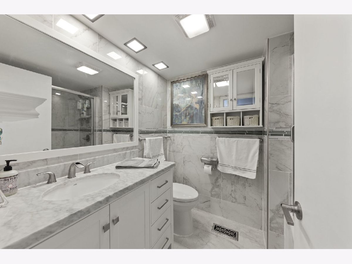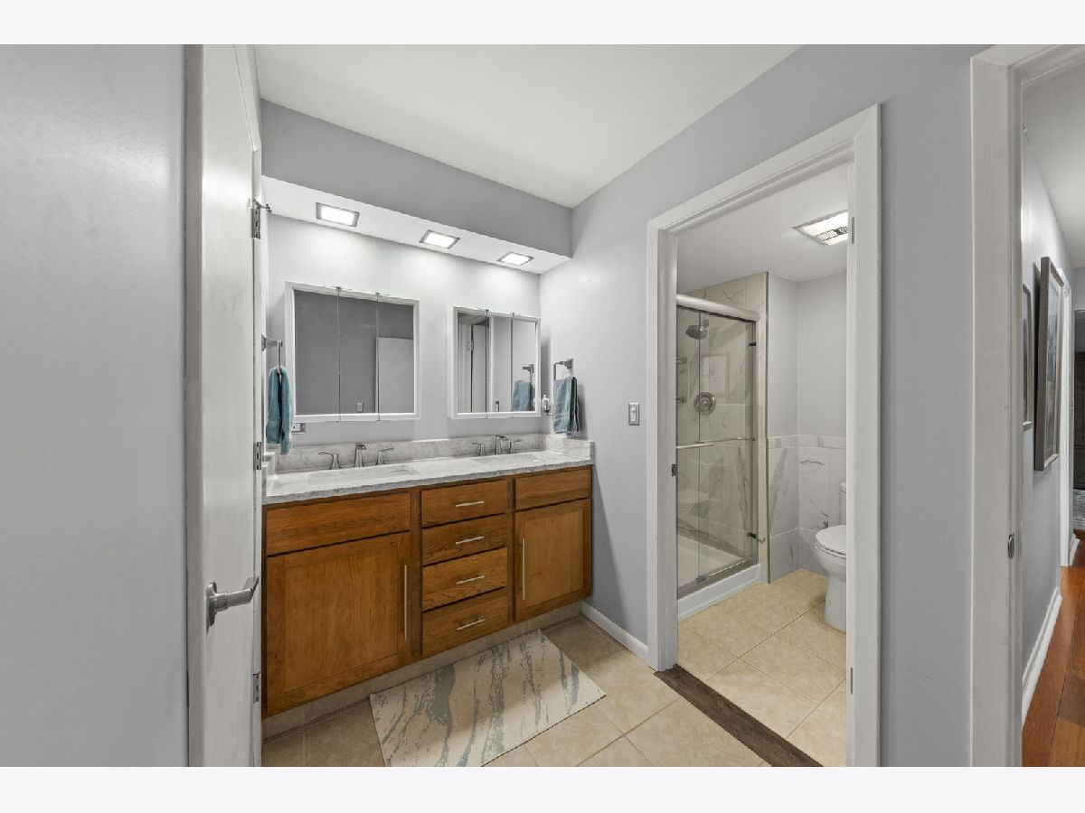 3-bedroom, 2-bathroom, ground-level condo that seamlessly blends upscale design with thoughtful functionality. Your first steps will be through the foyer featuring ceramic tile flooring along gorgeous tiffany blue painted walls, which then guide you to the inviting kitchen, dining, & living area. Throughout the living & dining area, the real cherry hardwood floors plus the gas-operated fireplace create that feeling of warmth, while also establishing a seamless connection between rooms. The heart of the home, the kitchen, roaring with a captivating combination of style and innovation. Large stone-styled flooring, modern backsplash, perfectly complementing the stainless-steel appliances. A standout feature is the smart motion-activated farmhouse-style sink, harmonizing convenience and aesthetics. Milk-painted grey cabinets, complimented by a foldable center island with a lazy Susan below adding to the plenty of cabinet space, just absolute charm and efficiency throughout. Just off the dining room, you have the luxury of your own private patio with a view of the private pond. A few steps down the hall from the living area you will notice across the second bedroom the custom-done full marble throughout bath giving off an absolutely luxurious aesthetic, few steps further down towards the end of the hall you will find the large master bedroom. The master bath features his and her sinks along with marble tile accenting along the shower wall and ceramic stone tile flooring. Master bedroom comes with a large walk-in closet, offers a serene escape with windows that overlook the picturesque pond, bringing a piece of nature indoors. Adding to the convenience of this beautiful condo, the master bedroom features an in-unit gas line-operated washer and dryer, a rare perk that's grandfathered in by the association. For added ease, the building also hosts an additional coin-operated laundry room. Move in now to this piece of paradise hidden in Wheaton, IL where every detail has been thoughtfully curated for by the current homeowners. | (Painted 2023)(Kitchen appliances 2018)(Master bath 2023)(Hall bathroom 2020)(Cherry hardwood floors 2017)(Dining/kitchen/foyer lighting 2021)(AC 2023)(Furnace 2023)(Patio 2018)(Roof 2019) | Association fee includes gas, heat, water, trash removal, insurance, lawn care, snow removal, exterior maintenance, scavenger, and currently an outdoor parking spot.