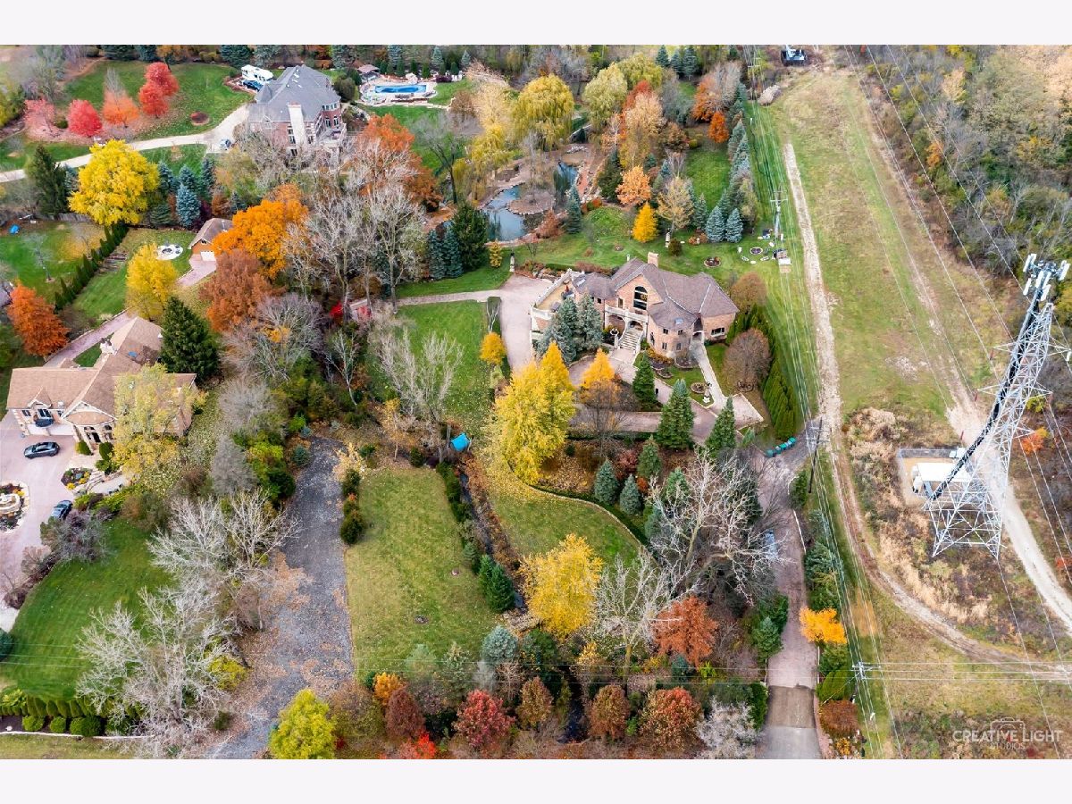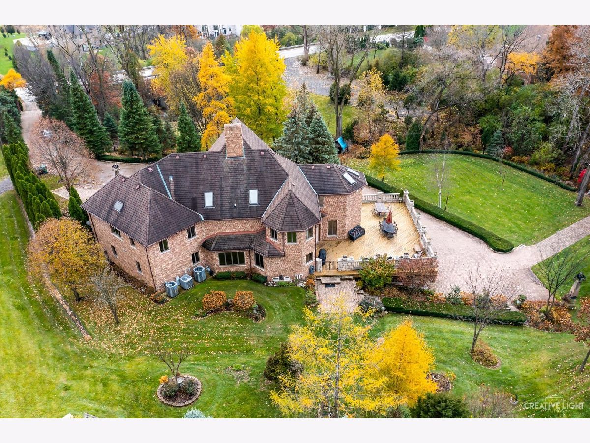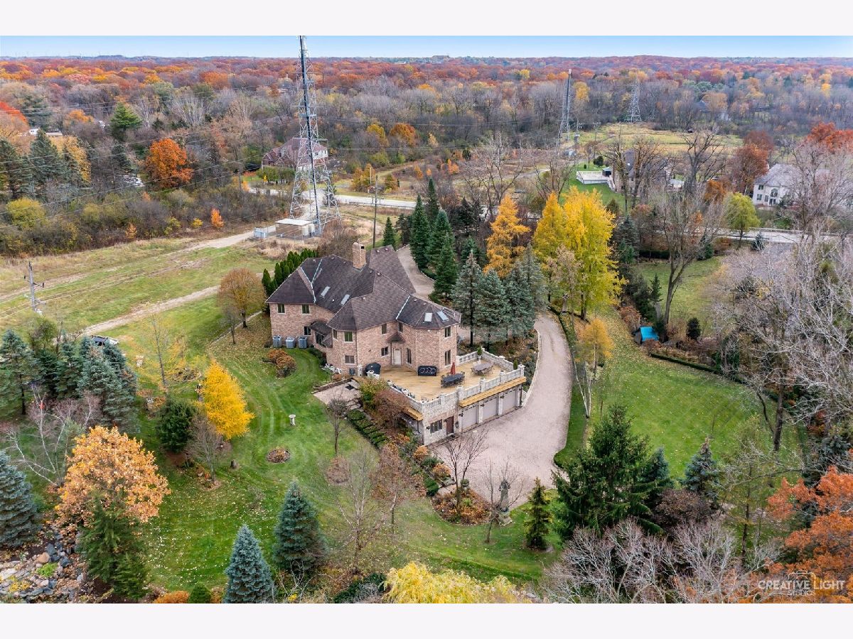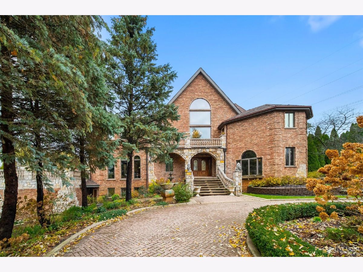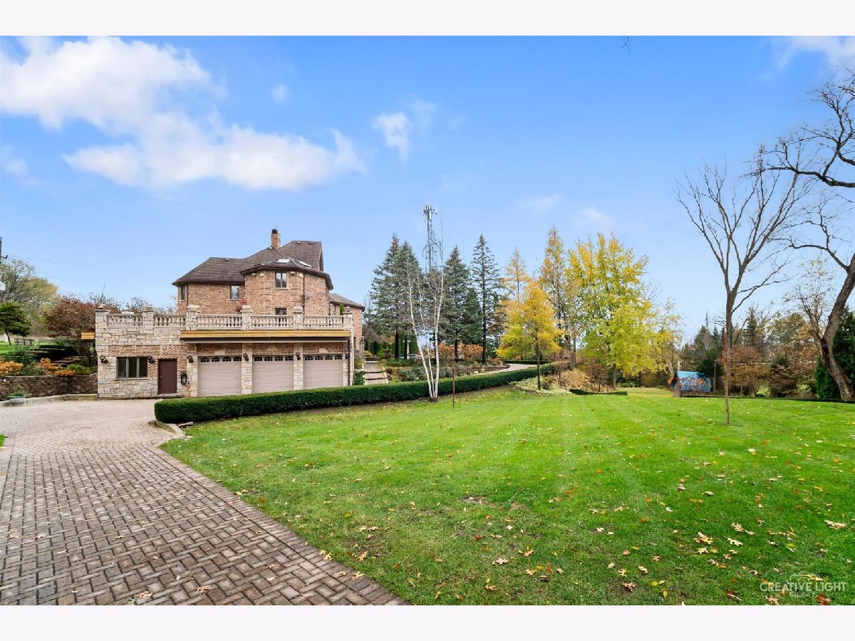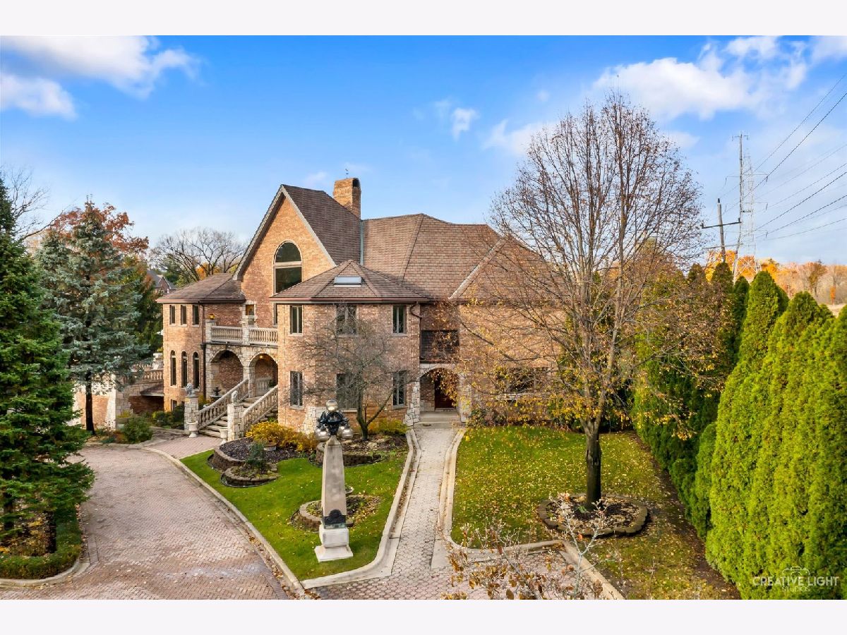 **Check out the VIRTUAL TOUR first by clicking the Virtual Tour tab** Past a forged gate & nestled in a wood far, far away from all the woes of the world, stands a stone & brick fortress high & majestic in all it's strong beauty & is perched atop nearly 2 acres of nature's favorite escapes. A turn here and a turn there & you've most likely found your new favorite hiding spot or secret garden w/ a pond or creek view. The same magic is found within... right beyond the french entry door, a 2 story double-sided stone fireplace that is flanked by double winder staircases lead to a long landing above. All but 2 of the home's bedrooms are also here, where the enormous skylit master suite boasts two walk-in closets w/ custom storage solutions and even has it's own laundry closet with stackables- so no more going up and down flights to wash! The expansive master bath hosts a skylight, a luxurious freestanding soaking tub, separated dual sinks, an exquiste make-up counter and walk-in shower. The additional three bedrooms (2 w/ updated private en suites) are ample with equally sized closets, and a balcony made for royalty is accessible from 2 of the south facing bedrooms. The main floor houses the 1st of 3 chef's kitchen (1 a kitchenette) with all the bells and whistle upgrades and updates, including a smart refrigerator, a wine chiller, a built-in corner breakfast nook w/ an island large enough to fit 5-6 stools with ease. There's a well desired 1st floor bedroom en suite and kitchenette! The living room shows off floor to ceiling windows while half of the ceiling soars to the second story to remind you that this fortresses grandeur can be found around every, single, corner. A door in between the living area and the kitchen invites you to go onto the 30'x20' 'Gatsby' terrace, where the fun and entertainmrent with a view to one of the courtyards below never ends... Lastly, no detail was spared in the beautifully designed walkout basement with it's own bedroom, laundry room, full bath, the 2nd chef's kitchen w/ it's abundunt island seating, a dining area and chilled out living area. It's truly a grand space for multigenerational living if that's something you seek- and if you aren't, it's an entertainer's dream! Finally, there's a basement recreation room upon entry from the circular brick paved drive. Near popular golf courses, Metra, interstate access, schools, parks, shopping and dining. This. Is. IT!!!