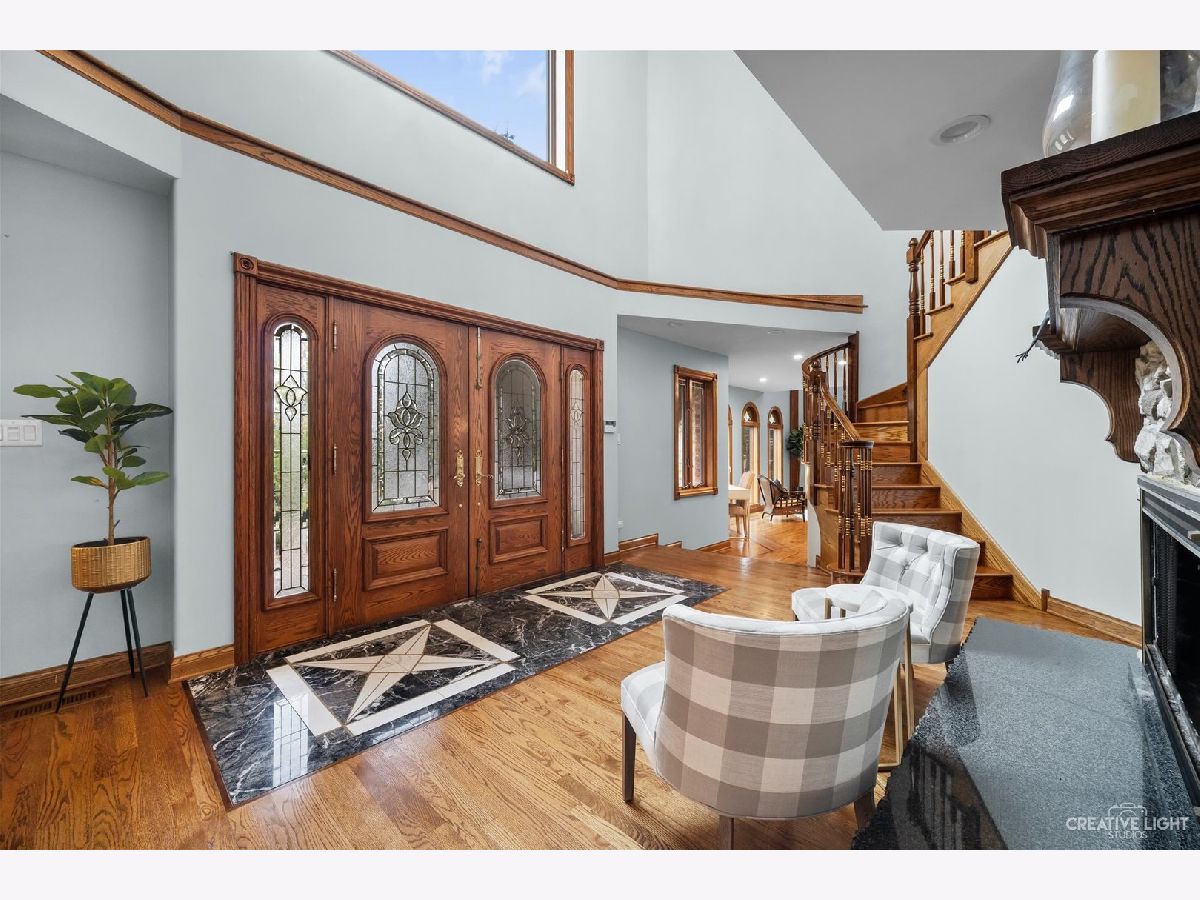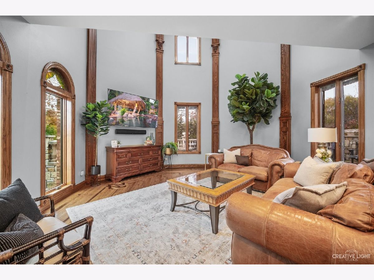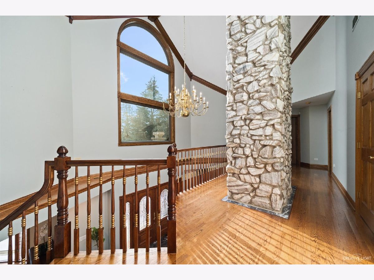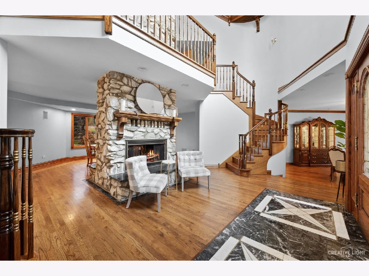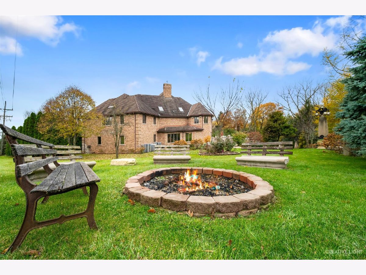 **Check out the VIRTUAL TOUR first by clicking the Virtual Tour tab** Past a forged gate & nestled in a wood far, far away from all the woes of the world, stands a stone & brick fortress high & majestic in all it's strong beauty & is perched atop nearly 2 acres of nature's favorite escapes. A turn here and a turn there & you've most likely found your new favorite hiding spot or secret garden w/ a pond or creek view. The same magic is found within... right beyond the french entry door, a 2 story double-sided stone fireplace that is flanked by double winder staircases lead to a long landing above. All but 2 of the home's bedrooms are also here, where the enormous skylit master suite boasts two walk-in closets w/ custom storage solutions and even has it's own laundry closet with stackables- so no more going up and down flights to wash! The expansive master bath hosts a skylight, a luxurious freestanding soaking tub, separated dual sinks, an exquiste make-up counter and walk-in shower. The additional three bedrooms (2 w/ updated private en suites) are ample with equally sized closets, and a balcony made for royalty is accessible from 2 of the south facing bedrooms. The main floor houses the 1st of 3 chef's kitchen (1 a kitchenette) with all the bells and whistle upgrades and updates, including a smart refrigerator, a wine chiller, a built-in corner breakfast nook w/ an island large enough to fit 5-6 stools with ease. There's a well desired 1st floor bedroom en suite and kitchenette! The living room shows off floor to ceiling windows while half of the ceiling soars to the second story to remind you that this fortresses grandeur can be found around every, single, corner. A door in between the living area and the kitchen invites you to go onto the 30'x20' 'Gatsby' terrace, where the fun and entertainmrent with a view to one of the courtyards below never ends... Lastly, no detail was spared in the beautifully designed walkout basement with it's own bedroom, laundry room, full bath, the 2nd chef's kitchen w/ it's abundunt island seating, a dining area and chilled out living area. It's truly a grand space for multigenerational living if that's something you seek- and if you aren't, it's an entertainer's dream! Finally, there's a basement recreation room upon entry from the circular brick paved drive. Near popular golf courses, Metra, interstate access, schools, parks, shopping and dining. This. Is. IT!!!