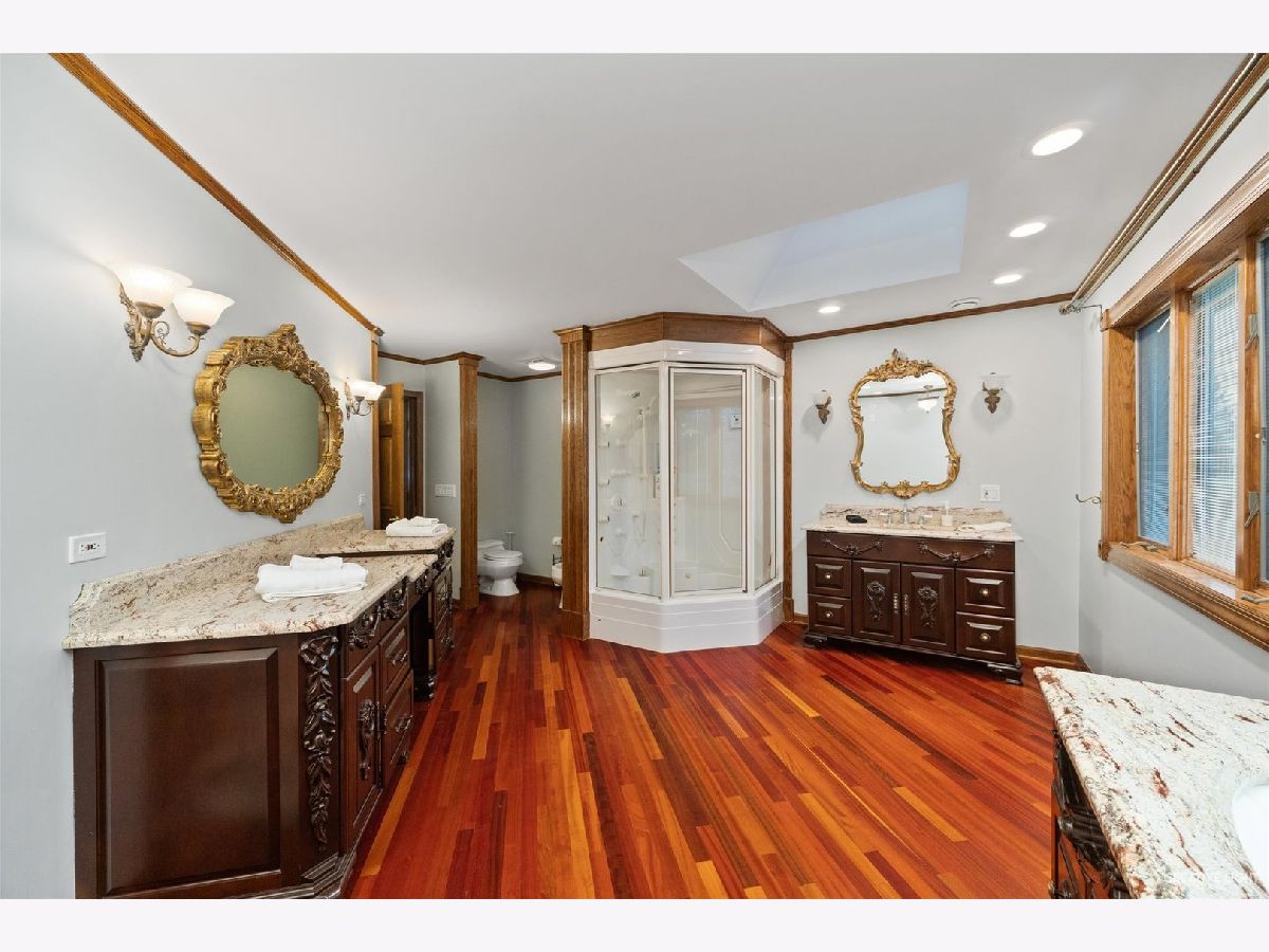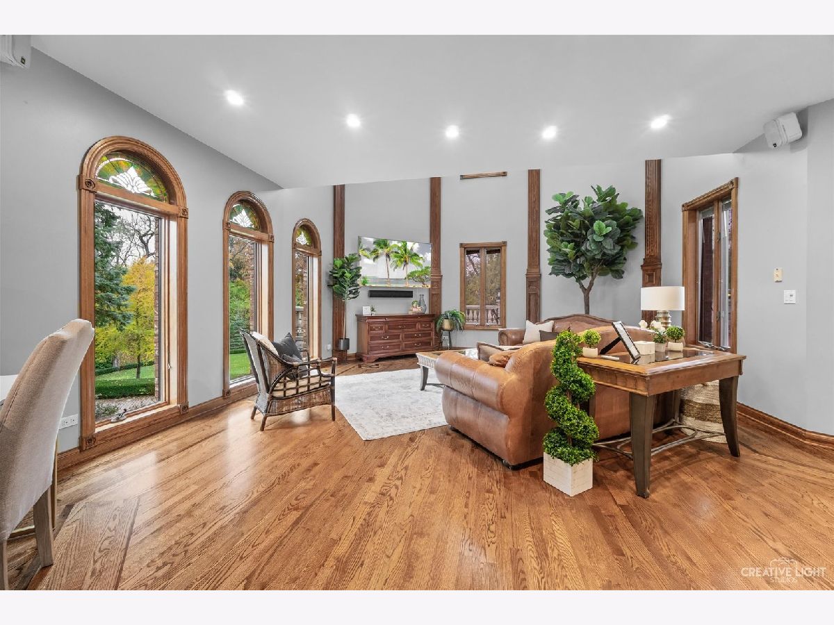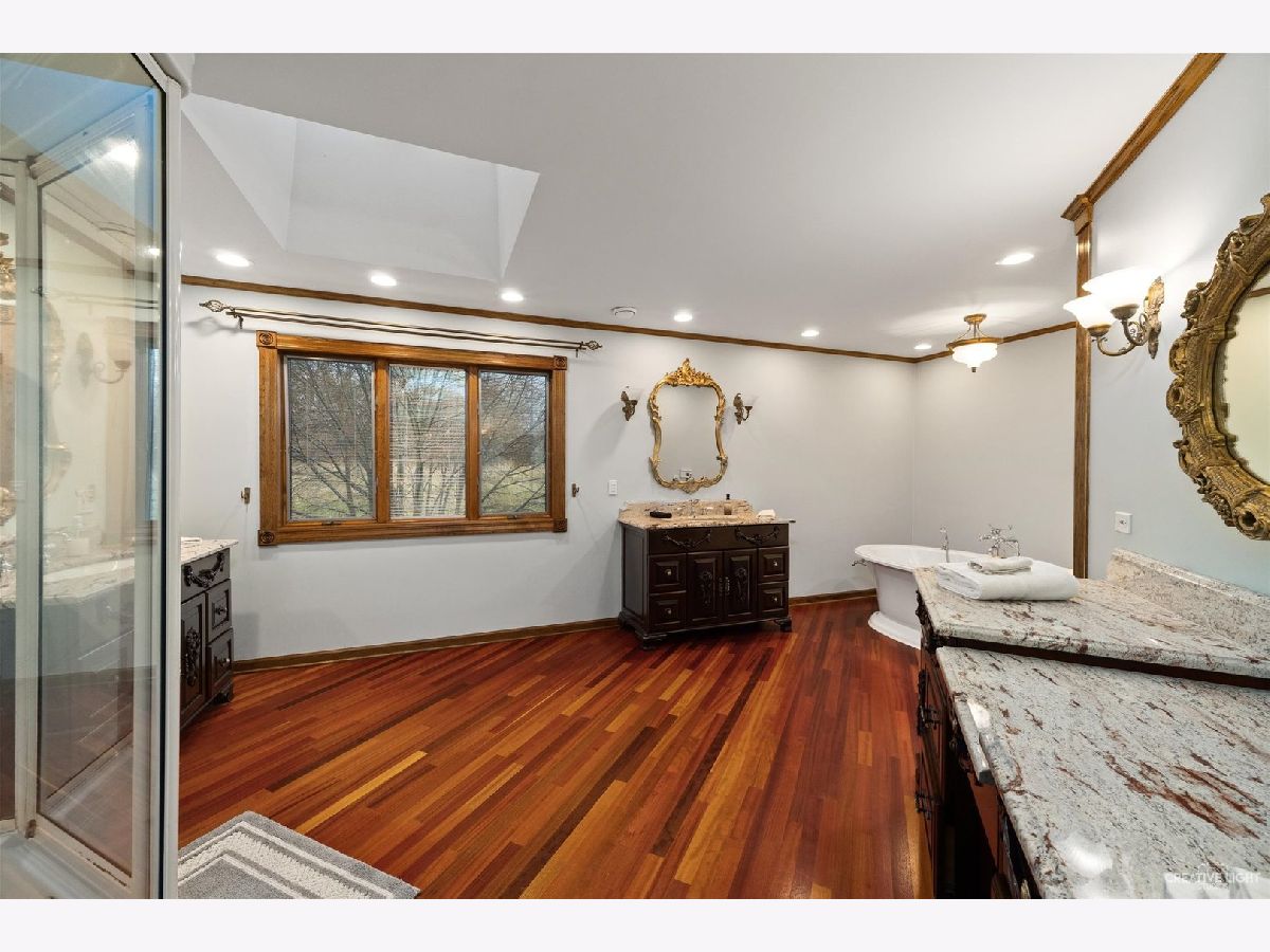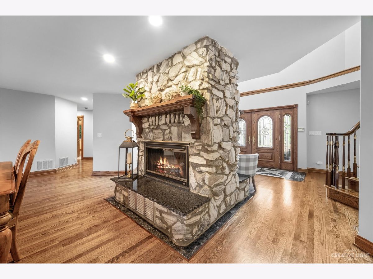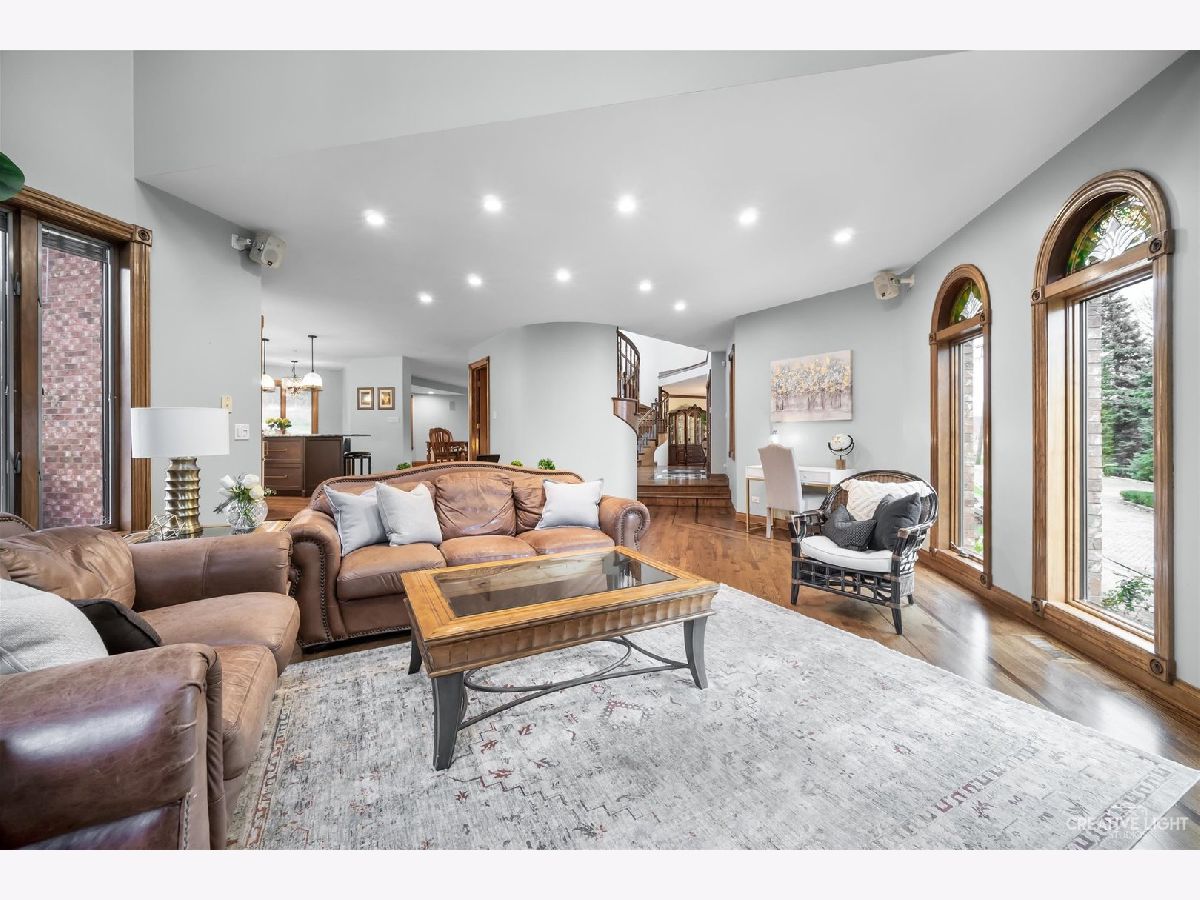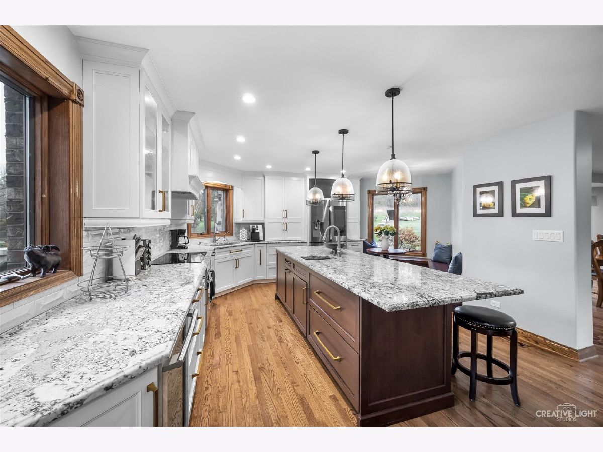 **Check out the VIRTUAL TOUR first by clicking the Virtual Tour tab** Past a forged gate & nestled in a wood far, far away from all the woes of the world, stands a stone & brick fortress high & majestic in all it's strong beauty & is perched atop nearly 2 acres of nature's favorite escapes. A turn here and a turn there & you've most likely found your new favorite hiding spot or secret garden w/ a pond or creek view. The same magic is found within... right beyond the french entry door, a 2 story double-sided stone fireplace that is flanked by double winder staircases lead to a long landing above. All but 2 of the home's bedrooms are also here, where the enormous skylit master suite boasts two walk-in closets w/ custom storage solutions and even has it's own laundry closet with stackables- so no more going up and down flights to wash! The expansive master bath hosts a skylight, a luxurious freestanding soaking tub, separated dual sinks, an exquiste make-up counter and walk-in shower. The additional three bedrooms (2 w/ updated private en suites) are ample with equally sized closets, and a balcony made for royalty is accessible from 2 of the south facing bedrooms. The main floor houses the 1st of 3 chef's kitchen (1 a kitchenette) with all the bells and whistle upgrades and updates, including a smart refrigerator, a wine chiller, a built-in corner breakfast nook w/ an island large enough to fit 5-6 stools with ease. There's a well desired 1st floor bedroom en suite and kitchenette! The living room shows off floor to ceiling windows while half of the ceiling soars to the second story to remind you that this fortresses grandeur can be found around every, single, corner. A door in between the living area and the kitchen invites you to go onto the 30'x20' 'Gatsby' terrace, where the fun and entertainmrent with a view to one of the courtyards below never ends... Lastly, no detail was spared in the beautifully designed walkout basement with it's own bedroom, laundry room, full bath, the 2nd chef's kitchen w/ it's abundunt island seating, a dining area and chilled out living area. It's truly a grand space for multigenerational living if that's something you seek- and if you aren't, it's an entertainer's dream! Finally, there's a basement recreation room upon entry from the circular brick paved drive. Near popular golf courses, Metra, interstate access, schools, parks, shopping and dining. This. Is. IT!!!