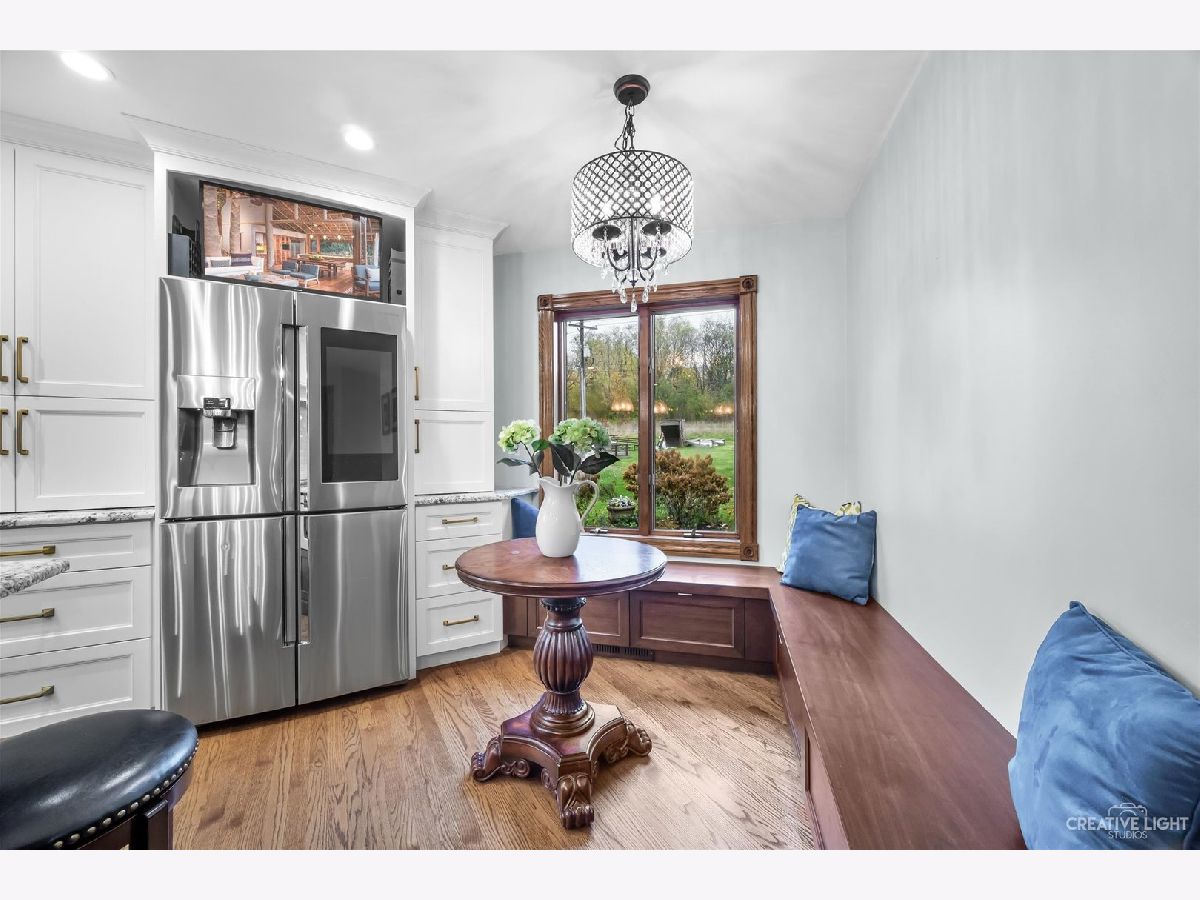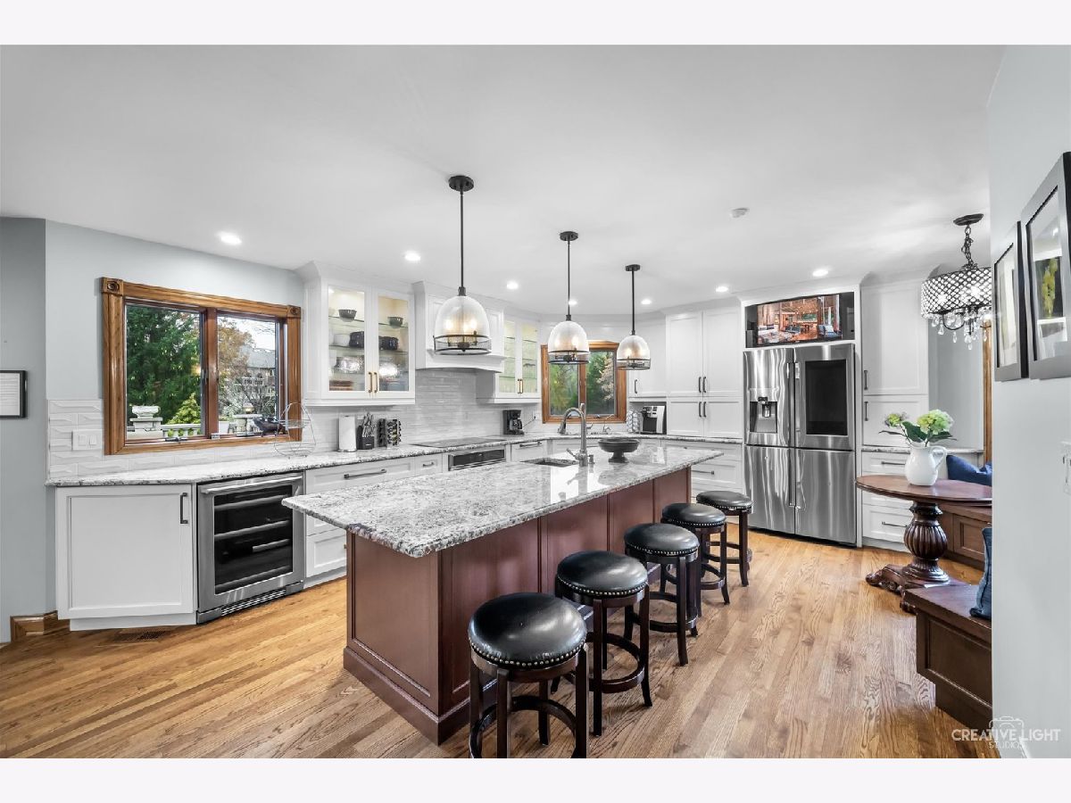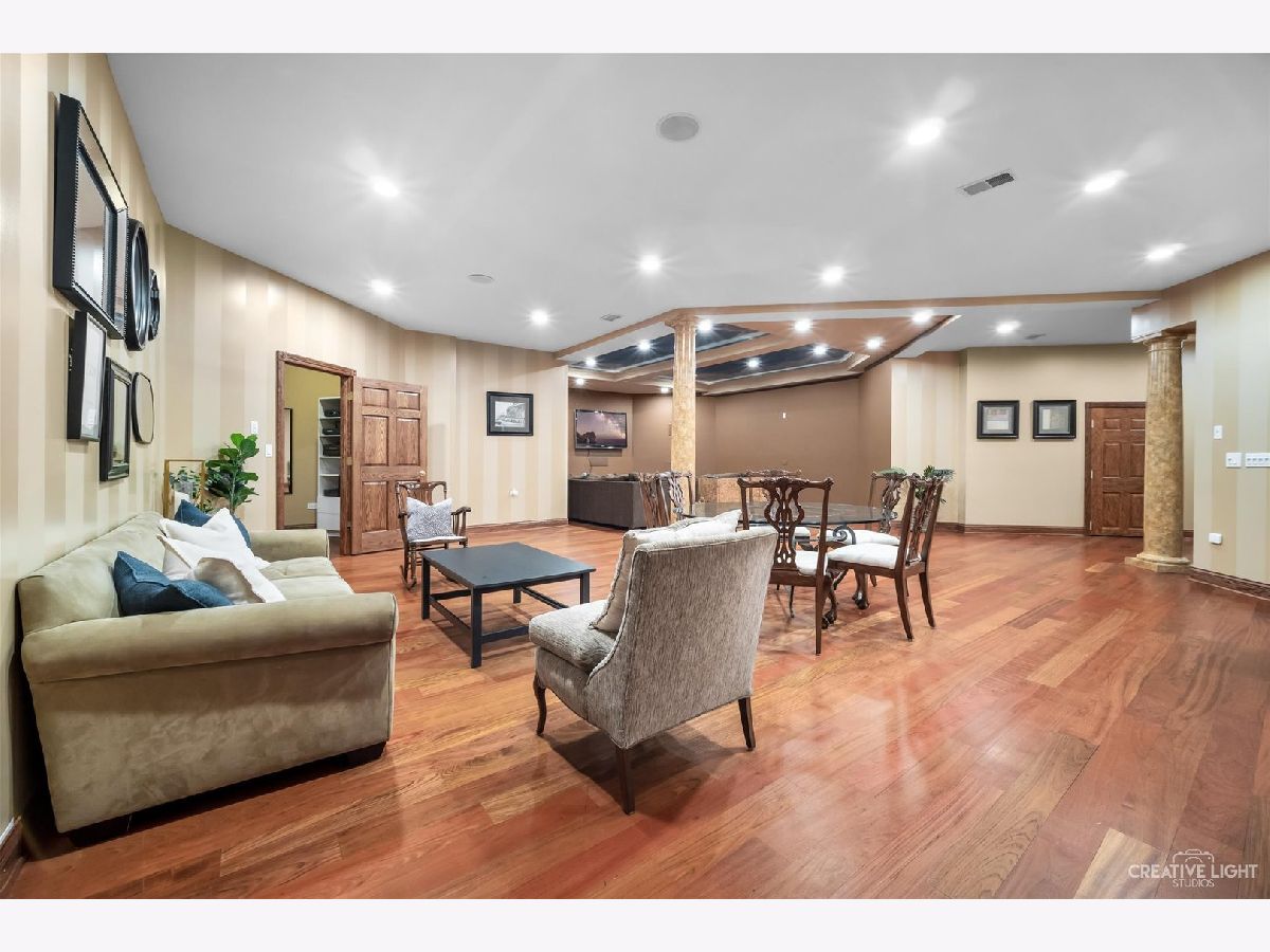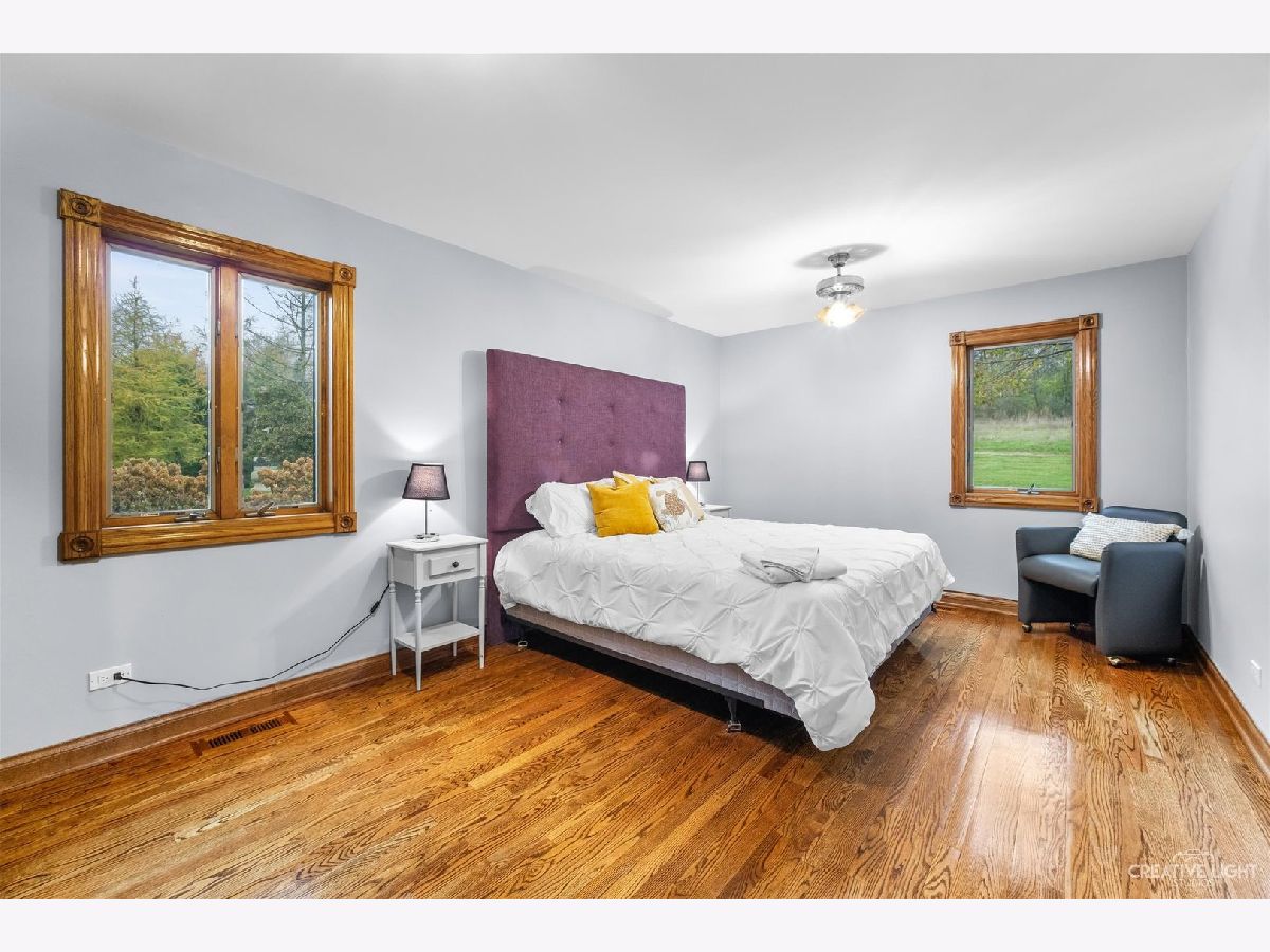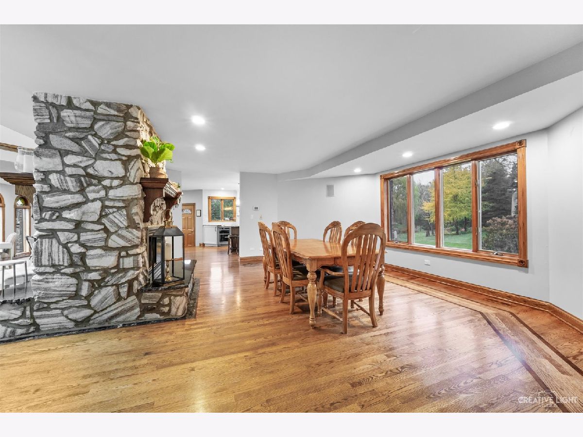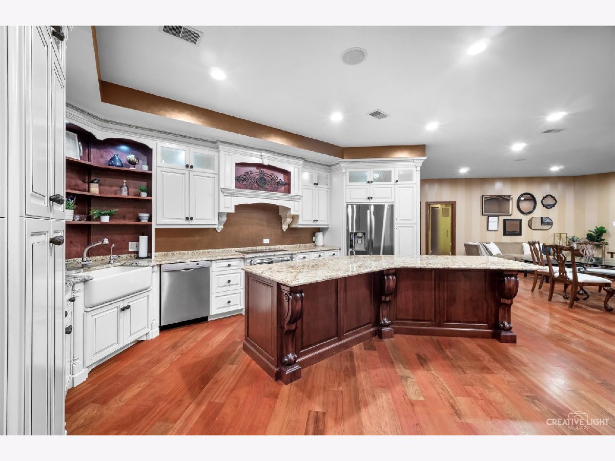 **Check out the VIRTUAL TOUR first by clicking the Virtual Tour tab** Past a forged gate & nestled in a wood far, far away from all the woes of the world, stands a stone & brick fortress high & majestic in all it's strong beauty & is perched atop nearly 2 acres of nature's favorite escapes. A turn here and a turn there & you've most likely found your new favorite hiding spot or secret garden w/ a pond or creek view. The same magic is found within... right beyond the french entry door, a 2 story double-sided stone fireplace that is flanked by double winder staircases lead to a long landing above. All but 2 of the home's bedrooms are also here, where the enormous skylit master suite boasts two walk-in closets w/ custom storage solutions and even has it's own laundry closet with stackables- so no more going up and down flights to wash! The expansive master bath hosts a skylight, a luxurious freestanding soaking tub, separated dual sinks, an exquiste make-up counter and walk-in shower. The additional three bedrooms (2 w/ updated private en suites) are ample with equally sized closets, and a balcony made for royalty is accessible from 2 of the south facing bedrooms. The main floor houses the 1st of 3 chef's kitchen (1 a kitchenette) with all the bells and whistle upgrades and updates, including a smart refrigerator, a wine chiller, a built-in corner breakfast nook w/ an island large enough to fit 5-6 stools with ease. There's a well desired 1st floor bedroom en suite and kitchenette! The living room shows off floor to ceiling windows while half of the ceiling soars to the second story to remind you that this fortresses grandeur can be found around every, single, corner. A door in between the living area and the kitchen invites you to go onto the 30'x20' 'Gatsby' terrace, where the fun and entertainmrent with a view to one of the courtyards below never ends... Lastly, no detail was spared in the beautifully designed walkout basement with it's own bedroom, laundry room, full bath, the 2nd chef's kitchen w/ it's abundunt island seating, a dining area and chilled out living area. It's truly a grand space for multigenerational living if that's something you seek- and if you aren't, it's an entertainer's dream! Finally, there's a basement recreation room upon entry from the circular brick paved drive. Near popular golf courses, Metra, interstate access, schools, parks, shopping and dining. This. Is. IT!!!