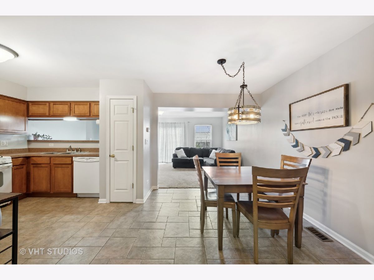 Beautiful Two Story Townhome in Crest Hill. Welcome inside to Warm Neutral Colors and Beautiful Tile Flooring through entryway, kitchen and dining area. Great Kitchen space with Pantry closet and passthrough ledge overlooking Family Room. Open dining area. Cozy carpeted Family room with Gas Fireplace and Patio Doors leading out to Brick Patio and Common greens. On the Second floor, a large (8x11) landing area with Two Bedrooms and 2nd floor Laundry! Spacious Primary bedroom with double closets. Wide Double sink vanity in bath. Bright second bedroom with deep closet. Attached 1-car garage with Epoxy Flooring. New A/C & Furnace in 2021. Interior painted in 2021. Private Entrance. Lockport Township HS boundary. Located off Weber Road. Close to highways, library, schools and shopping!