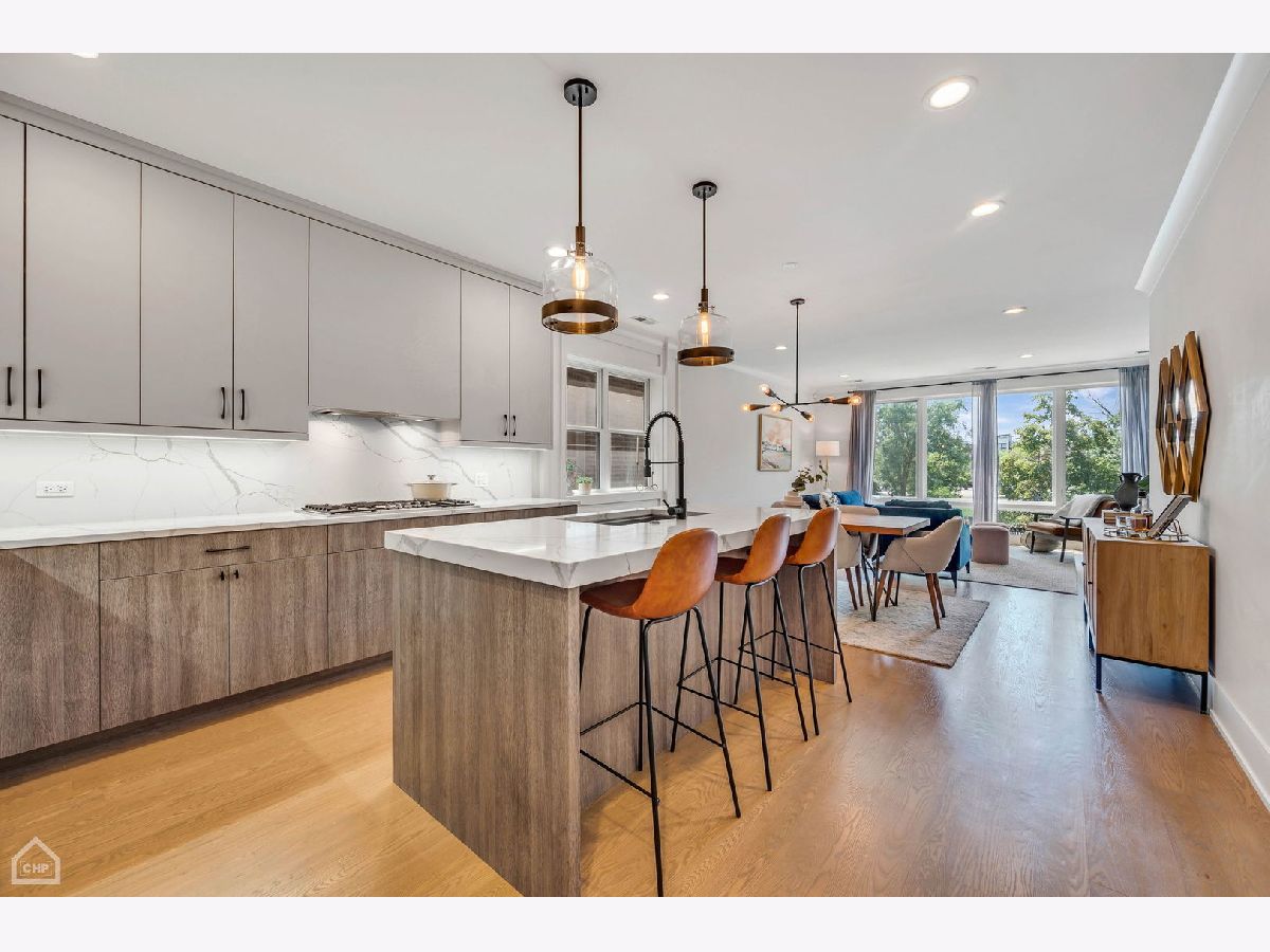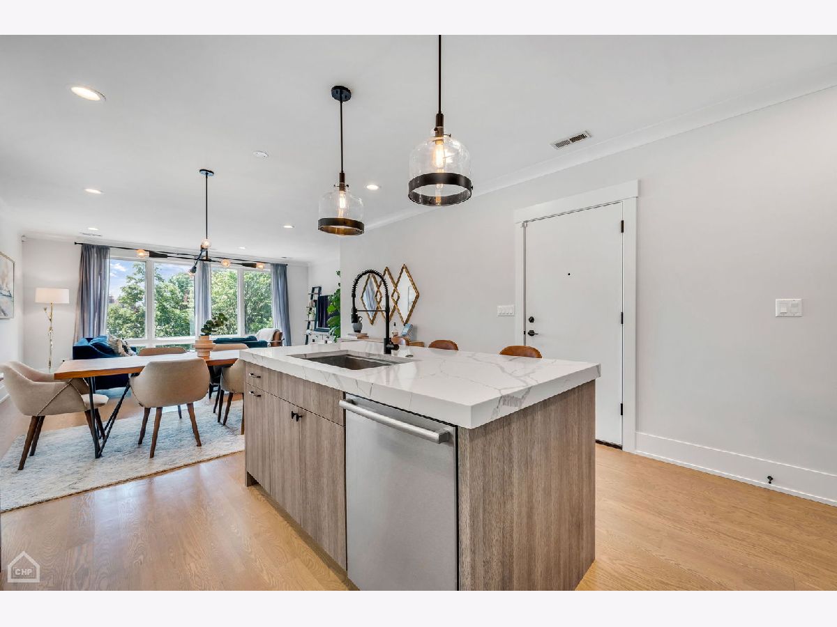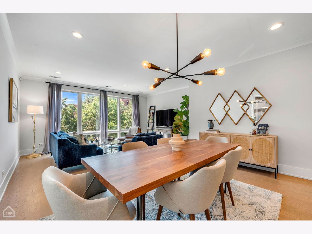 Welcome to 1462 W. Ohio #2, a sophisticated 2-bedroom, 2-bath condo located in the heart of Noble Square. This nearly new construction home, completed in 2020, provides contemporary luxury in an urban oasis, blending modern design with exceptional functionality. Spanning approximately 1,400 square feet, this is one of the largest 2-bedroom units in the area, allowing for both living and dining areas. The open-concept floor plan creates a seamless flow, making it perfect for entertaining or relaxing. The stylish interior features high ceilings, wide-plank hardwood flooring, custom millwork, and southern-facing floor-to-ceiling windows that offer a picturesque view of the park and fill the space with natural light. The gourmet kitchen showcases a paneled Bosch appliance package, 3" quartz countertops, a full slab backsplash, custom cabinetry, and a large island with room for seating. The spacious primary bedroom includes a professionally appointed walk-in closet, a spa-like en-suite bathroom with heated floors, dual vanities, and a glass-enclosed steam shower with a rain shower head and body sprays. Other conveniences include in-unit laundry, a private balcony off the rear, common storage, and a garage parking spot. Nestled in the vibrant Noble Square neighborhood, you're just steps from trendy restaurants, boutique shops, and lively entertainment and minutes away from the Fulton Market, Wicker Park, and West Loop neighborhoods. Easy access to public transportation and major highways makes commuting a breeze.
