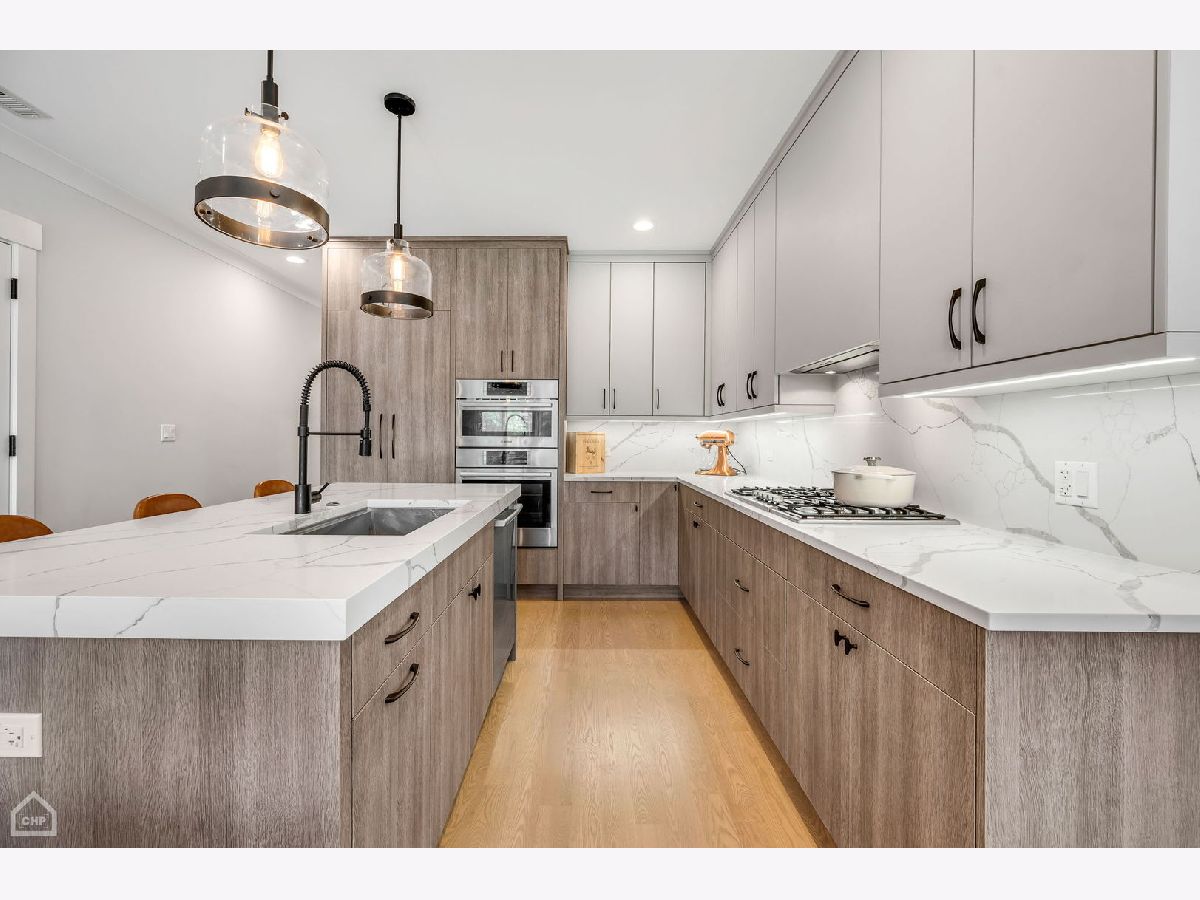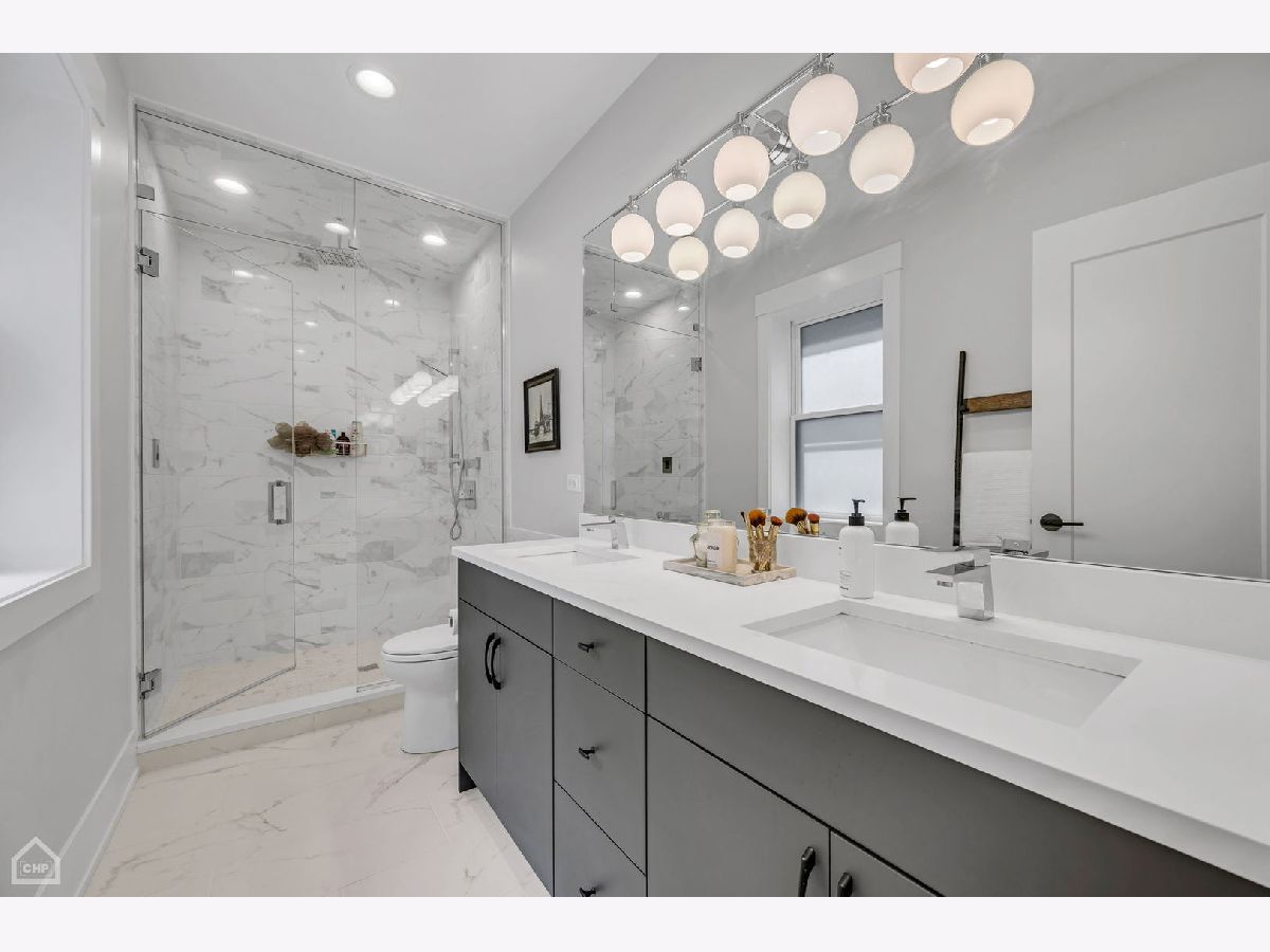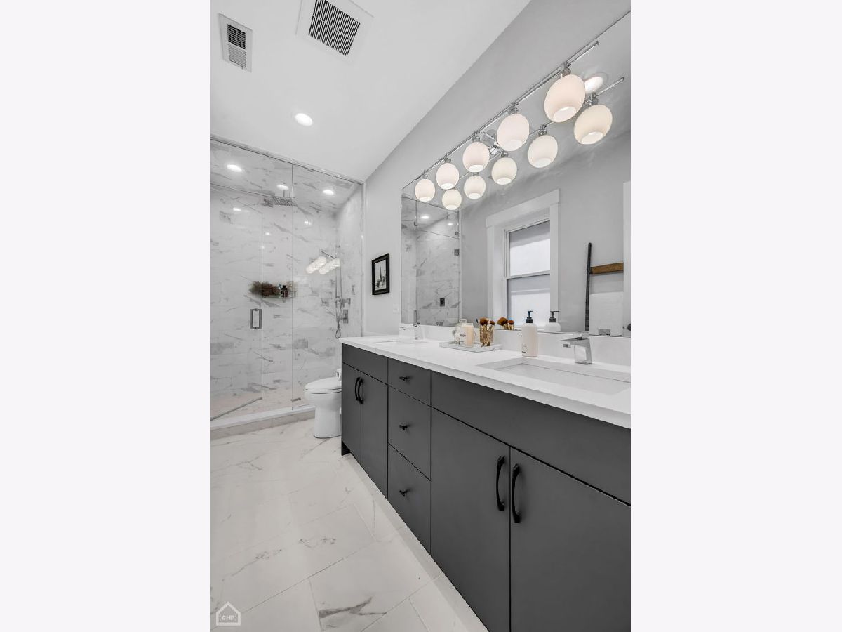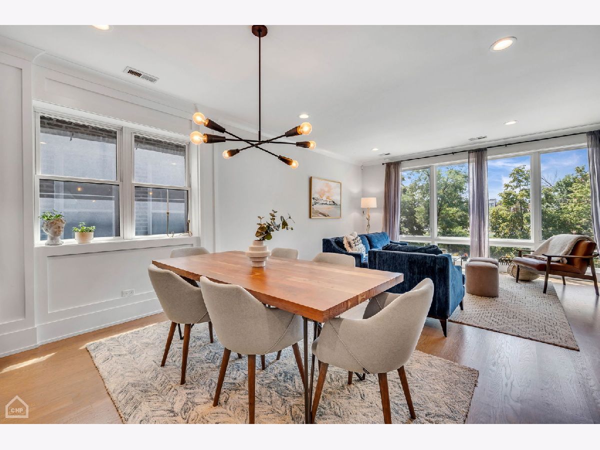 Welcome to 1462 W. Ohio #2, a sophisticated 2-bedroom, 2-bath condo located in the heart of Noble Square. This nearly new construction home, completed in 2020, provides contemporary luxury in an urban oasis, blending modern design with exceptional functionality. Spanning approximately 1,400 square feet, this is one of the largest 2-bedroom units in the area, allowing for both living and dining areas. The open-concept floor plan creates a seamless flow, making it perfect for entertaining or relaxing. The stylish interior features high ceilings, wide-plank hardwood flooring, custom millwork, and southern-facing floor-to-ceiling windows that offer a picturesque view of the park and fill the space with natural light. The gourmet kitchen showcases a paneled Bosch appliance package, 3" quartz countertops, a full slab backsplash, custom cabinetry, and a large island with room for seating. The spacious primary bedroom includes a professionally appointed walk-in closet, a spa-like en-suite bathroom with heated floors, dual vanities, and a glass-enclosed steam shower with a rain shower head and body sprays. Other conveniences include in-unit laundry, a private balcony off the rear, common storage, and a garage parking spot. Nestled in the vibrant Noble Square neighborhood, you're just steps from trendy restaurants, boutique shops, and lively entertainment and minutes away from the Fulton Market, Wicker Park, and West Loop neighborhoods. Easy access to public transportation and major highways makes commuting a breeze.