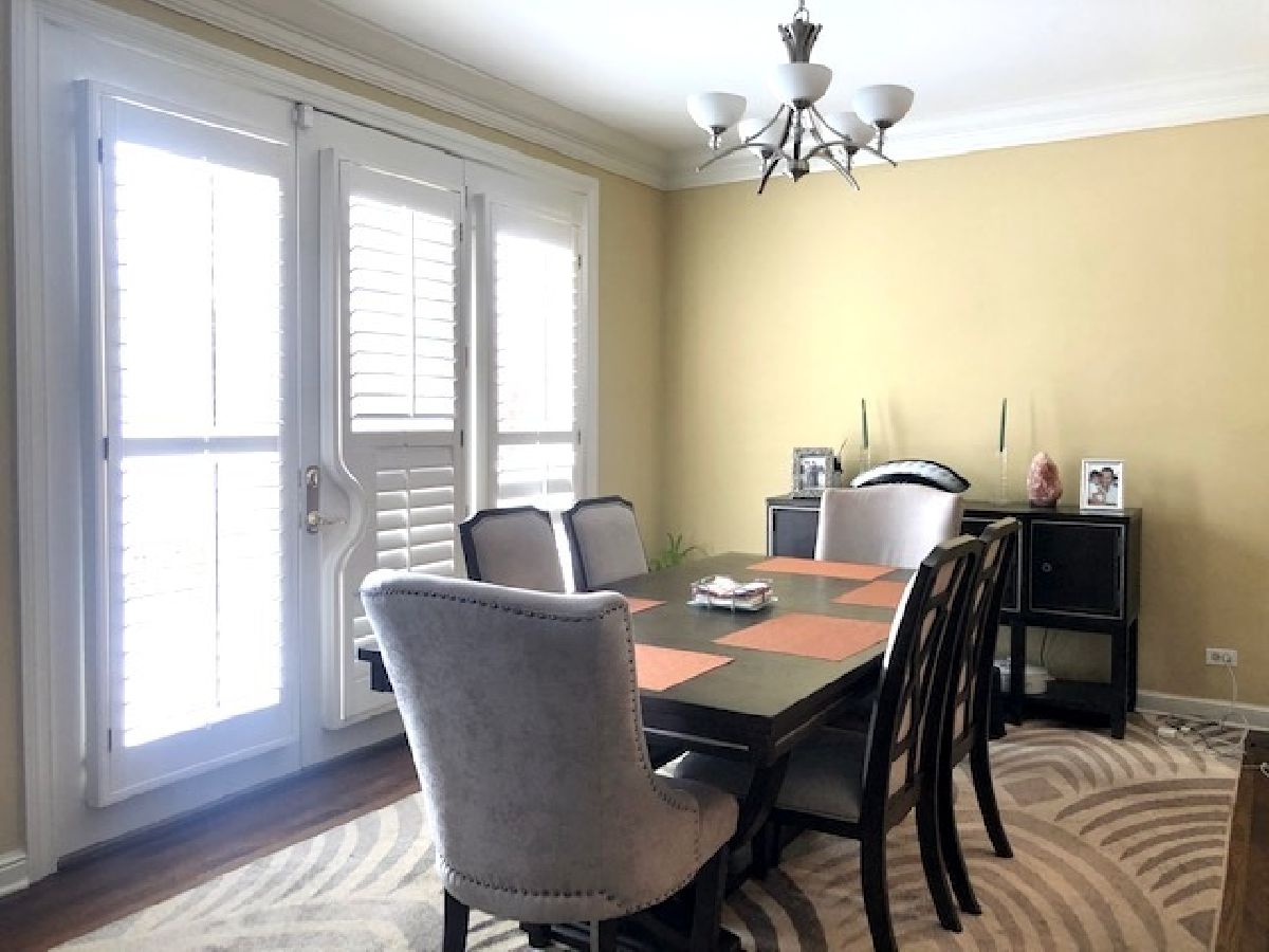 This beautifully designed townhouse in Ammer Woods has a freshly painted entry, bedrooms and bath. The impressive volume foyer leads to an expansive living room with cove ceiling, ornate lighting, woodburning/gas fireplace. Oak flooring and dramatic plantation blinds complete the look, in a soothing color palate. The gourmet kitchen will wow you! Fully remodeled in '14, it has tall custom cabinetry, work space island, granite counters and designer appliances. Elegant craftsman staircase leads to 3 large bedrooms and full bath. The master boasts vaulted ceiling, custom blinds, walk-in closet, hardwood floors and custom bookcase entry to a private luxury bath. Finished lower level with full spa bath, dry bar, two huge storage rooms and laundry. Brand new water heater. New carpeting in the bsmt. A short distance to shopping downtown or at The Glen; near schools, restaurants, parks, the interstate and O'Hare. Located away from the hustle bustle yet close to everything.