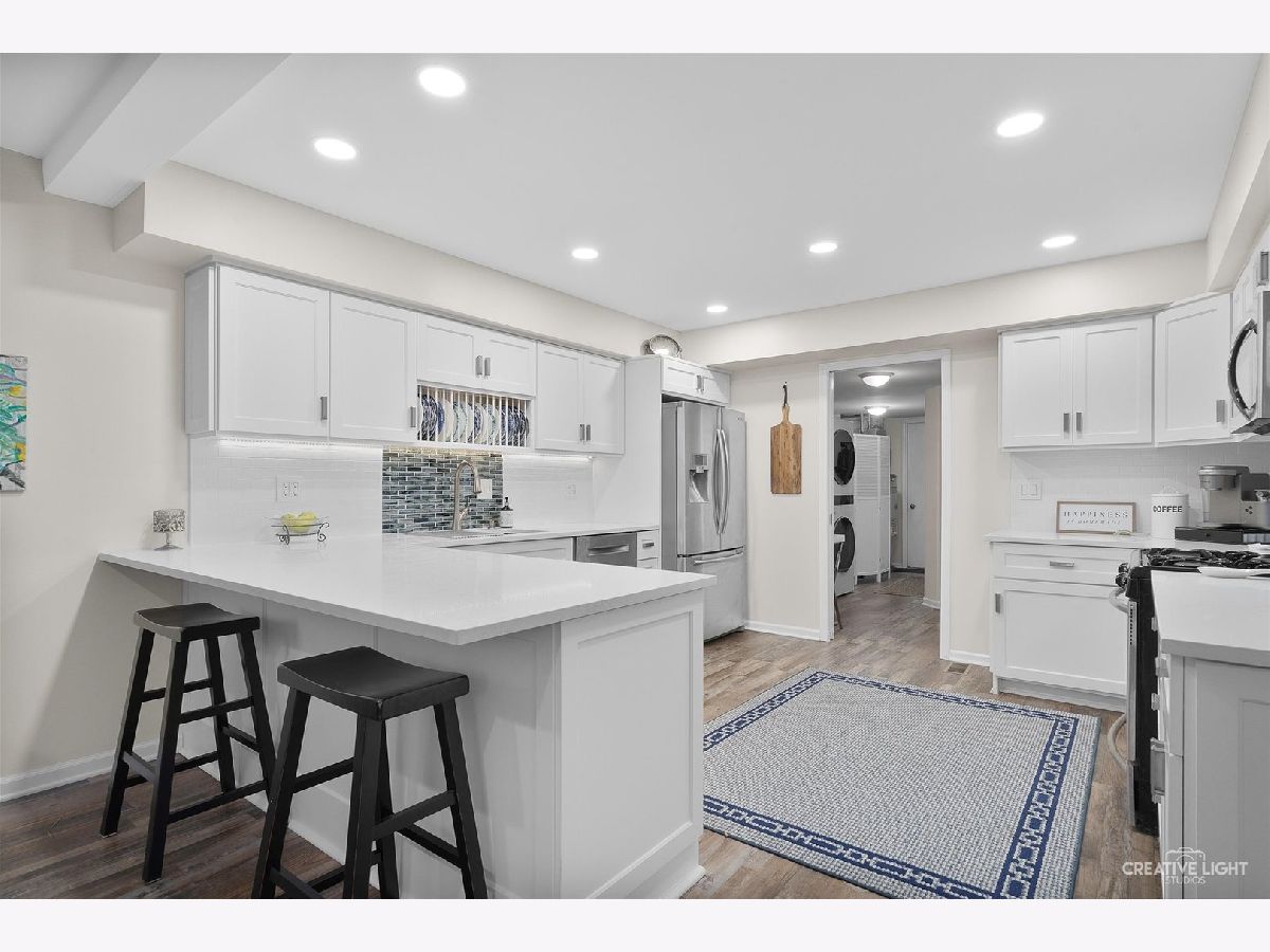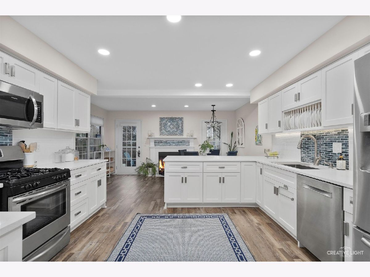 Located in the popular Georgetown community, this beauty is a must see! With so many updates there is absolutely nothing to do but move in and enjoy! This gorgeous 3 bedroom, 2 1/2 bath townhome is a show-stopper! Walk into a dramatic two-story family room with a striking accent wall and huge windows looking out towards the private patio and peaceful POND view. New durable flooring throughout the main area leads you to a stunning kitchen that you will love to cook and entertain in! Completely remodeled in 2021 the incredible eat-in kitchen features; a plethora of new custom white cabinets with soft close and beautiful hardware, quartz countertops, classic backsplash, newer appliances and a huge peninsula with extra seating. The eat-in area has a cozy gas/wood fireplace and more large windows that let all the natural light pour in. The main floor also features a remodeled powder room with a new vanity, a front room that can be used for dining, sitting or office space and a laundry/mudroom off the 2 car attached garage. Make your way to the second level to find 3 spacious bedrooms, a hall bath and master suite with its own private bath, high ceilings and walk-in closet. You will fall in love with the beautiful master bath that was completely remodeled and updated in 2021 with new flooring, new double sink/vanities, extra cabinets and a walk-in shower. Fresh new paint throughout the entire home in bright pretty neutrals. This fantastic property also features an oversized driveway that can easily fit 4 cars and a lot of visitor parking. All new interior doors and light fixtures throughout home. New AC in 2022. New furnace motor in 2023. New Washer/Dryer only 4 months old.Water softener stays and is owned. Roof is less than 5 years old. The Georgetown Community offers maintenance free living, including lawn care, exterior maintenance, and snow removal. Walking distance to Saratoga Park, schools and shopping!