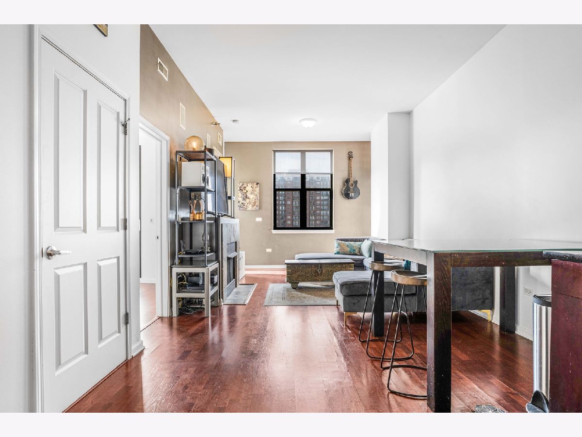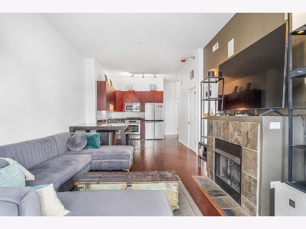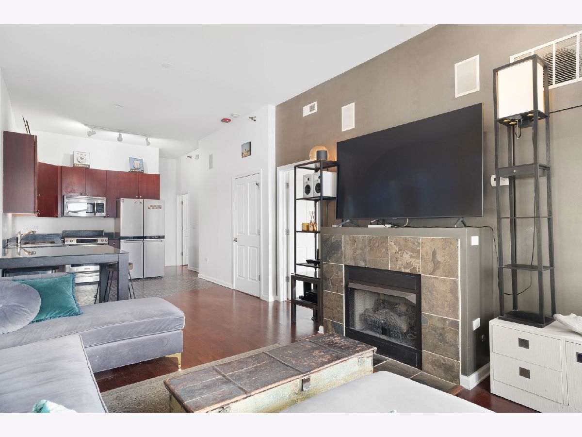 Incredible opportunity for 2 bedroom condo that offers separately 2 deeded parking spaces and each spot fits 2 cars = 4 garage parking spaces - one tandem spot plus side by side! Prime South Loop Location - Close to the lake, restaurants, grocery stores, shops, and more! This condo features tall ceilings, beautiful dark wood floors, 42" cherry cabinets, granite countertops, and stainless steel appliances, including an upgraded KitchenAid stove. Enjoy built-in speakers, a slate-surround fireplace, and an in-unit washer/dryer, high end custom tile in kitchen. Lake views from 2nd bedroom. Additional highlights include a private balcony with west views!