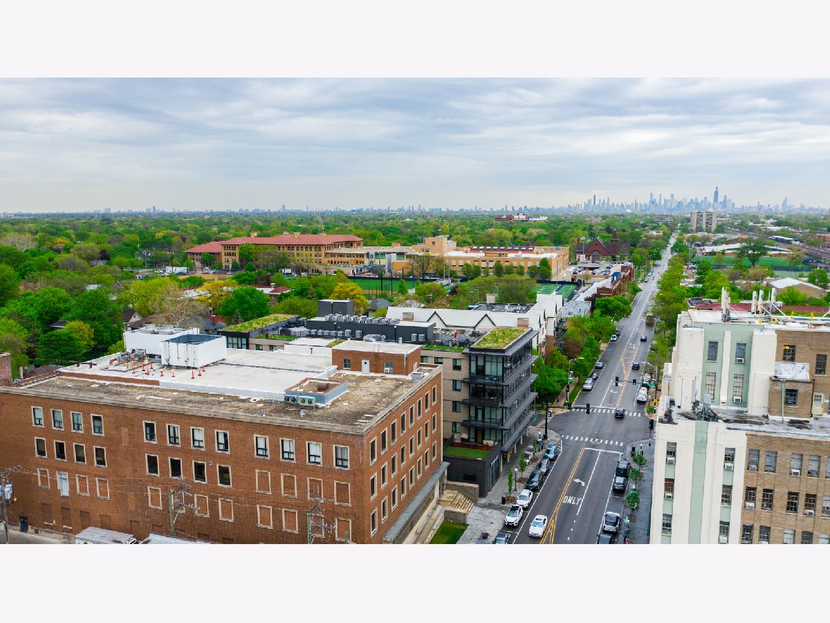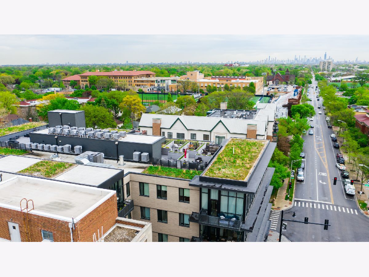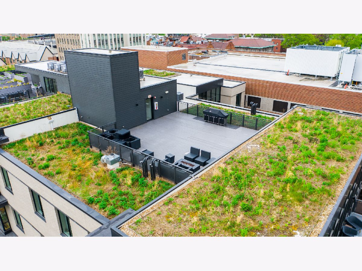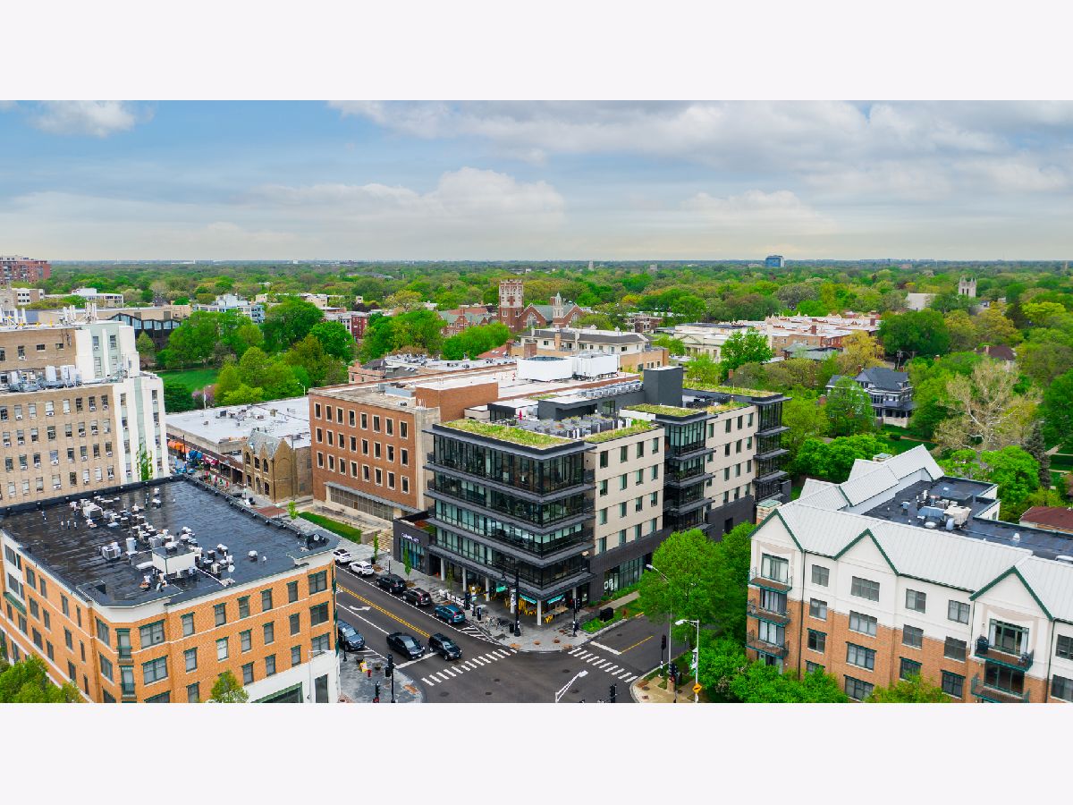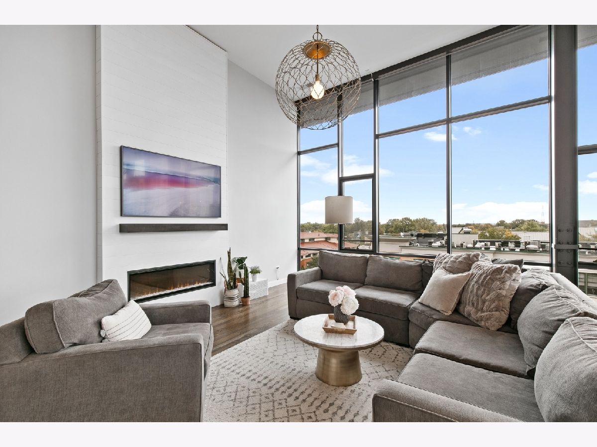 Live on the TOP Floor of this LEED certified GOLD building --with soaring 14' ceilings (versus 10) and floor to ceiling windows with unobstructed and near-panoramic city views! 5th floor owners are entitled to enjoy a private outdoor living space on 6th floor Green ECO Roof, access just steps away from the unit. This rarely available and impeccably designed 3 bed/2.1 bath plus den is located in the SW corner of building. Experience great flow with the open concept design and bonus den/flex space with built-in work station (add a sleeper sofa for overnight guests). The fully equipped chefs kitchen has Bosch and Fisher Pakel appliances and a beautiful white quartz island. Watch the sun set on the generous west facing balcony adjacent to kitchen. This unit was upgraded with custom accoutrements including taller cabinets, an urban enclosed gas fireplace, framed Sony TV,custom fixtures, built-in Closet Works cabinetry, wine fridge, pull out microwave drawer and custom motorized gray woven shades -- perfect to provide privacy when needed. The primary en suite with walk-in closet will be your respite at days end with a bathroom tastefully adorned with gray glazed tile. Two additional bedrooms are cozy yet sizable, also featuring custom closets. Walnut stained wood flooring runs seamlessly throughout the unit. Utility room, storage and laundry with Electrolux washer and dryer are concealed in hallway. One owned garage spot is included and a second space is offered for an additional $15,000. This 2017 Modernist luxury building is at the center of all things Oak Park and short commute to Chicago--close to Green Line, schools, shops and eateries.