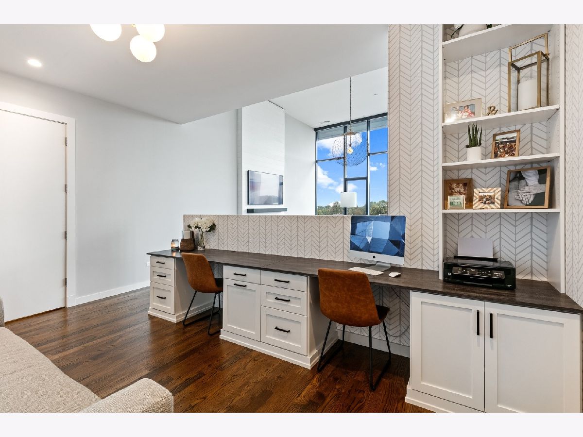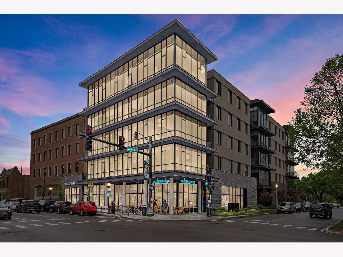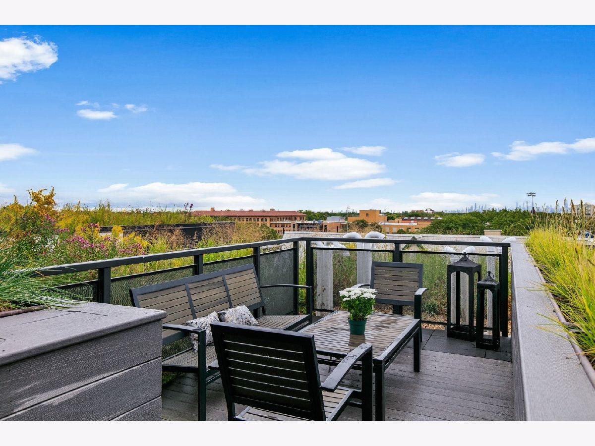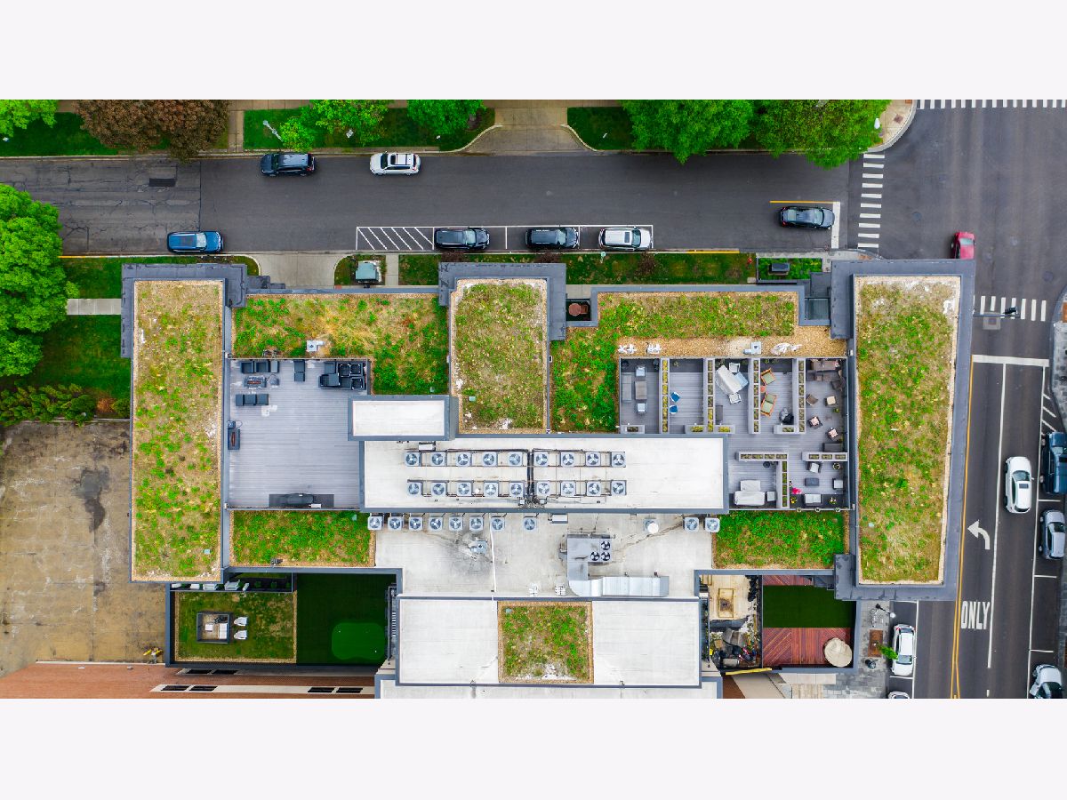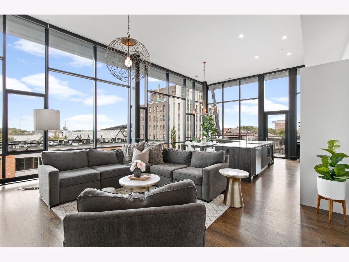Live on the TOP Floor of this LEED certified GOLD building --with soaring 14' ceilings (versus 10) and floor to ceiling windows with unobstructed and near-panoramic city views! 5th floor owners are entitled to enjoy a private outdoor living space on 6th floor Green ECO Roof, access just steps away from the unit. This rarely available and impeccably designed 3 bed/2.1 bath plus den is located in the SW corner of building. Experience great flow with the open concept design and bonus den/flex space with built-in work station (add a sleeper sofa for overnight guests). The fully equipped chefs kitchen has Bosch and Fisher Pakel appliances and a beautiful white quartz island. Watch the sun set on the generous west facing balcony adjacent to kitchen. This unit was upgraded with custom accoutrements including taller cabinets, an urban enclosed gas fireplace, framed Sony TV,custom fixtures, built-in Closet Works cabinetry, wine fridge, pull out microwave drawer and custom motorized gray woven shades -- perfect to provide privacy when needed. The primary en suite with walk-in closet will be your respite at days end with a bathroom tastefully adorned with gray glazed tile. Two additional bedrooms are cozy yet sizable, also featuring custom closets. Walnut stained wood flooring runs seamlessly throughout the unit. Utility room, storage and laundry with Electrolux washer and dryer are concealed in hallway. One owned garage spot is included and a second space is offered for an additional $15,000. This 2017 Modernist luxury building is at the center of all things Oak Park and short commute to Chicago--close to Green Line, schools, shops and eateries.