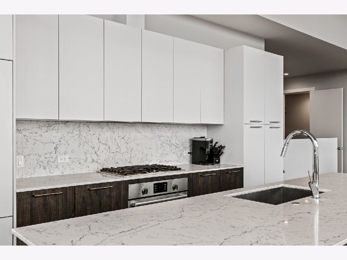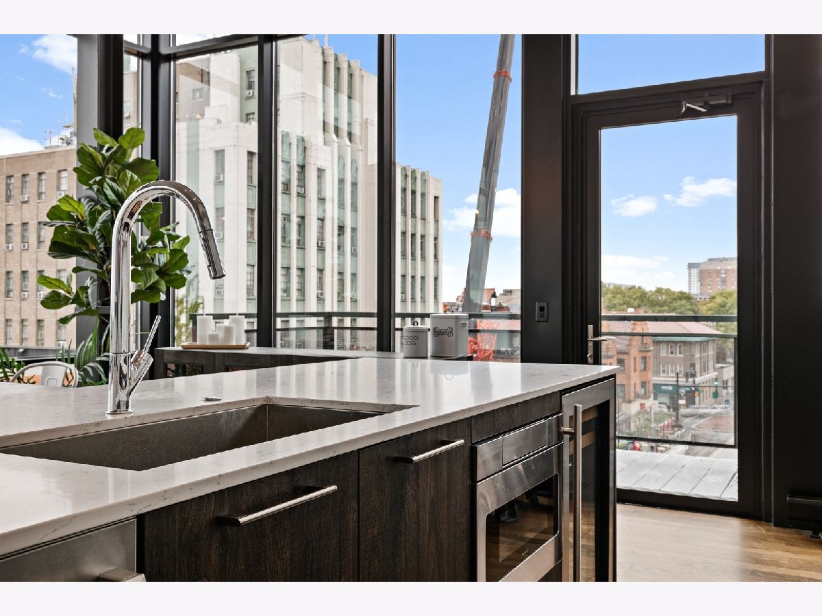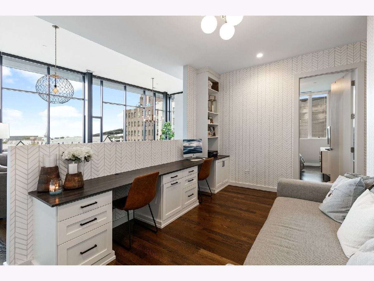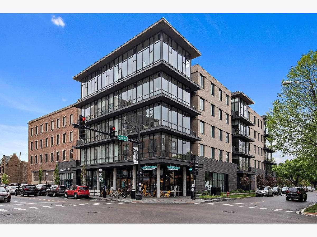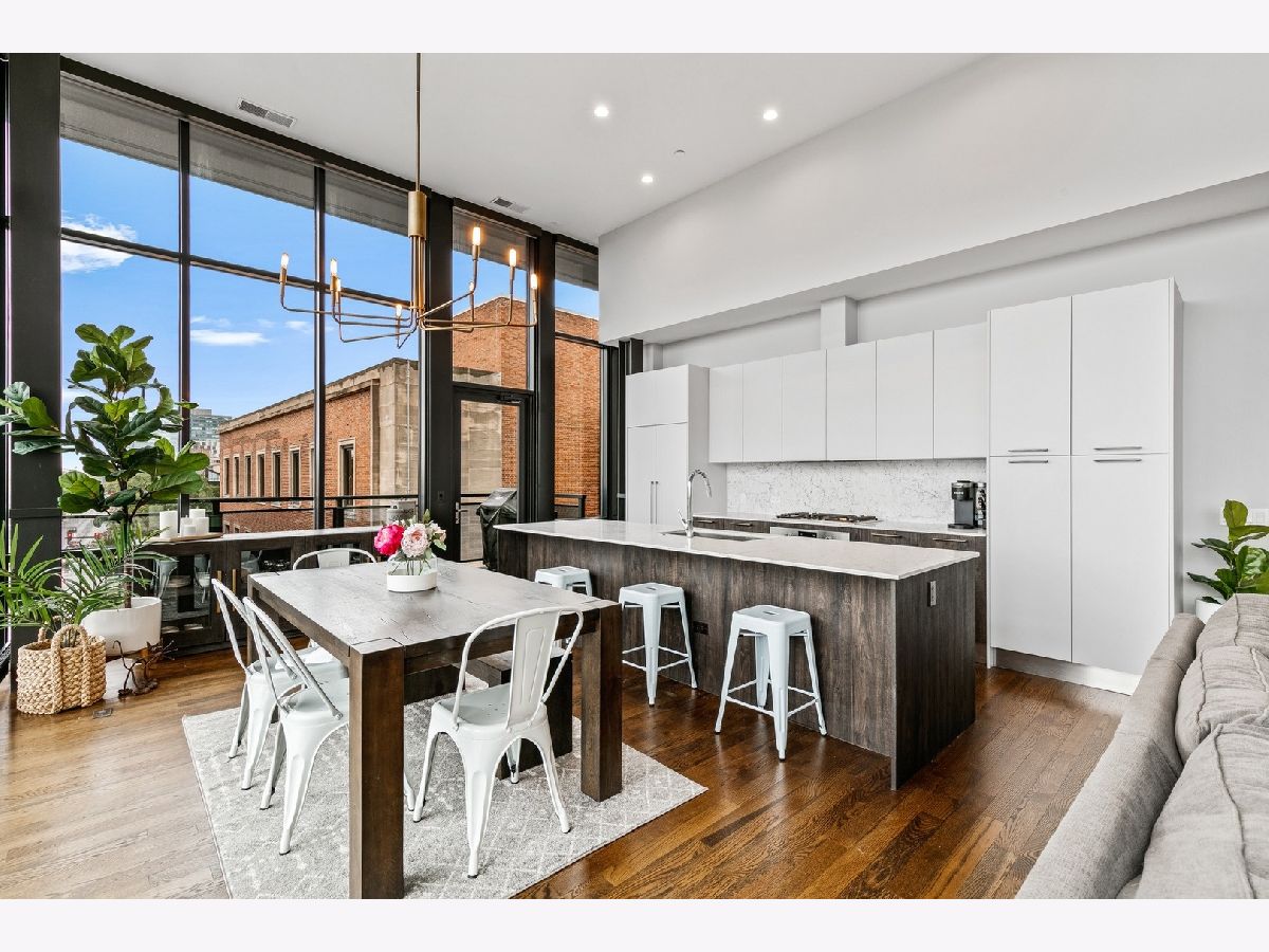 Live on the TOP Floor of this LEED certified GOLD building --with soaring 14' ceilings (versus 10) and floor to ceiling windows with unobstructed and near-panoramic city views! 5th floor owners are entitled to enjoy a private outdoor living space on 6th floor Green ECO Roof, access just steps away from the unit. This rarely available and impeccably designed 3 bed/2.1 bath plus den is located in the SW corner of building. Experience great flow with the open concept design and bonus den/flex space with built-in work station (add a sleeper sofa for overnight guests). The fully equipped chefs kitchen has Bosch and Fisher Pakel appliances and a beautiful white quartz island. Watch the sun set on the generous west facing balcony adjacent to kitchen. This unit was upgraded with custom accoutrements including taller cabinets, an urban enclosed gas fireplace, framed Sony TV,custom fixtures, built-in Closet Works cabinetry, wine fridge, pull out microwave drawer and custom motorized gray woven shades -- perfect to provide privacy when needed. The primary en suite with walk-in closet will be your respite at days end with a bathroom tastefully adorned with gray glazed tile. Two additional bedrooms are cozy yet sizable, also featuring custom closets. Walnut stained wood flooring runs seamlessly throughout the unit. Utility room, storage and laundry with Electrolux washer and dryer are concealed in hallway. One owned garage spot is included and a second space is offered for an additional $15,000. This 2017 Modernist luxury building is at the center of all things Oak Park and short commute to Chicago--close to Green Line, schools, shops and eateries.