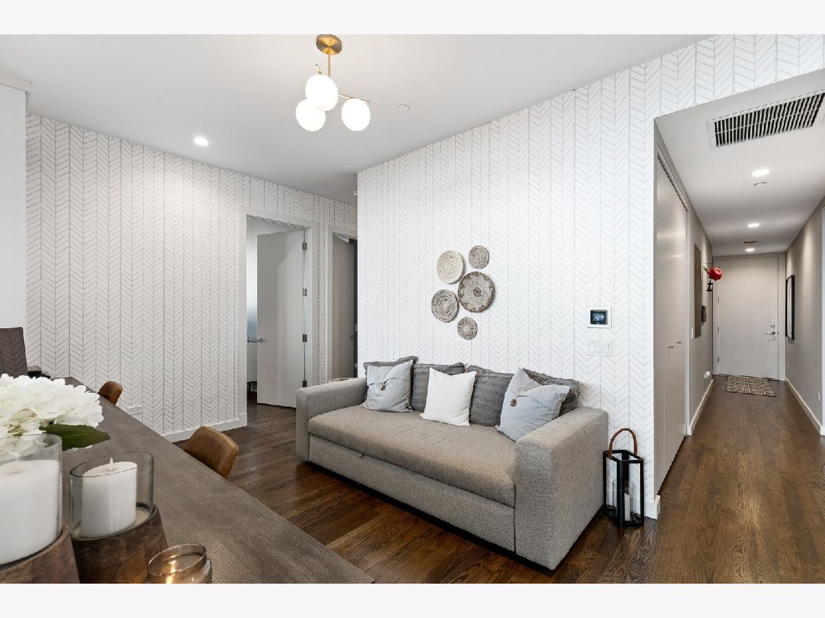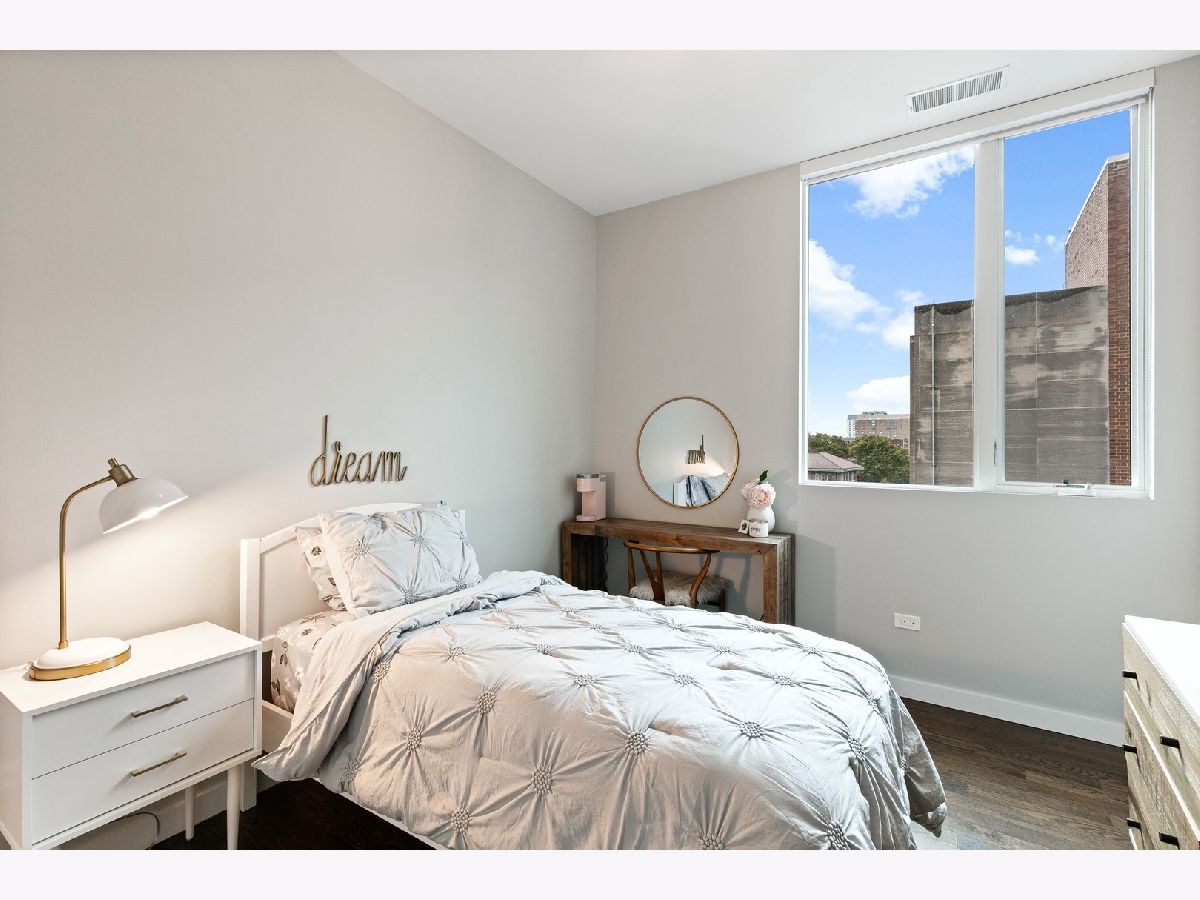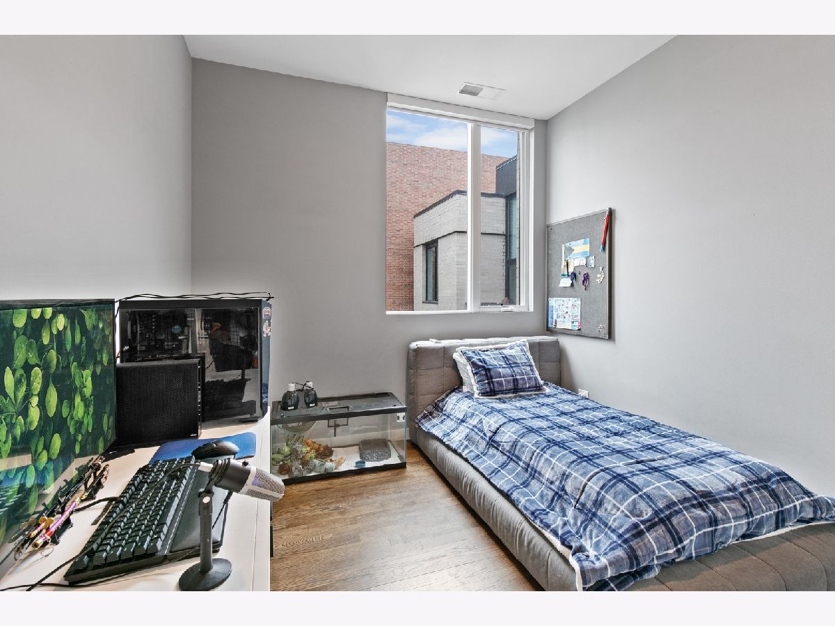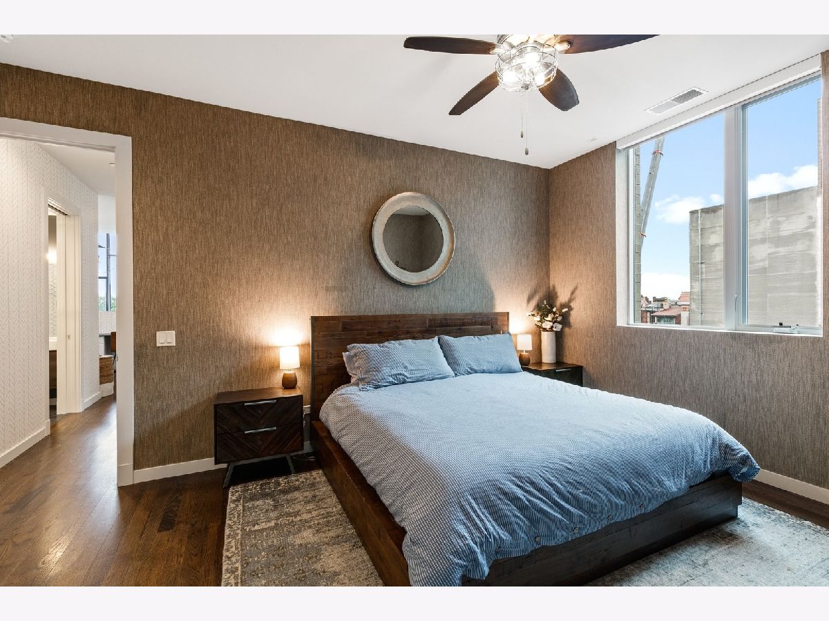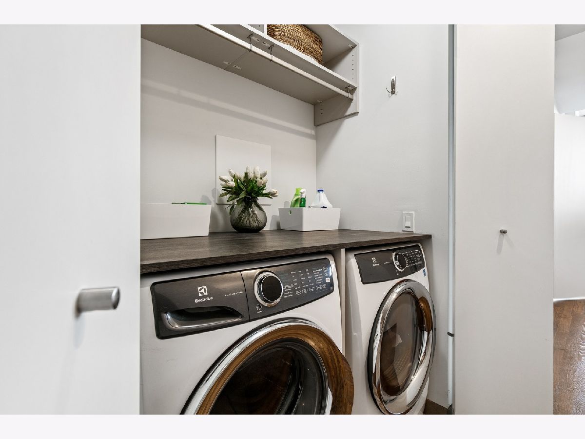 Live on the TOP Floor of this LEED certified GOLD building --with soaring 14' ceilings (versus 10) and floor to ceiling windows with unobstructed and near-panoramic city views! 5th floor owners are entitled to enjoy a private outdoor living space on 6th floor Green ECO Roof, access just steps away from the unit. This rarely available and impeccably designed 3 bed/2.1 bath plus den is located in the SW corner of building. Experience great flow with the open concept design and bonus den/flex space with built-in work station (add a sleeper sofa for overnight guests). The fully equipped chefs kitchen has Bosch and Fisher Pakel appliances and a beautiful white quartz island. Watch the sun set on the generous west facing balcony adjacent to kitchen. This unit was upgraded with custom accoutrements including taller cabinets, an urban enclosed gas fireplace, framed Sony TV,custom fixtures, built-in Closet Works cabinetry, wine fridge, pull out microwave drawer and custom motorized gray woven shades -- perfect to provide privacy when needed. The primary en suite with walk-in closet will be your respite at days end with a bathroom tastefully adorned with gray glazed tile. Two additional bedrooms are cozy yet sizable, also featuring custom closets. Walnut stained wood flooring runs seamlessly throughout the unit. Utility room, storage and laundry with Electrolux washer and dryer are concealed in hallway. One owned garage spot is included and a second space is offered for an additional $15,000. This 2017 Modernist luxury building is at the center of all things Oak Park and short commute to Chicago--close to Green Line, schools, shops and eateries.