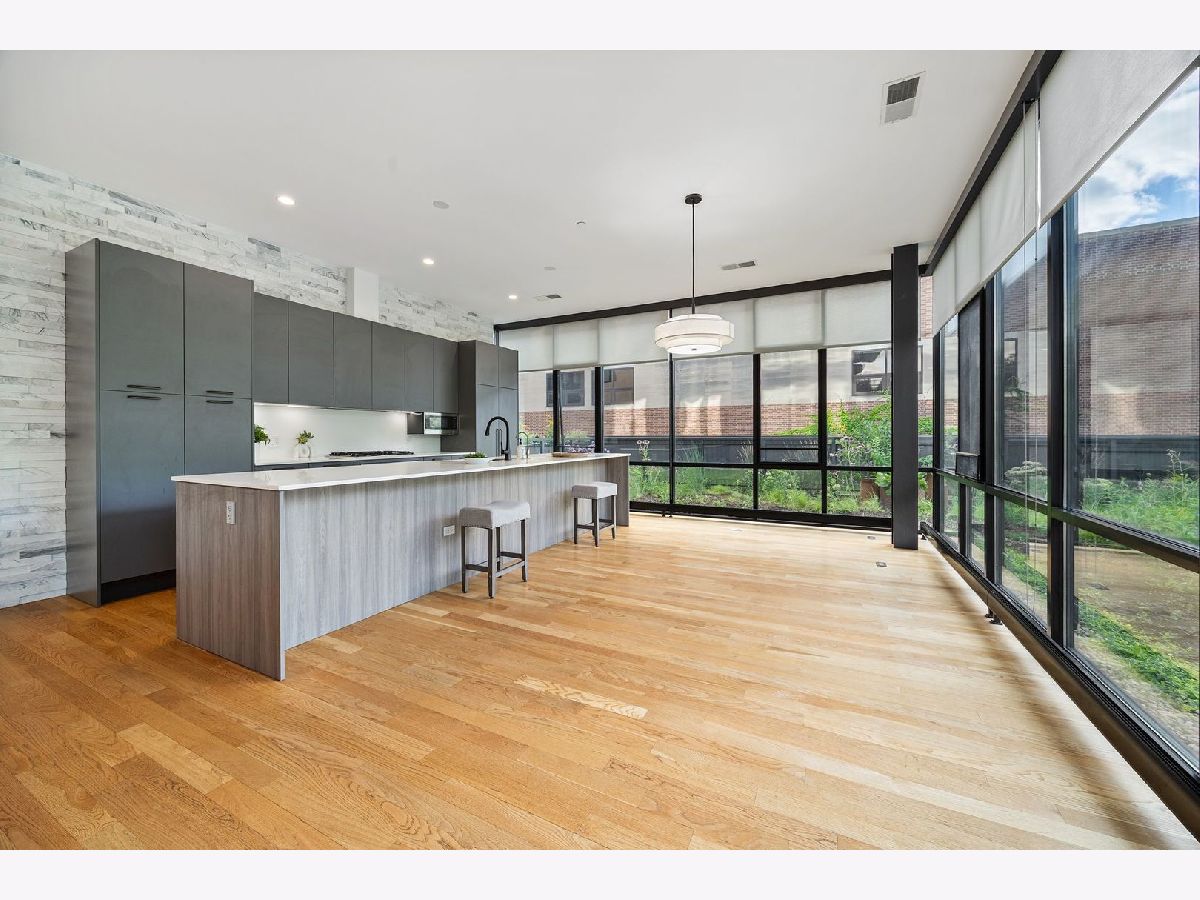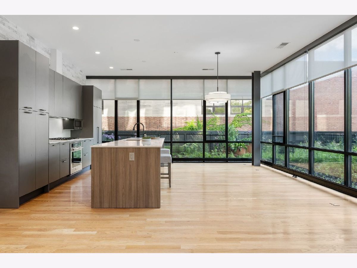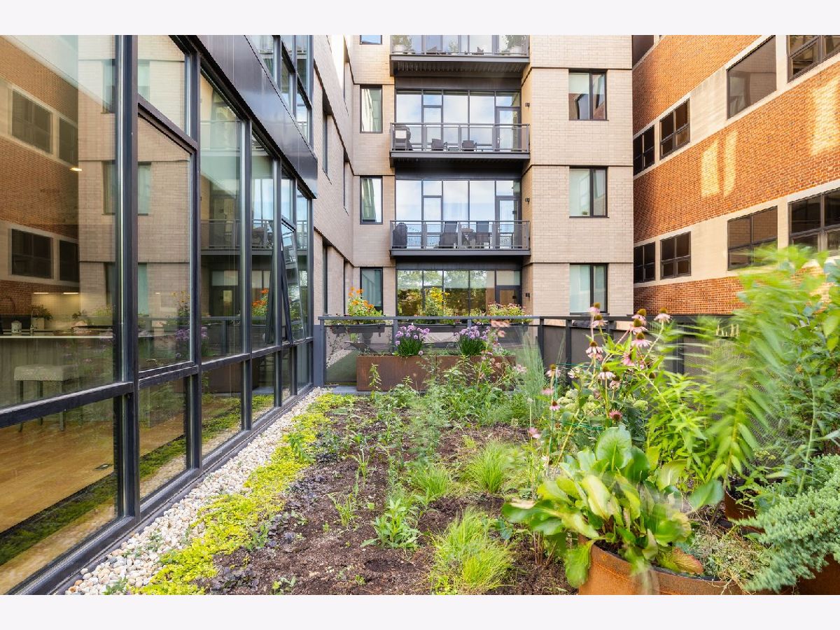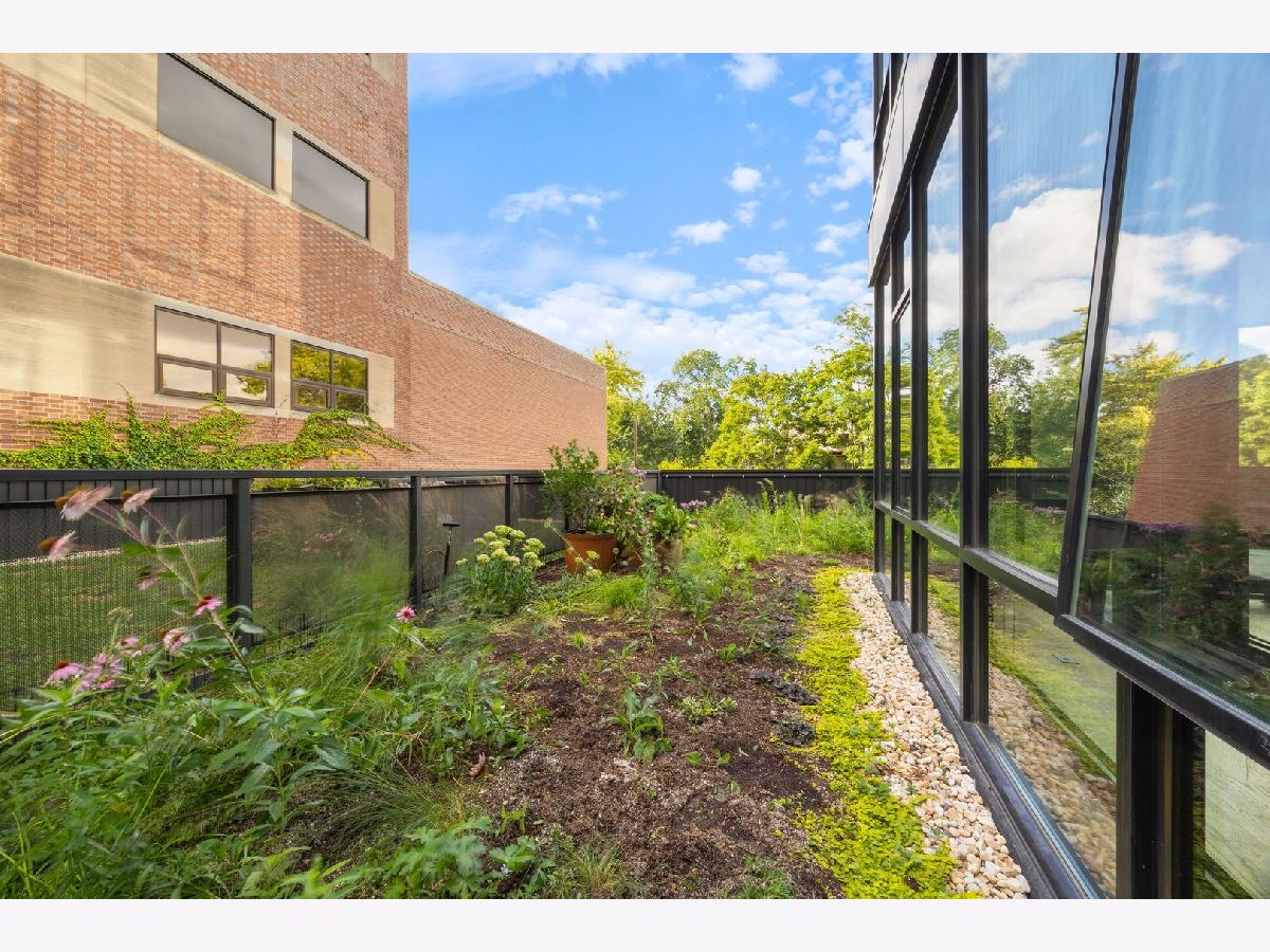 Amazing opportunity at the District House in Oak Park! Looking for a luxury condo in a great location, but love having outdoor space? Unit 205 is your dream-come-true, with a private 815 sq ft North-facing green terrace with a patio area and a well-designed prairie garden accented with custom planters. You will enjoy this view from the inside as well from 10' floor-to-ceiling windows which provide unobstructed, treetop views. This 3BR/2BA, open floor plan features a main living area made for entertaining, with a 13ft quartz island accommodating seating for 6. Kitchen upgrades include 40"upper cabinets and integrated front cabinet panels concealing high-quality appliances. Custom shades and newer wide-plank oak flooring throughout, a reverse osmosis water filtration system and rain shower head and body sprays in the master bath. You will love the extra-large primary suite with a walk-in closet outfitted by California Closets, and the newer doors and closet systems throughout. Included is a garage parking spot #6 with a dedicated 110-volt outlet. This LEED certified building has a rooftop deck with a green roof and scenic skyline views, a community grill, and generous seating. All this plus a prime location close to the Metra/Green Line, shops, restaurants, Fairgrounds Cafe, and Pilates. Get ready to live your best life in downtown Oak Park!