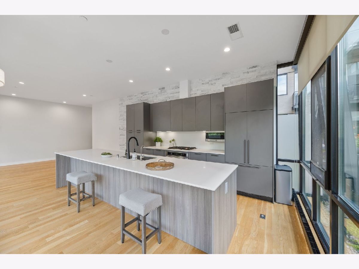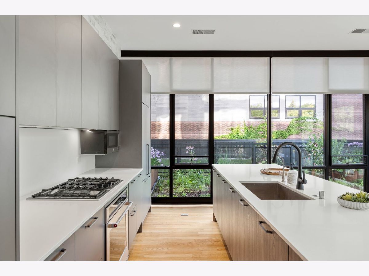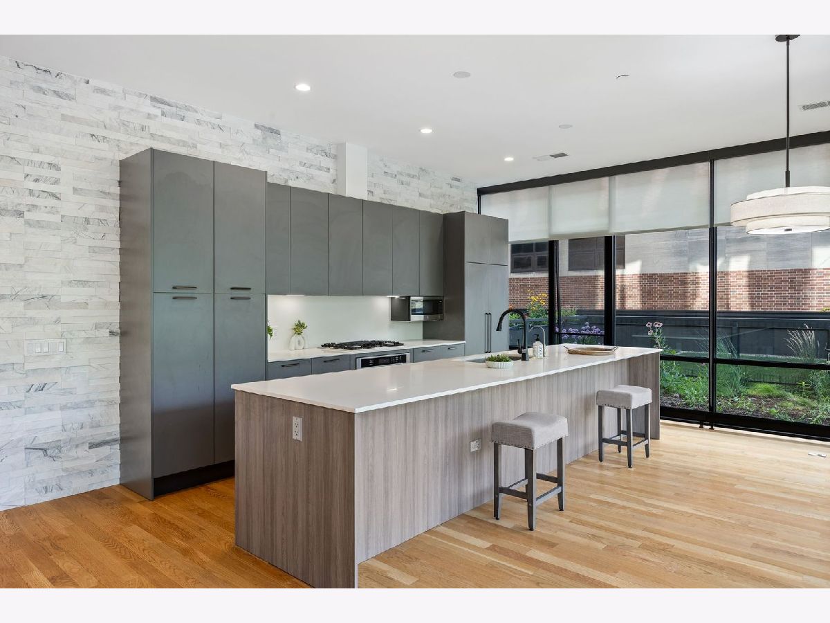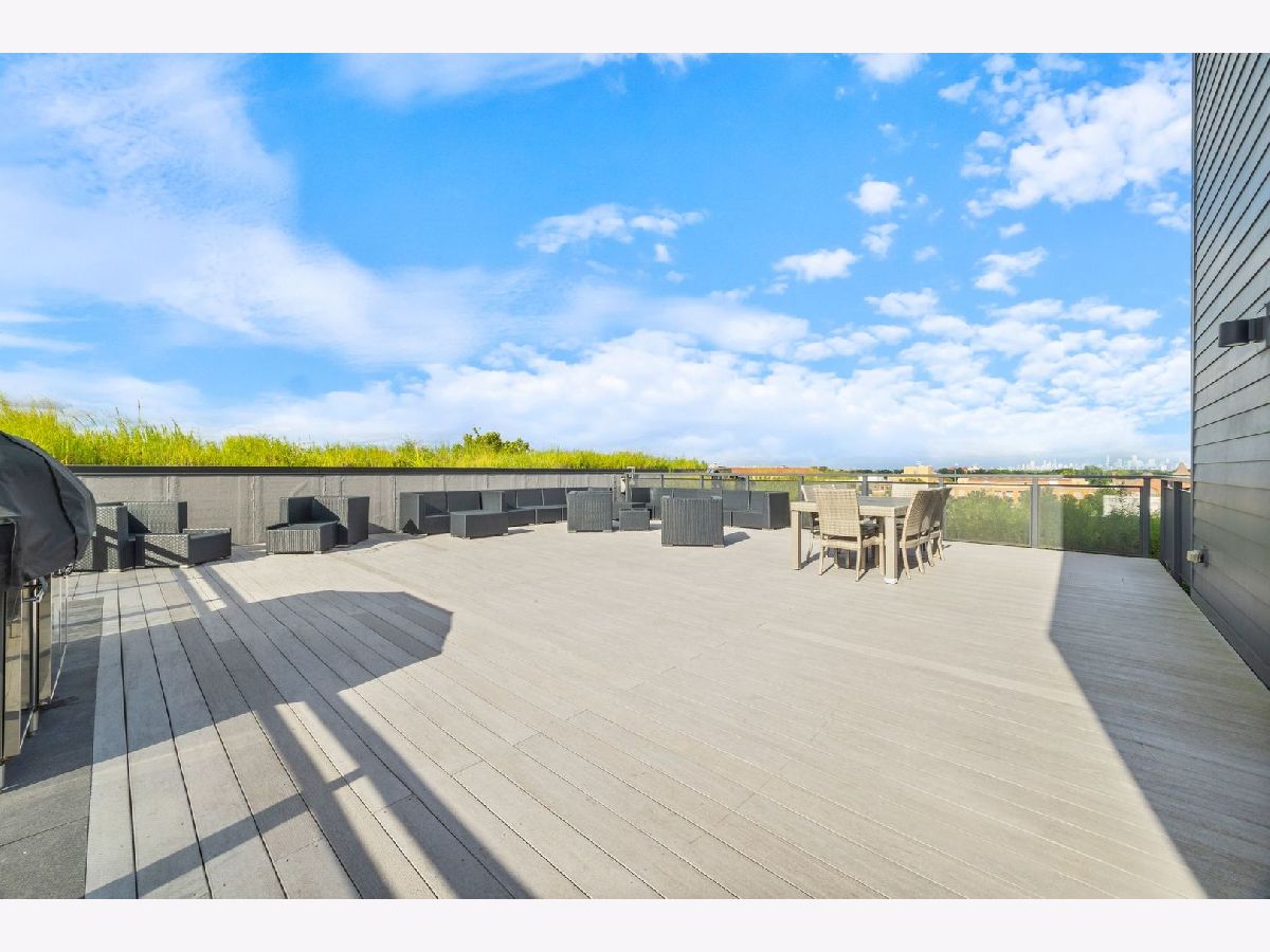 Amazing opportunity at the District House in Oak Park! Looking for a luxury condo in a great location, but love having outdoor space? Unit 205 is your dream-come-true, with a private 815 sq ft North-facing green terrace with a patio area and a well-designed prairie garden accented with custom planters. You will enjoy this view from the inside as well from 10' floor-to-ceiling windows which provide unobstructed, treetop views. This 3BR/2BA, open floor plan features a main living area made for entertaining, with a 13ft quartz island accommodating seating for 6. Kitchen upgrades include 40"upper cabinets and integrated front cabinet panels concealing high-quality appliances. Custom shades and newer wide-plank oak flooring throughout, a reverse osmosis water filtration system and rain shower head and body sprays in the master bath. You will love the extra-large primary suite with a walk-in closet outfitted by California Closets, and the newer doors and closet systems throughout. Included is a garage parking spot #6 with a dedicated 110-volt outlet. This LEED certified building has a rooftop deck with a green roof and scenic skyline views, a community grill, and generous seating. All this plus a prime location close to the Metra/Green Line, shops, restaurants, Fairgrounds Cafe, and Pilates. Get ready to live your best life in downtown Oak Park!