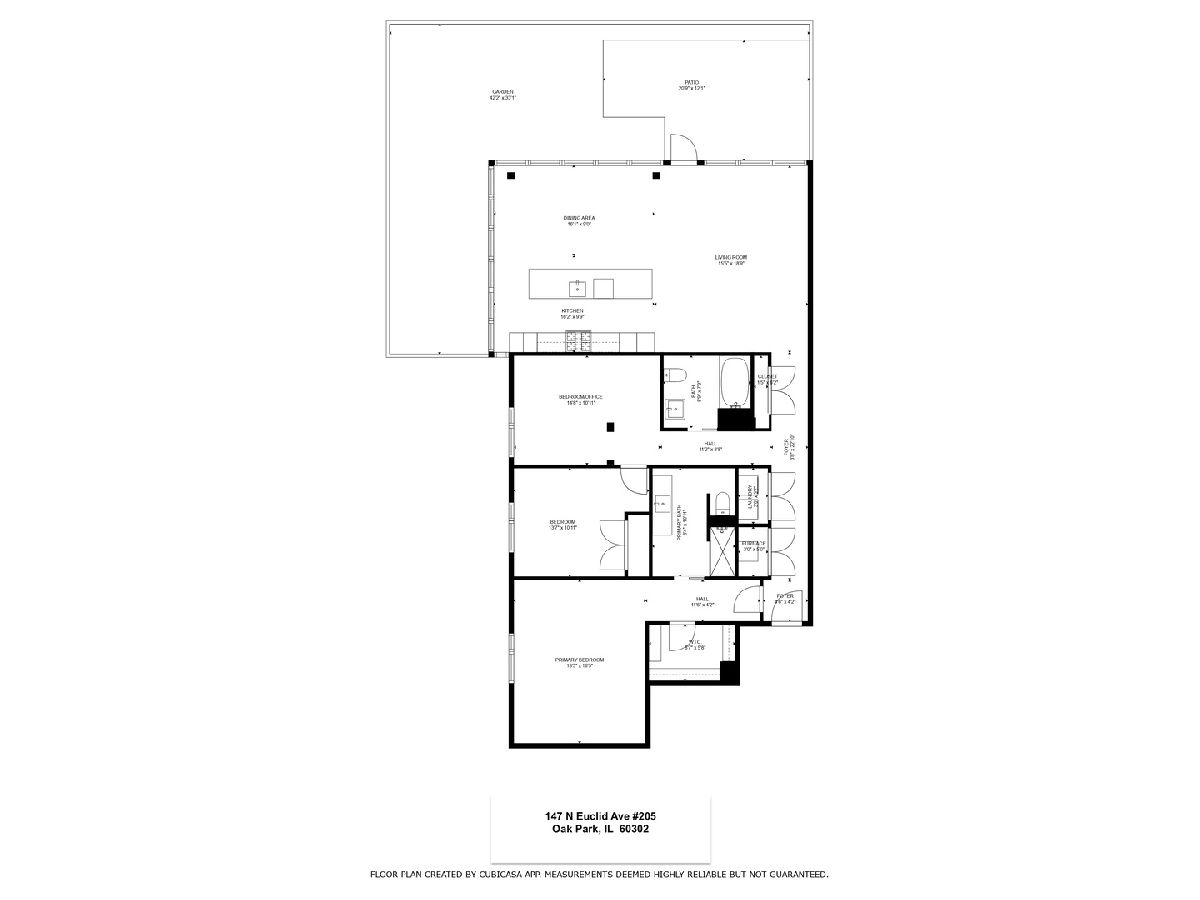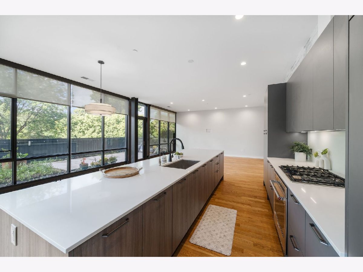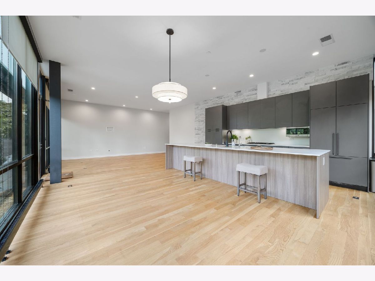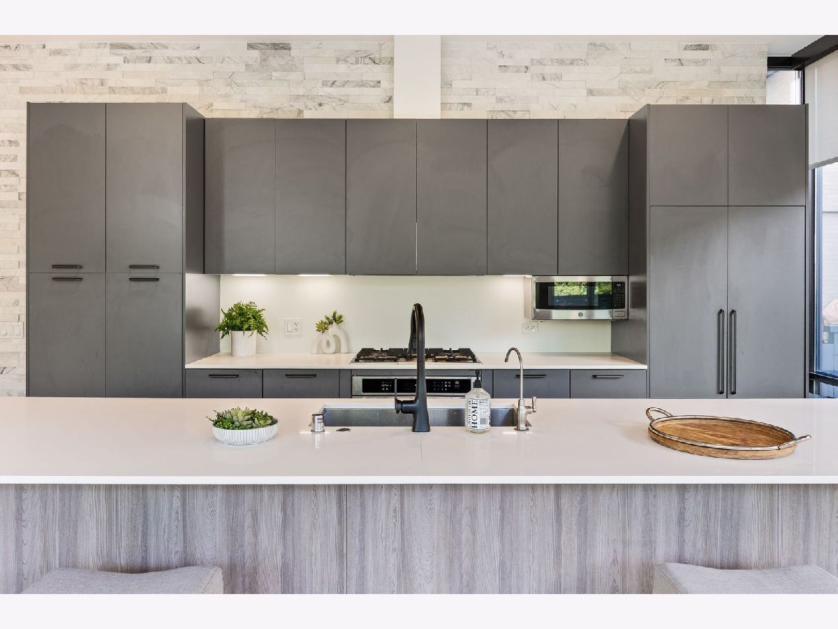 Amazing opportunity at the District House in Oak Park! Looking for a luxury condo in a great location, but love having outdoor space? Unit 205 is your dream-come-true, with a private 815 sq ft North-facing green terrace with a patio area and a well-designed prairie garden accented with custom planters. You will enjoy this view from the inside as well from 10' floor-to-ceiling windows which provide unobstructed, treetop views. This 3BR/2BA, open floor plan features a main living area made for entertaining, with a 13ft quartz island accommodating seating for 6. Kitchen upgrades include 40"upper cabinets and integrated front cabinet panels concealing high-quality appliances. Custom shades and newer wide-plank oak flooring throughout, a reverse osmosis water filtration system and rain shower head and body sprays in the master bath. You will love the extra-large primary suite with a walk-in closet outfitted by California Closets, and the newer doors and closet systems throughout. Included is a garage parking spot #6 with a dedicated 110-volt outlet. This LEED certified building has a rooftop deck with a green roof and scenic skyline views, a community grill, and generous seating. All this plus a prime location close to the Metra/Green Line, shops, restaurants, Fairgrounds Cafe, and Pilates. Get ready to live your best life in downtown Oak Park!