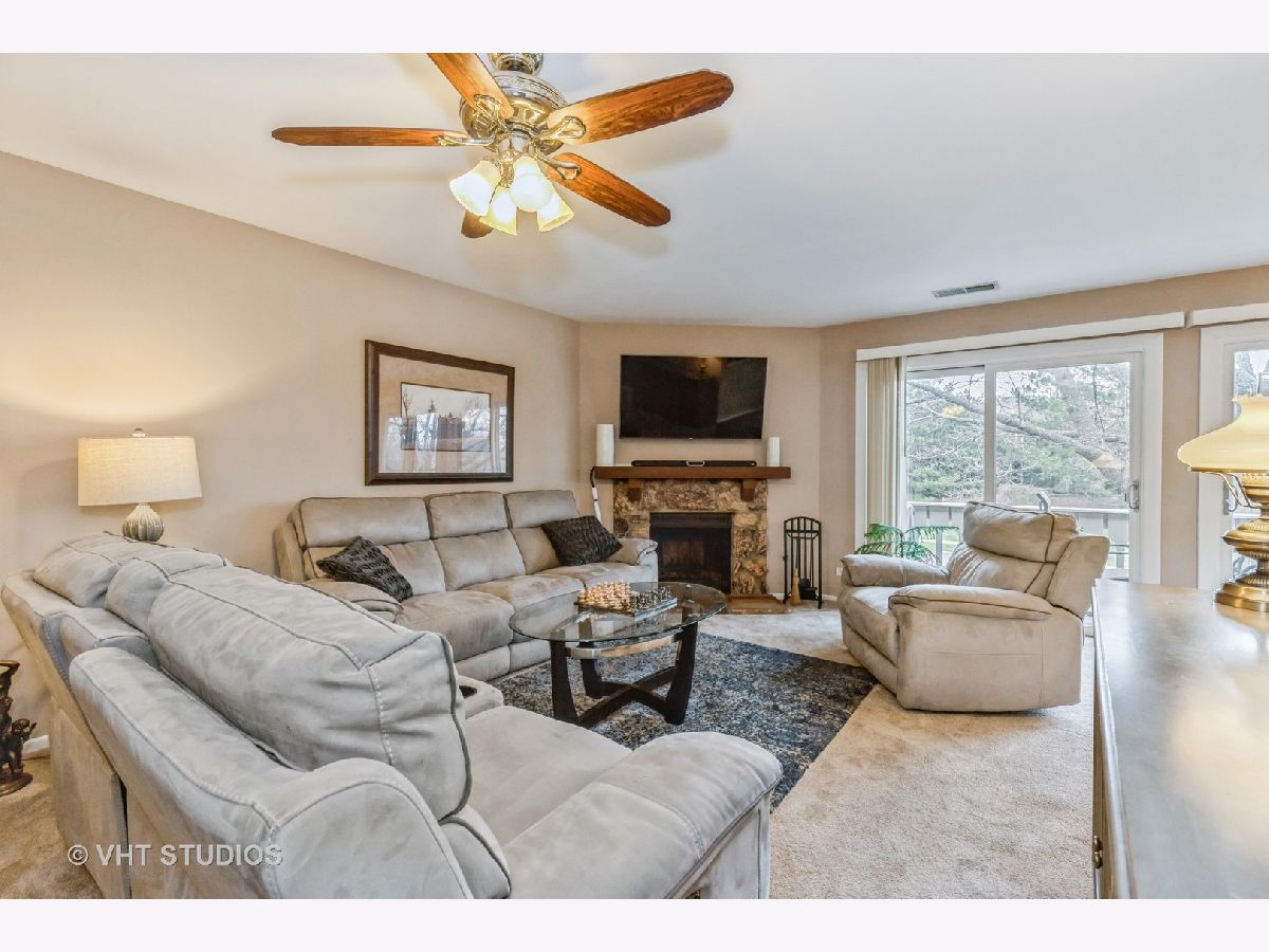 Welcome Home! This great 2 bed 2 bath condo in Pembrook subdivision is move-in ready and waiting for it's new owner! The gorgeous, newly remodeled kitchen is sure to please with all newer stainless steel appliances, beautiful maple cabinets and stylish backsplash, breakfast bar and walk-in pantry! The separate dining area features large sliders which let in tons of natural light and lead to the spacious balcony where you can start your day with a cup of coffee and/or end your day with a glass of wine! The large but cozy family room features a beautiful fireplace, ceiling fan and included wall mount TV. The master suite includes a large walk-in closet, ceiling fan, included TV and private bathroom. In-unit laundry room makes doing laundry a breeze! And, no need to worry about the big stuff as the new Carrier furnace and AC are only a year old! The 1 car attached garage has plenty of room for storage and leads directly into the clean, lighted and heated hallway. You will enjoy the clubhouse and pool during the summer and the nearby parks throughout the year! Prime location - close to Six Flags Great America, grocery stores, restaurants, shops, the expressway and all that Gurnee has to offer!