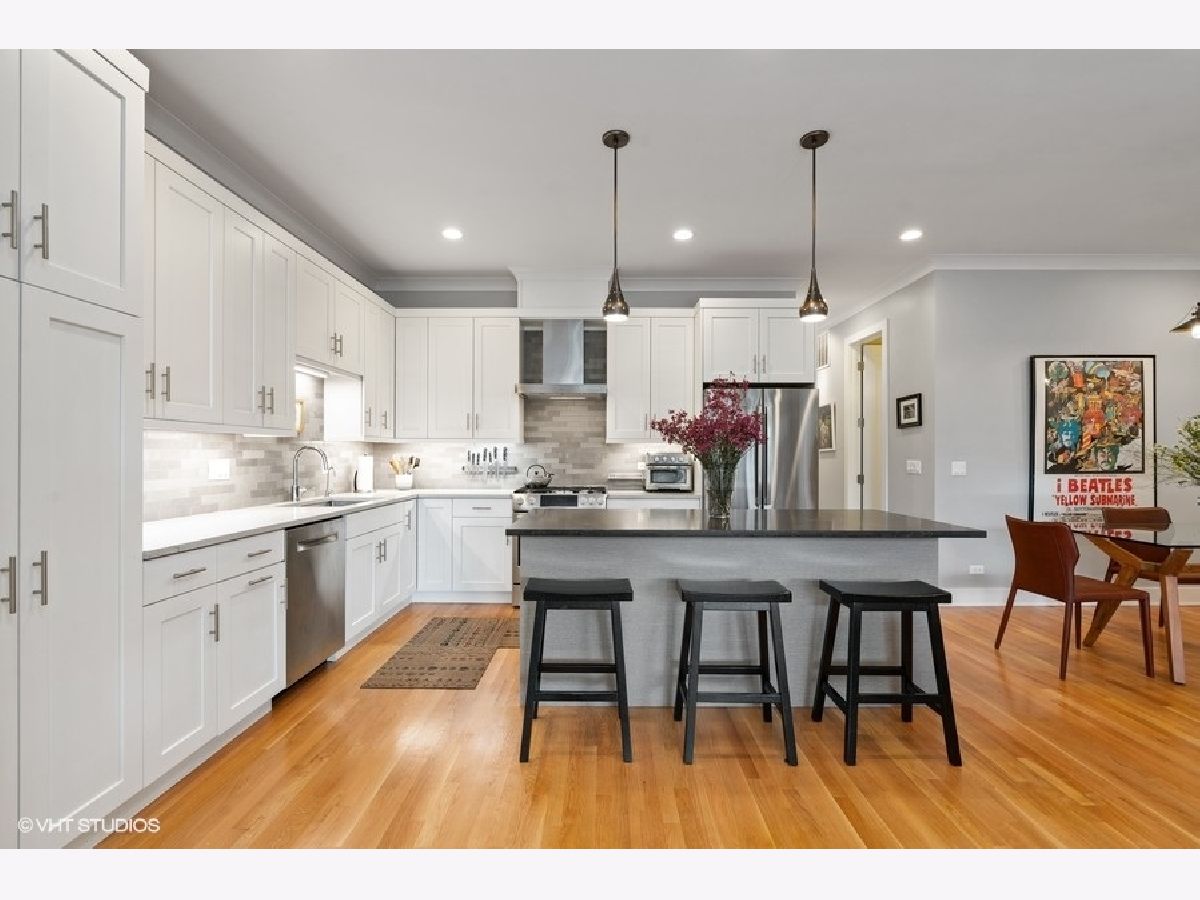 Newer construction with pride of build and high-end finishes throughout in a prime location steps away from Clark street on beautiful Winona. This 2 bedroom/2 bath condo features a chef's kitchen, with Bosch appliances, huge island with seating, upgraded quartz countertops, stone backsplash, wine fridge, and plentiful cabinets for storage. An incredible feature of this unit is upgraded sliding glass doors off the living room open to a large south-facing covered private balcony. Allowing you to live an indoor/outdoor lifestyle. The extra-large Primary Bedroom features an organized closet and ensuite bathroom with upgraded stone throughout, in-floor radiant heat, and rain shower. Nicely sized second bedroom and second full bath with beautiful tile and stone. Other features include pristine oak hardwood floors throughout, Grohe faucets, TOTO sinks and toilets, deep soaking tub, 8' solid core doors, and crown molding throughout. The unit also includes full-size stacked washer and dryer, garage parking, and a large secure storage space. A short walk to restaurants, shopping and entertainment as well as the red line train.