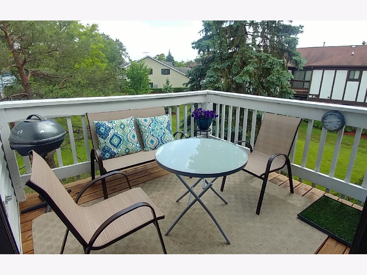 Ready to Move-In! Largest model in the complex. Tastefully rehabbed in the past 12 months. Spectacular Open Concept living and dining room with cathedral ceiling. New fireplace. Access to balcony from living room and beautifully renovated kitchen with room for a table. All Stainless Steel Appliances are about a year old. Oakwood laminate floors in living, dining room and and 3rd bedroom/Den or work from home office. Expansive master bedroom with walk-in closet and updated, modern bath with over-sized shower. 2nd bathroom was just rehabbed and offers very neutral tones. Desirable in-unit washer and dryer. Huge laundry/utility room serves also as a storage. Attached garage completes this maintenance-free home! Close to stores, restaurants and easy access to 390 and O'Hare.