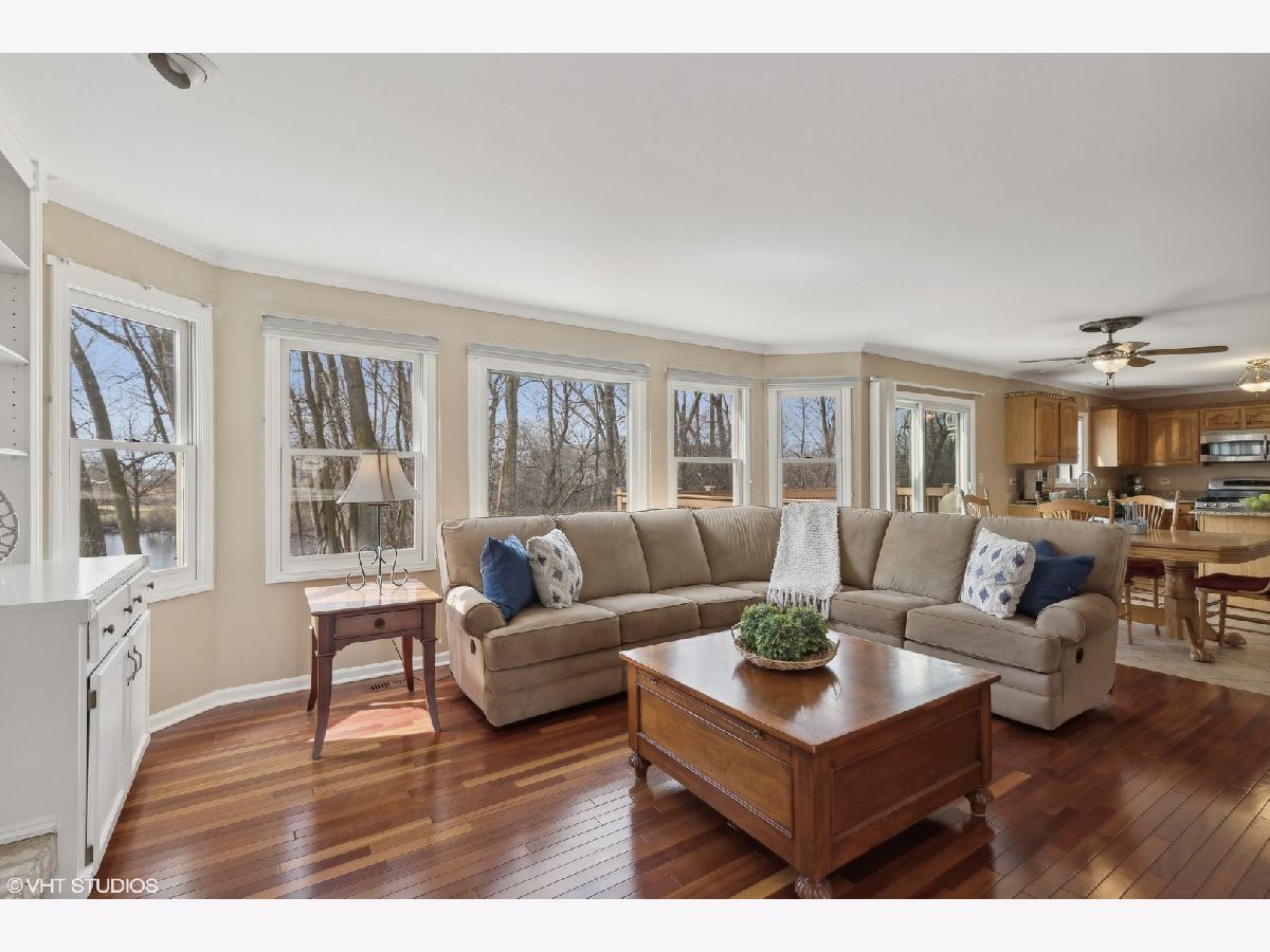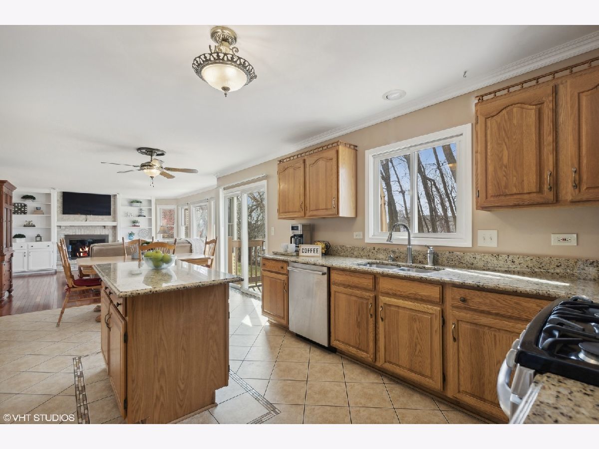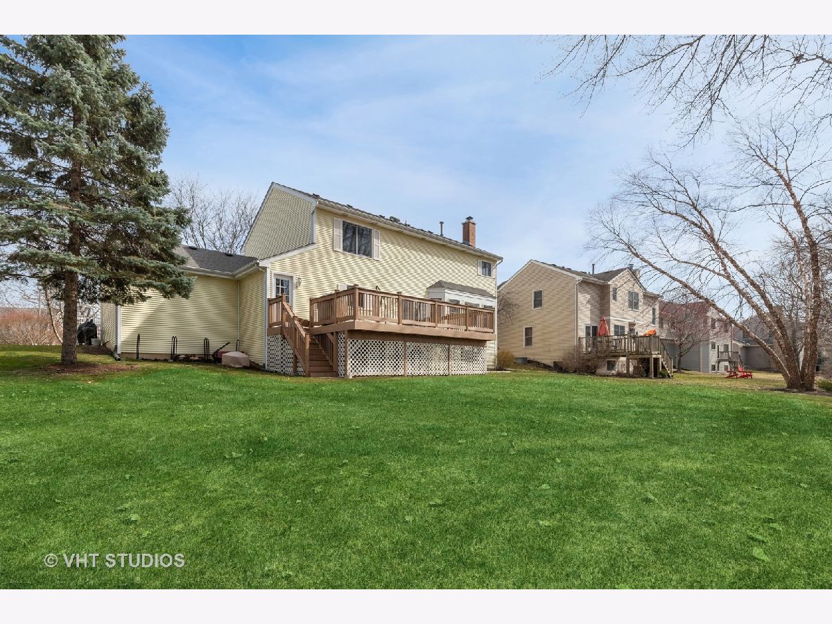 The absolute best location in one of Gurnee's most popular neighborhoods! No backyard neighbors, water view and on a cul-de-sac! This is a wonderful 4 bedroom, 2 1/2 bath home with open floor plan, perfect for entertaining! Your kitchen has everything you could want; granite counters, center island and stainless steel appliances flowing right into the spacious family room with it's wall of windows, cozy fireplace and gorgeous built in book shelves. Convenient laundry/mud room is on the 1st level. The Primary bedroom is huge and has an updated bath & generous walk in closet! All the bedrooms on the 2nd level have hardwood flooring and ceiling fans! The backyard is the icing on the cake! Step out to your sprawling maintenance free deck and just relax and enjoy! Morning or night the views are spectacular. This location is truly fantastic! Close to everything Gurnee has to offer: pool, bike and walking trails, parks, shopping, Great America and the tollway! Wow!