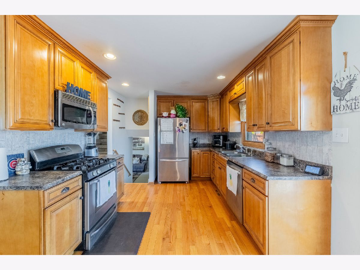 Take a look at this charming corner-lot home featuring 3 bedrooms and 1.5 bathrooms! This beautiful brick split-level home features a spacious family room filled with lots of natural light. Including a spacious open-layout kitchen with stainless steel appliances and soft-close kitchen cabinets. Enjoy outdoors with a large fenced yard with a beautiful patio/ patio set. This home includes a 2-car detached garage with an additional driveway space for quick parking. Minutes away from the Metra station, 294 expressway, restaurants, parks and so much more!