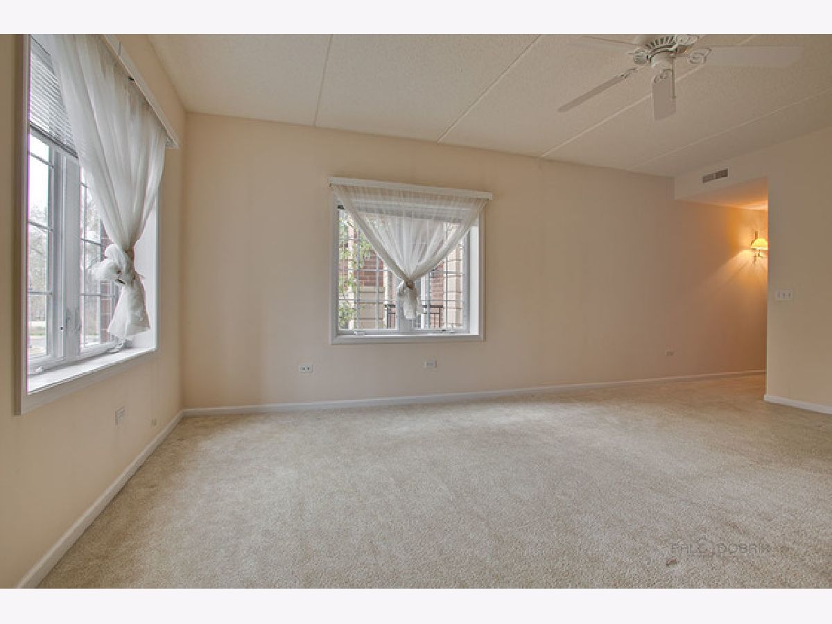 Great location, right outside the heart of Downtown Libertyville! This unit has just been freshly painted! Completely open living and dining room combo with sliders to your very own private balcony. Kitchen features stainless steel appliances, granite countertops, and an abundance of pull out cabinets providing great storage. This one is sure to catch your eye with the ample space of the master ensuite - large walk in closet, along with additional large linen closet, private bathroom with jetted tub, separate standing shower and large double vanity. The second bedroom offers great wall closet space. A second full bathroom and spacious laundry room complete this well-kept unit! 1 car garage space, 1 exterior space and 1 storage space which is located right in front of your garage parking space! Enjoy maintenance free living!