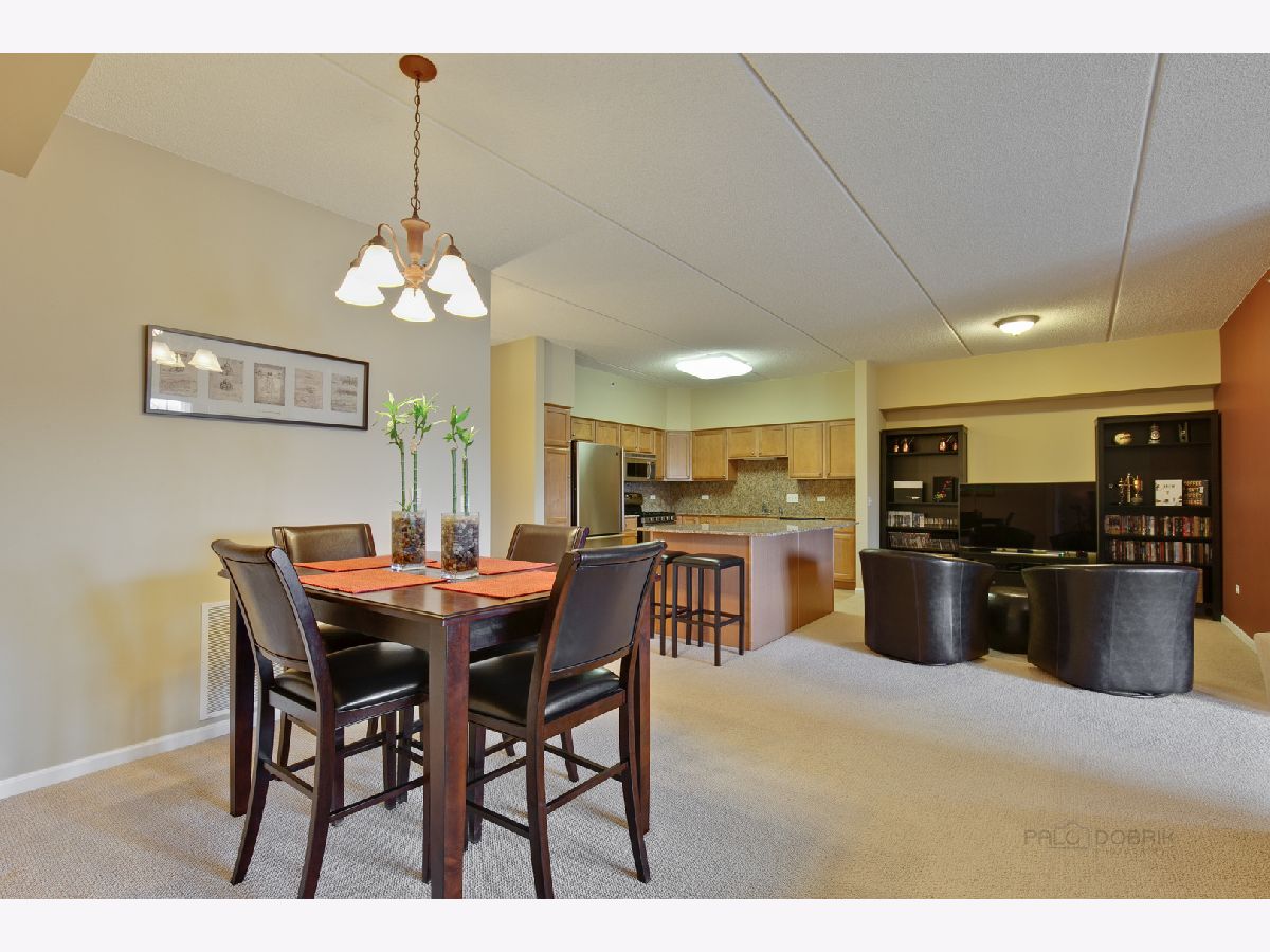 You will love it! Close to town center as well as nature, this open concept condo has style, space, and popular features. The stunning kitchen has stainless steel appliances, granite countertops, full-height granite backsplash, maple cabinets, and an island with seating space that will be the center of parties as well as food preparation. Open to the kitchen are a lovely living room with fireplace, a generous dining area, and a versatile bonus space that can serve as an office or family room. The owner's suite includes a walk-in closet and spacious bathroom with 2 sinks, whirlpool tub, and separate shower. Desirable split floor plan includes a big 2nd bedroom and full bath. Great balcony with tree-top views. Gas, water, and heat are included in fees! Also included are a heated garage space, storage closet, and an outdoor parking space. Excellent location across from Adler Park, near Independence Grove and vibrant downtown Libertyville with all it has to offer including restaurants, pubs, shops, and Metra train station. Enjoy a maintenance-free lifestyle without sacrificing location or luxury! See for yourself.