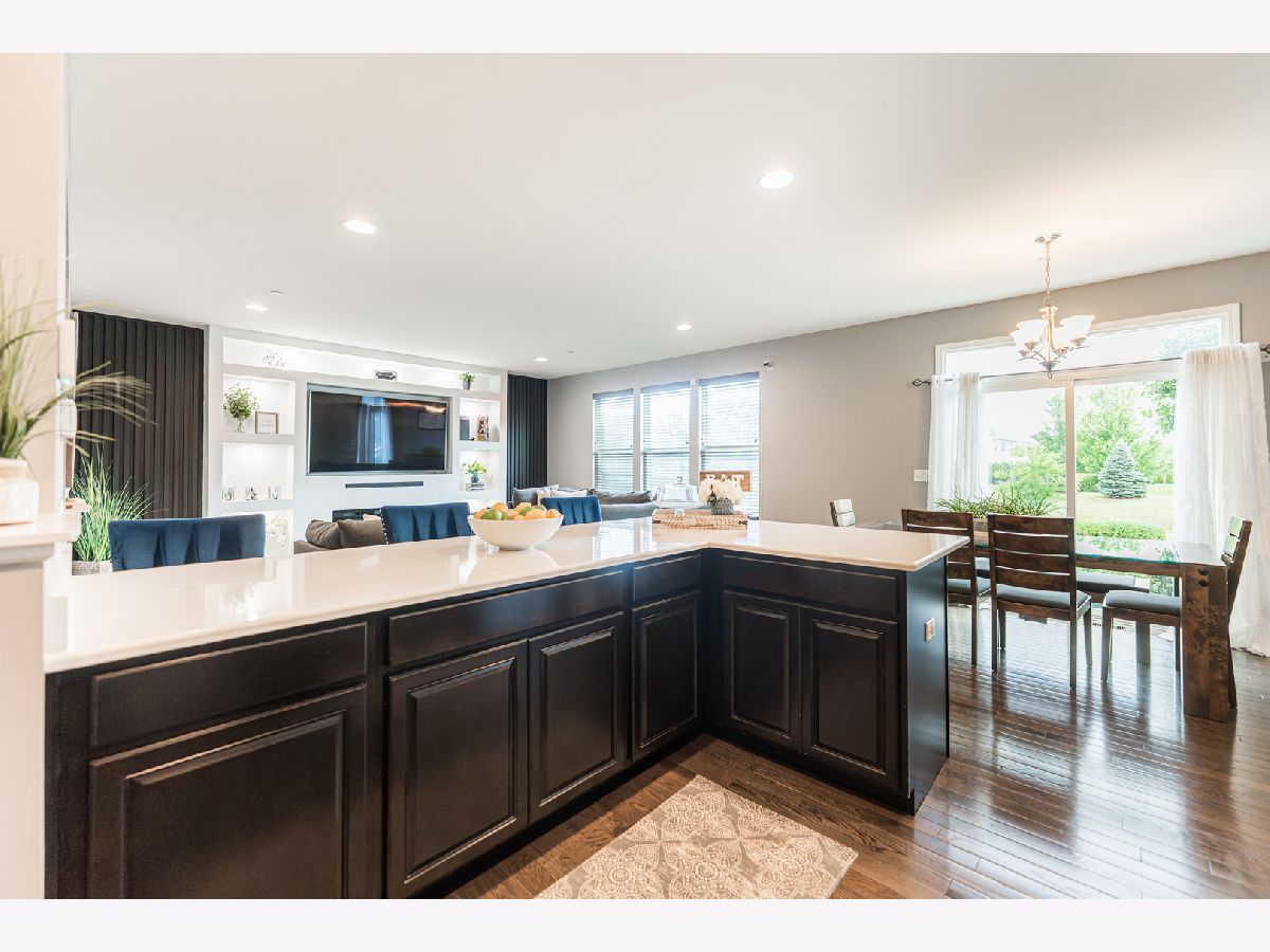 Welcome to this stunning newer construction home in the highly sought-after Manners at Brookmere! Built in 2017, this impressive 2-story residence blends modern design with everyday functionality. The inviting brick and aluminum exterior opens to a dramatic vaulted entryway, leading to a striking custom accent wall and formal living/dining room combo, perfect for entertaining. Enjoy an extended family room, featuring a built-in entertainment wall and sleek electric fireplace. The oversized galley-style kitchen is a chef's dream, complete w/quartz countertops, stainless steel appliances, pantry, and a secondary dining area with access to the patio. EXTRA PERK: flex office or 5th bedroom and 9' ceilings throughout the home add even more versatility and comfort. 2nd level features, an airy loft area connecting four spacious bedrooms, all with walk-in closets. The primary suite offers a spa-like bathroom with a soaking tub and walk-in shower. There is a 2nd-floor laundry room adding modern ease! All this plus 1,000 sf of finished basement an entertainer's dream, featuring a spacious recreation room with dry bar, music room, and home gym. EXTRA PERK: HOA covers landscaping, snow removal, and park maintenance! Ideally located near parks and expressway access. Schedule your showing today!