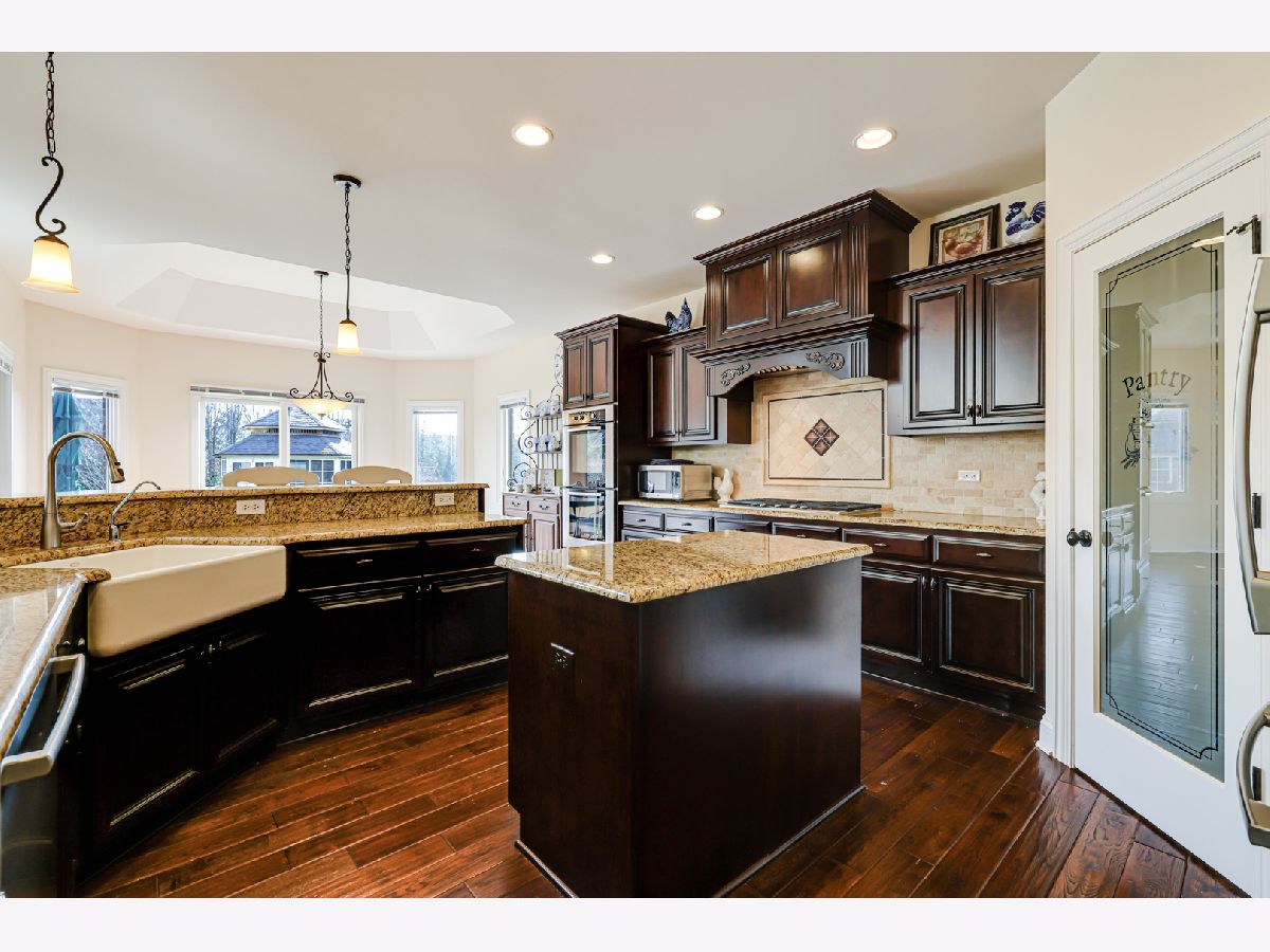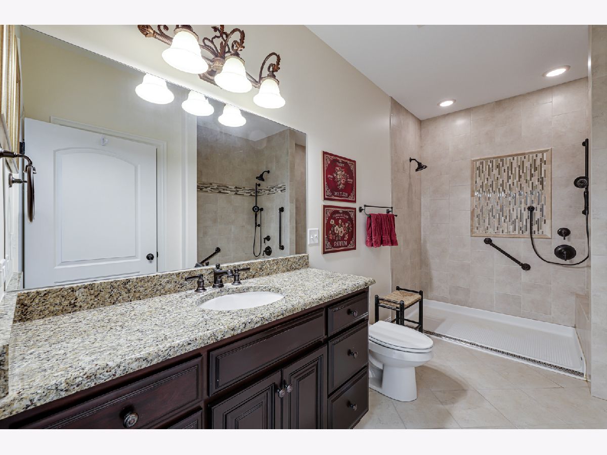 EXQUISITE DESIGN and CONSTRUCTION by RENOWNED Chicagoland custom home builder Shawn O'Malley. Wonderful curb appeal on this mostly brick and stone construction TRUE RANCH with large loft and full finished basement. Fine craftsmanship and woodwork throughout including custom crown molding, wainscotting and a SIMPLY GORGEOUS floor-to-ceiling custom wood fireplace mantel and surround. Formal dining room with coffered ceiling and beautiful custom woodwork throughout. Open concept kitchen/dining/living area with two story great room. The modern kitchen comes complete with custom cabinetry, granite counter tops, stainless steel appliances, custom range hood, custom pantry, island, breakfast bar seating and a GOREGEOUS ornate stone back splash. On the North wing of the home you will find an enormous owner's suite with seating area, walk-in closet and a spacious attached main bathroom with jetted tub, dual sink vanity and separate shower. On the other side of the main floor are two additional spacious bedrooms and another full bathroom with a no-threshold, accessible shower. In fact, the entire home was designed with ADA accessibility in mind including wider halls and doorways and a handicapped accessible ramp in the garage which can be removed if needed. Upstairs is an enormous loft with a large living space, full bathroom and an additional room with closet that could easily be used as a fourth bedroom. The wide-open, full finished basement has tons of space for relaxation and recreation. There are also two separate rooms that could be used as additional bedrooms, office space or storage. One is currently being used as a craft room. There is also ample storage and closet space in the basement. The private, backyard oasis is gorgeously landscaped with flowering perennials, stone patio and brick walkways, arbors, a side courtyard garden and a lovely 3-season, fully enclosed gazebo with stone fireplace. The entire yard is professionally landscaped and maintained with additional water spigots around the home for easy accessibility to water sources for the lush, flowering vegetation. All of this in a nice, quiet neighborhood within walking distance of the village library, village hall, sports fields, walking paths and the "Crown Jewel" of Homer Glen, the 300+ acre Heritage Park. This community park is the largest park in the village and includes paved walking/biking paths, tennis and pickleball courts, sand volleyball courts, an enormous sledding hill, soccer fields, a "Ninja Warrior" style fitness course, tons of open space and several other amenities soon to come including more playground equipment for all age levels, a splash pad/ice rink and an outdoor entertainment pavilion and village green. This is a rare opportunity to own a well-built, high quality, custom ranch home on a gorgeous lot, in a great neighborhood/location and this opportunity will not last long! Make your offer today before you miss out!