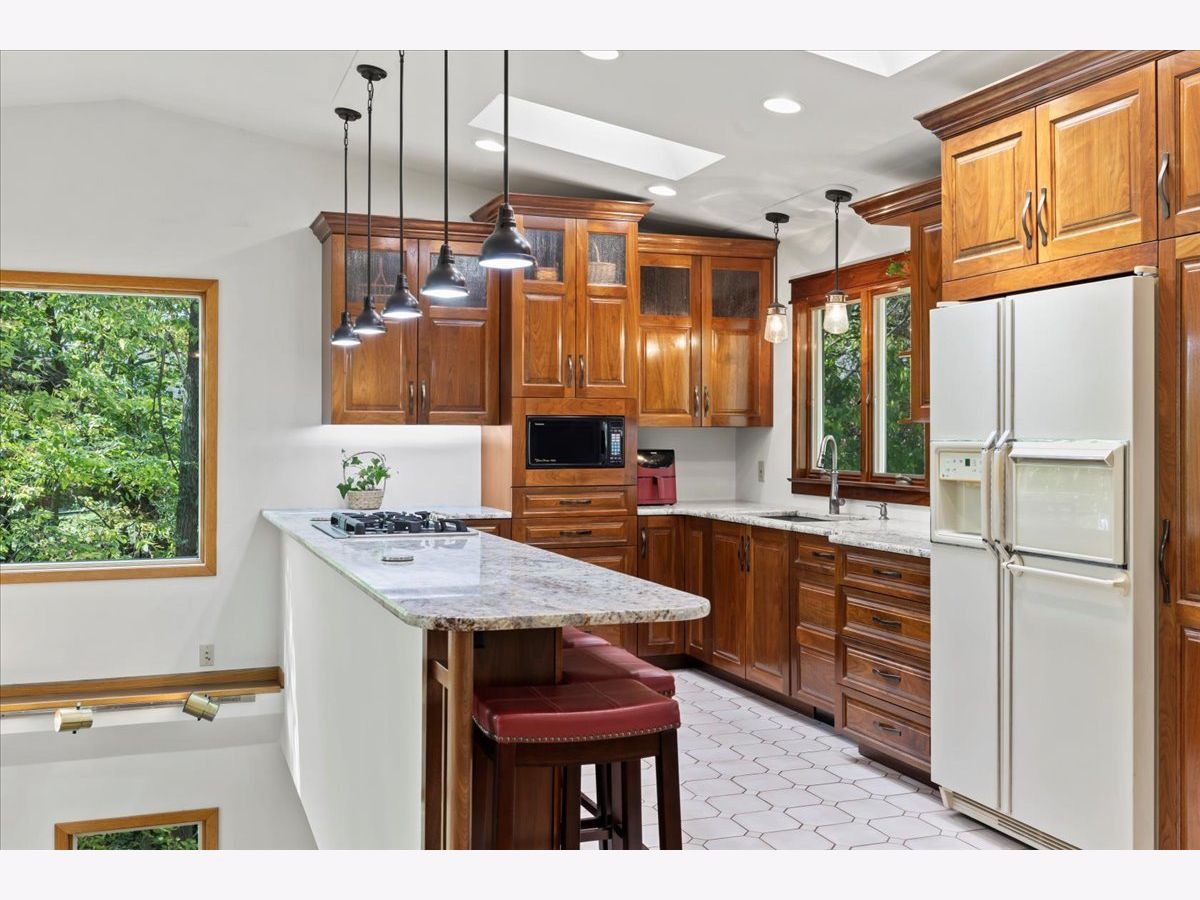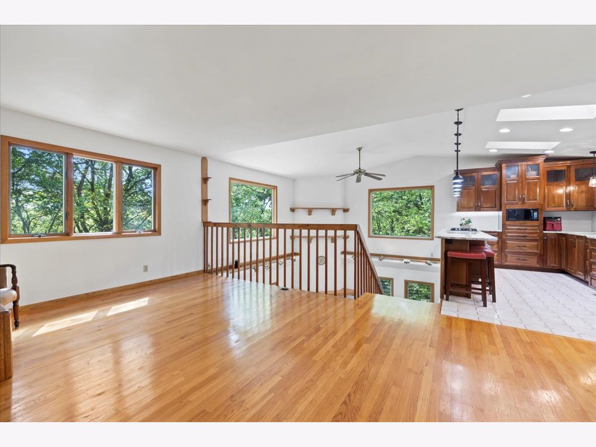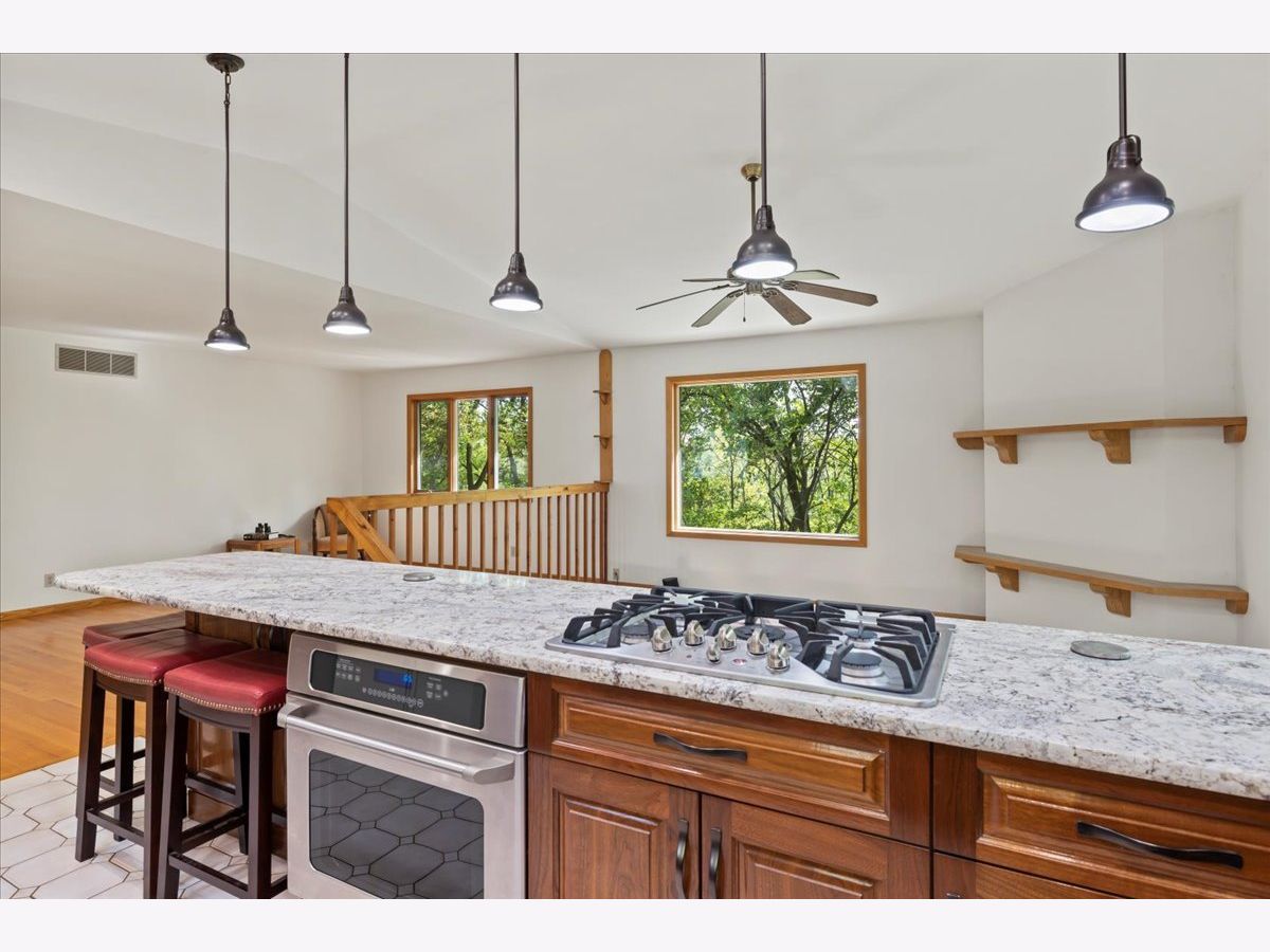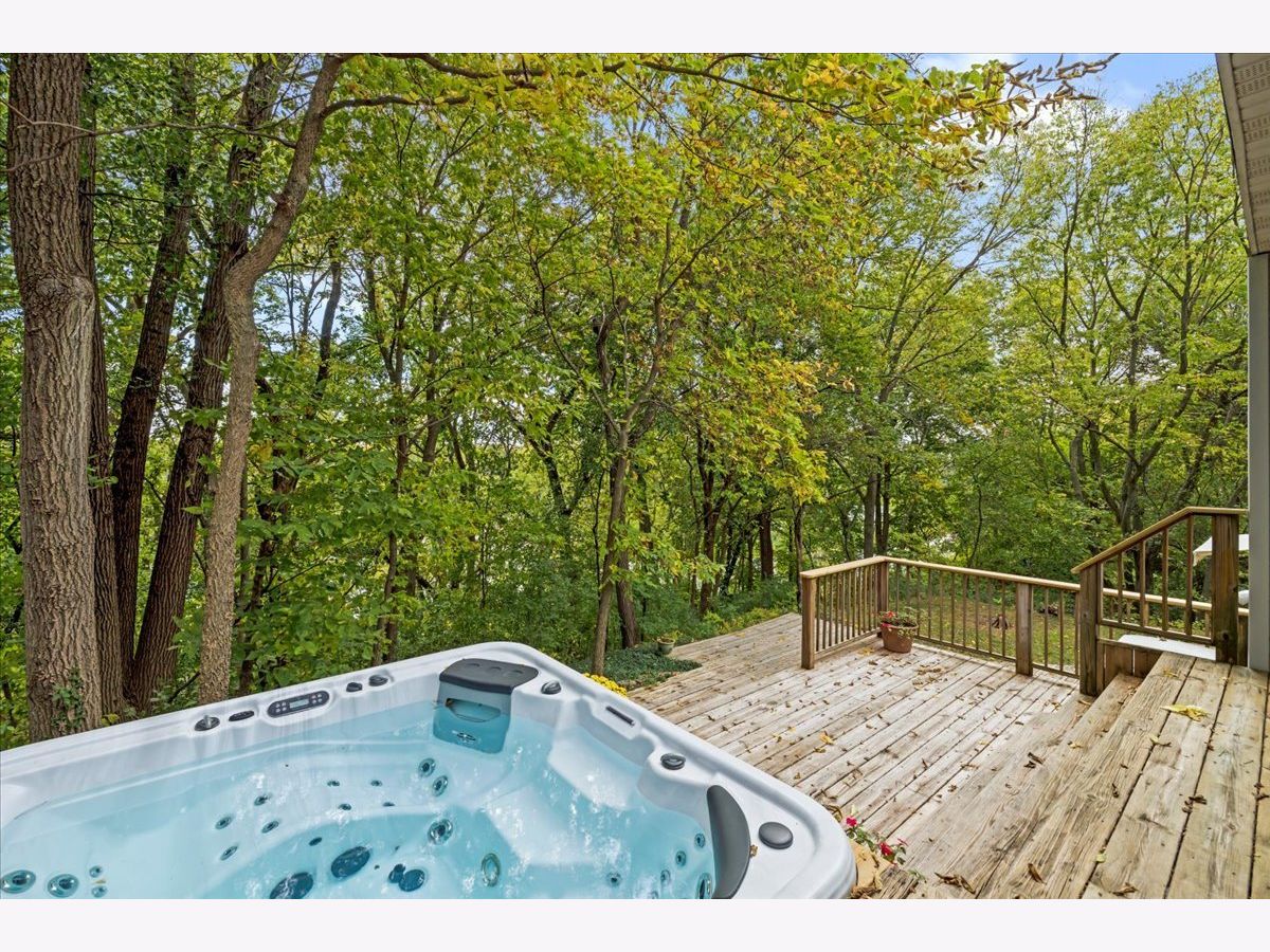 This hidden waterfront gem is a custom walkout ranch home situated on a bluff overlooking 180 feet of Rock River frontage, offering panoramic water views. It's nestled on over 1.5 acres in a tranquil rural setting, perfect for wildlife enthusiasts and outdoor enthusiasts alike, providing opportunities for fishing, kayaking, and leisurely walks. The centerpiece of the house is its fully remodeled luxury kitchen featuring a vaulted ceiling, granite countertops, and locally grown walnut cabinets. Expansive windows fill the space with natural light and showcase the stunning views. The kitchen boasts high-end upgrades, including a 5-burner gas cooktop, oversized composite granite sink, and a concealed dishwasher. Designed to maximize its location, all three spacious bedrooms, including the primary ensuite, offer prominent water views. The primary ensuite includes a glass wall facing the river, a walk-in closet, and a spa-like bathroom with a jetted tub. A multi-level deck with a luxury hot tub provides outdoor serenity. The finished lower level with a wood-burning fireplace, wet bar, and home entertainment system opens up to a deck with water views. Additionally, there's over 700 square feet of unfinished workshop/storage space with outside access. The house is move-in ready and comes with various features, such as a 2.5-car detached garage, a built-in hot tub, a high-efficiency water heater, Anderson and Pella windows, solid oak flooring, smart home features, and an entertainment system. Fast cable internet is available, making it suitable for remote work or streaming. The property's location offers proximity to nature preserves, downtown Rockton, downtown Beloit, shopping, restaurants, I-90 and Route 2. It also has expandability potential and is zoned for no restrictions on short-term rentals.Sellers have already relocated, so this unique property is priced to sell quickly which makes this unique waterfront retreat a compelling choice for those seeking a new home or investment opportunity.