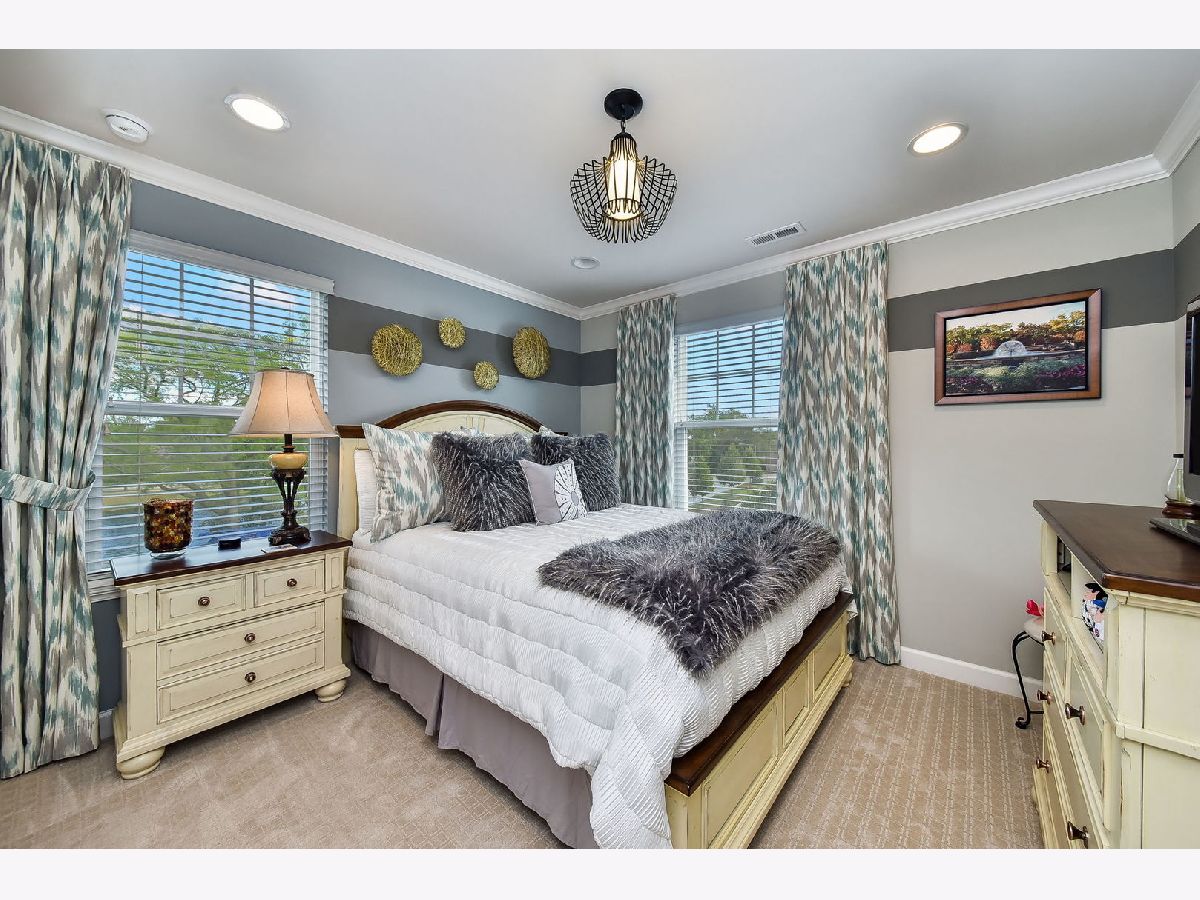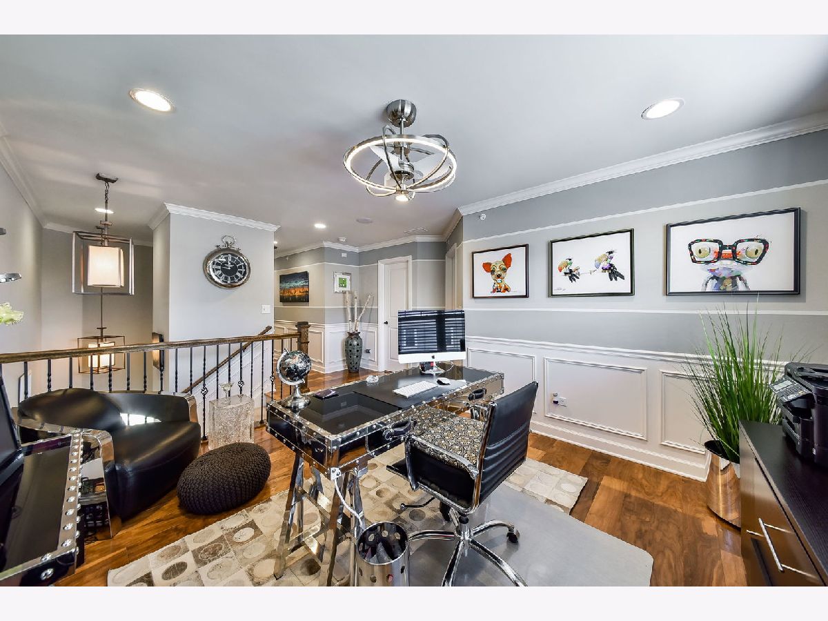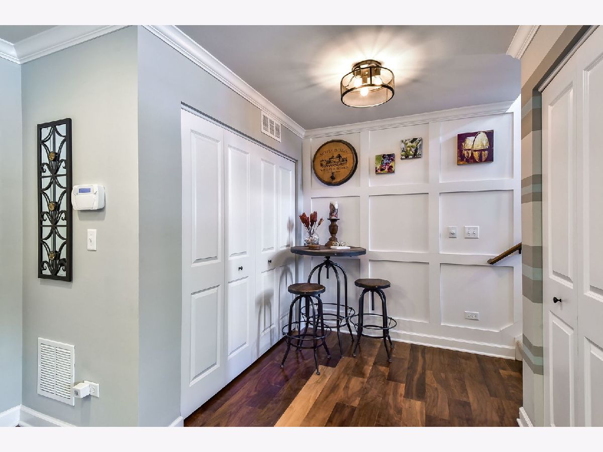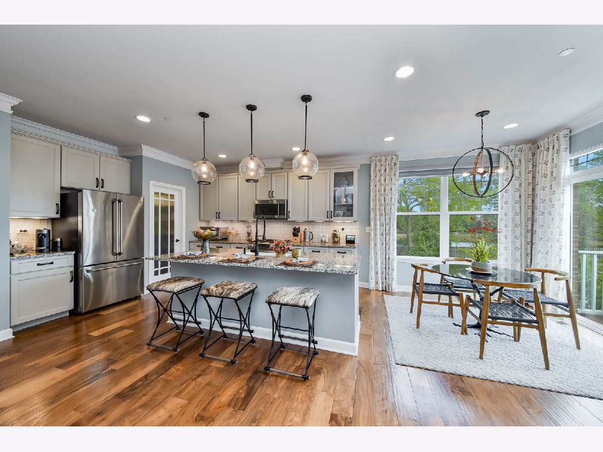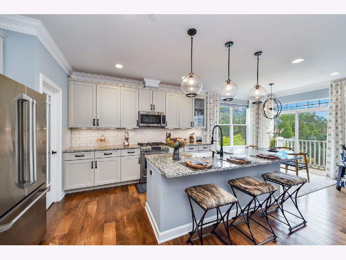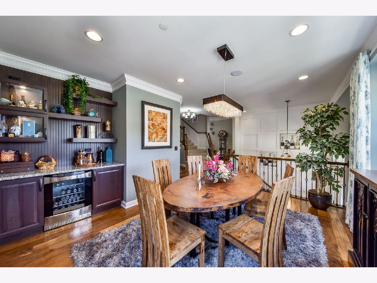 Luxurious builder's model, further enhanced by owner. A designer's masterpiece everywhere your eyes take you! Custom paint designs, wainscoting, shiplap, crown moldings, stylish ceiling fans, lighting, plumbing fixtures and built in sound system on all three levels. Beautiful window treatments blend with designers' color palate. Plentiful closets thoughtfully planned and stylish. Too many built-ins and upgrades to mention, a must see! Entry foyer wainscoted accent wall soars 18'6" from bonus room floor to formal dining room ceiling. First floor 9'ceiling, beautiful hand scraped hardwood floors in Family room, dining room, breakfast area, kitchen and powder room on main level. Kitchen detailed with 42" latte cabinets with under lighting, granite countertops, farmhouse sink, 8' island, spacious walk-in pantry and stainless-steel appliances. Open floor plan with wide staircases and landings add to a feel of a single-family home. Hardwood railings richly stained with stylish wrought iron spindles. Built-ins on all levels create great focal points, maximizing living space, storage and customized T.V. viewing. All the windows have Hunter Douglas Blinds. This end unit overlooks a pond and single family estate. 2 Bedrooms with lofted study has 2 full baths on third level with 2 half baths rounding out each level. Primary bedroom has tray ceilings with en-suite bathroom; honeycomb tiles in oversized walk-in shower, designer walk-in closet with make-up table. Tiled designs in both upstairs bathrooms, plus convenient laundry room with upgraded washer, dryer and cabinetry. Oversized garage has built-in storage closets and work bench. Commuters dream 5 minutes to downtown Naperville shopping, dining, train and route 88. Walkable to numerous popular restaurants and the Renaissance happening along East Ogden Ave in Naperville like the new Costco, Amazon Fresh, H-Mart and many more. This is a great north Naperville location to call home. You will love the convenience of living here.