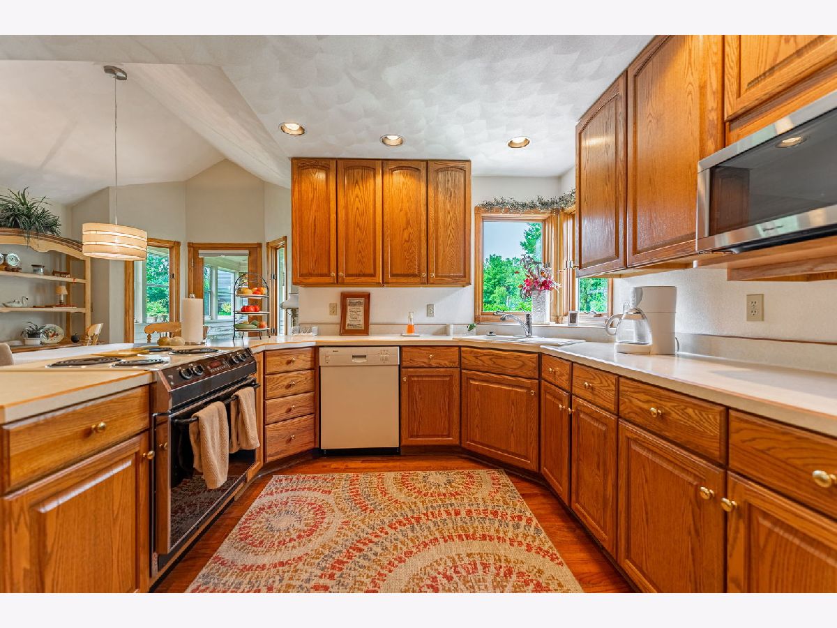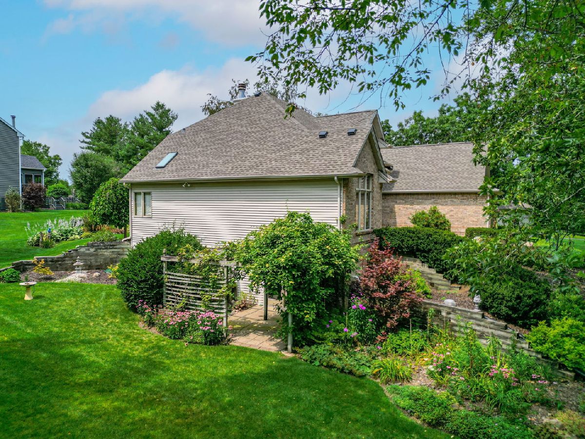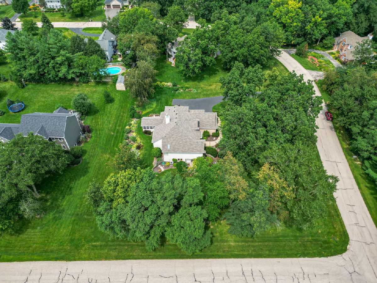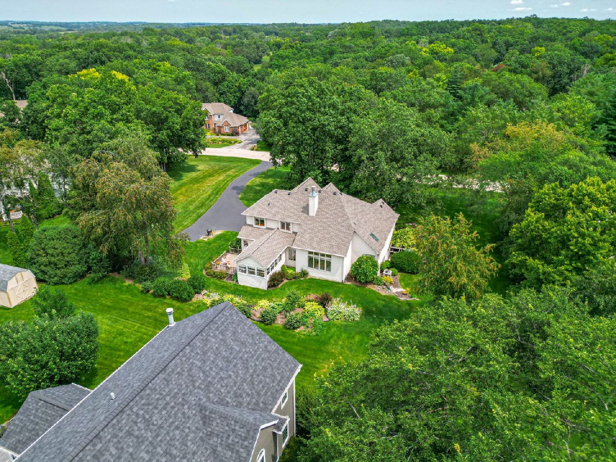 Hot property! Custom built one owner home with great floor plan. Main floor master bedroom suite with walk in closet, dual vanity with whirlpool, shower and skylight. Eat in kitchen with adjacent hearthroom and access to sun room. Dramatic 2 story entry open to dining room. Lots of beautiful windows and great views. Floor to ceiling fireplace. LL with family room, rec room with bar area and tons of storage. Walk out to LL patio with Pergola. Great 3/4 acre wooded lot. Prairie Hill Schools and easy access to I-90.